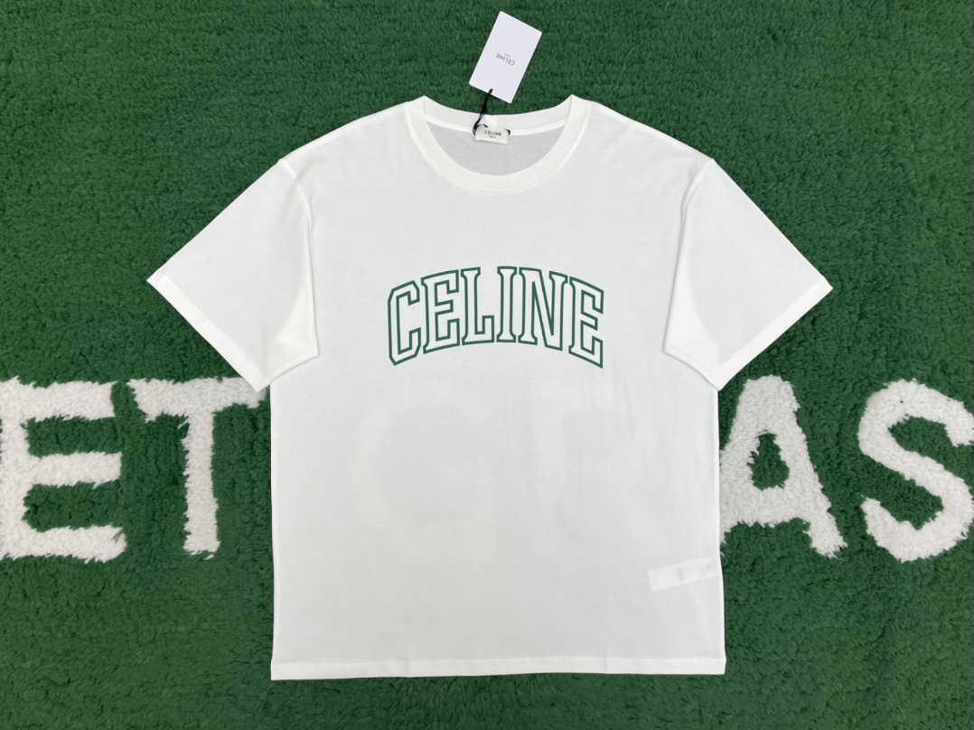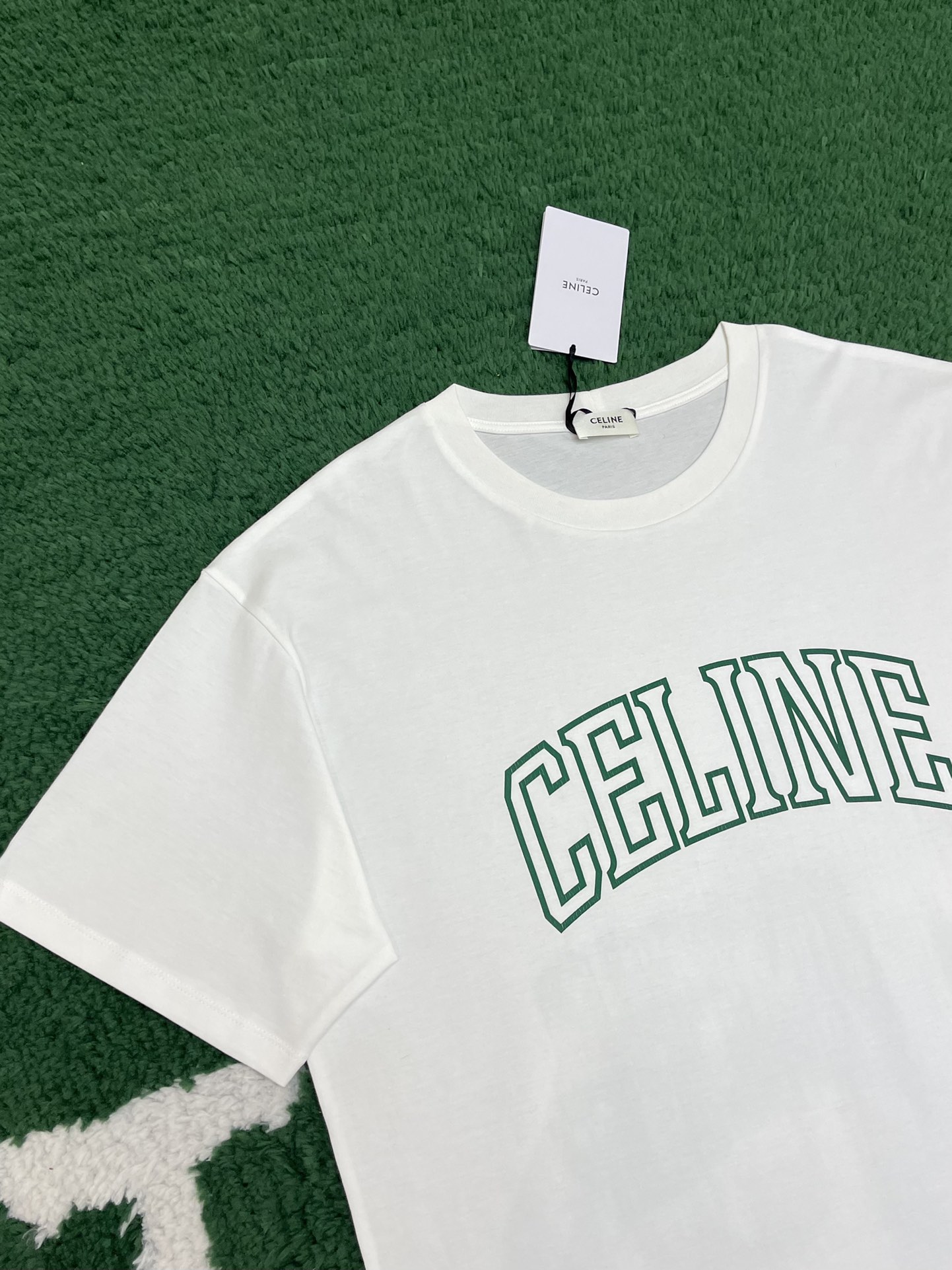 셀린느 루즈 코튼 저지 티셔츠 화이트 그린