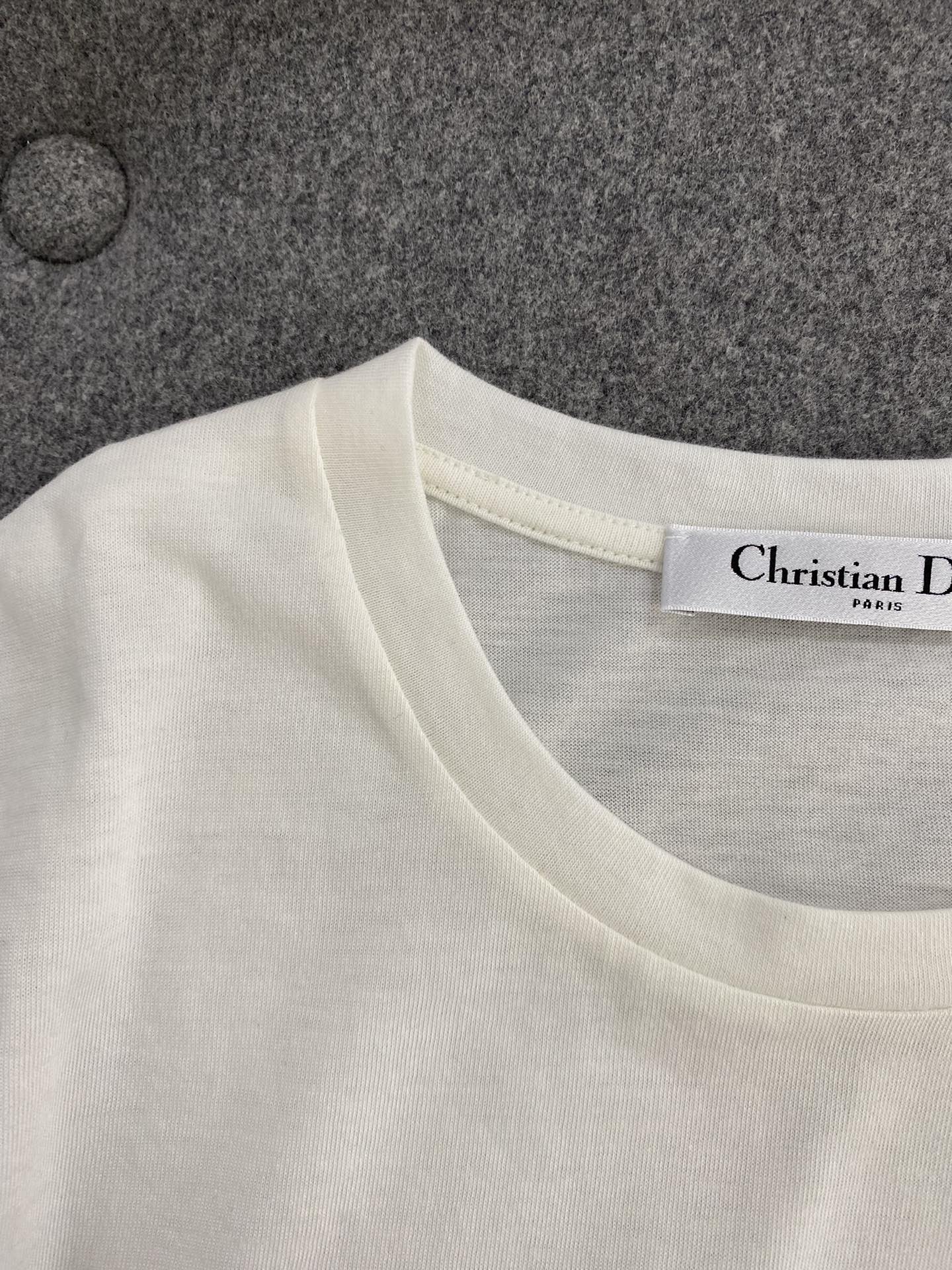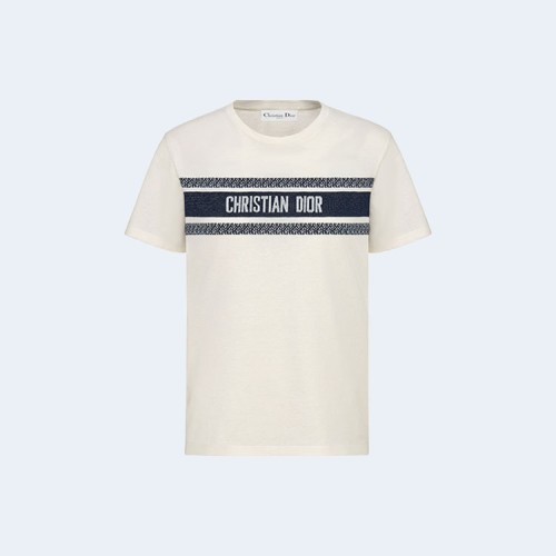 디올 화이트 코튼 저지 엠브로이더드 티셔츠