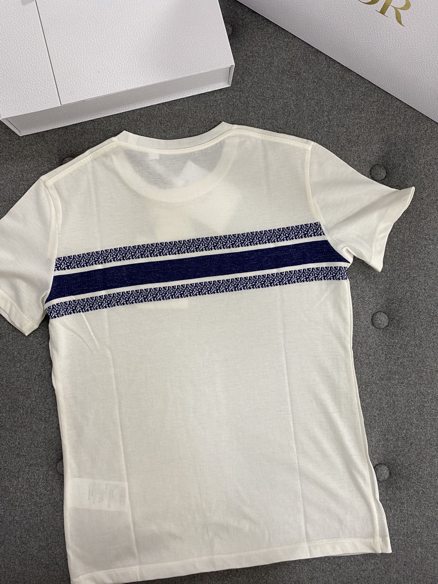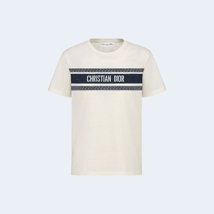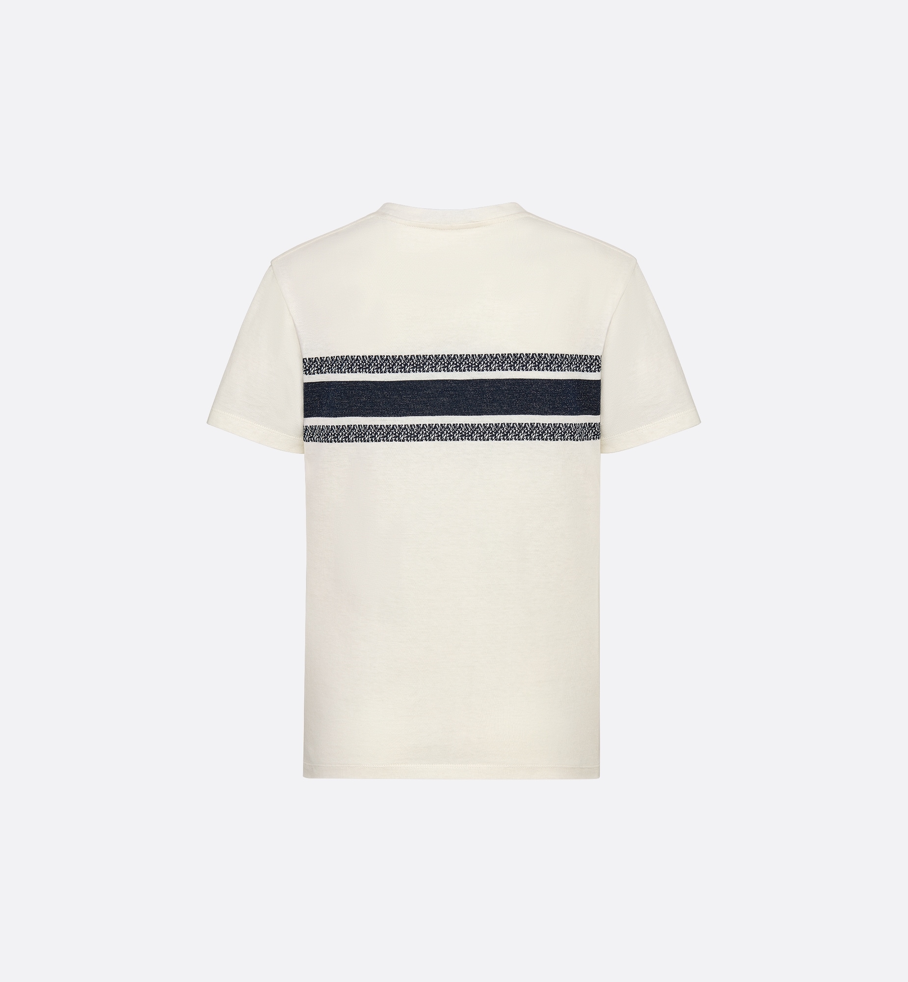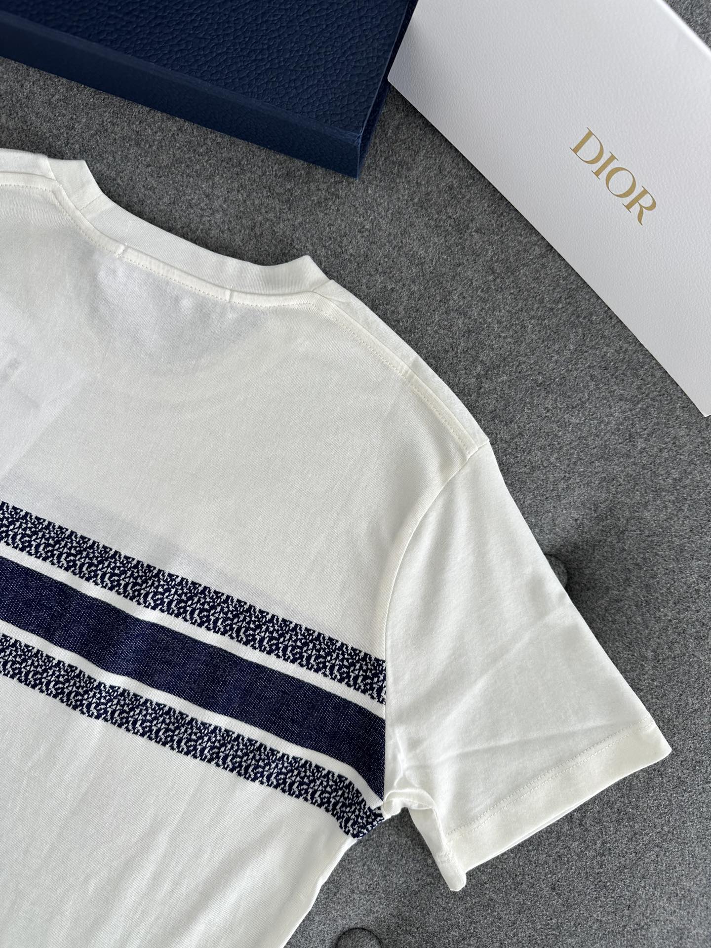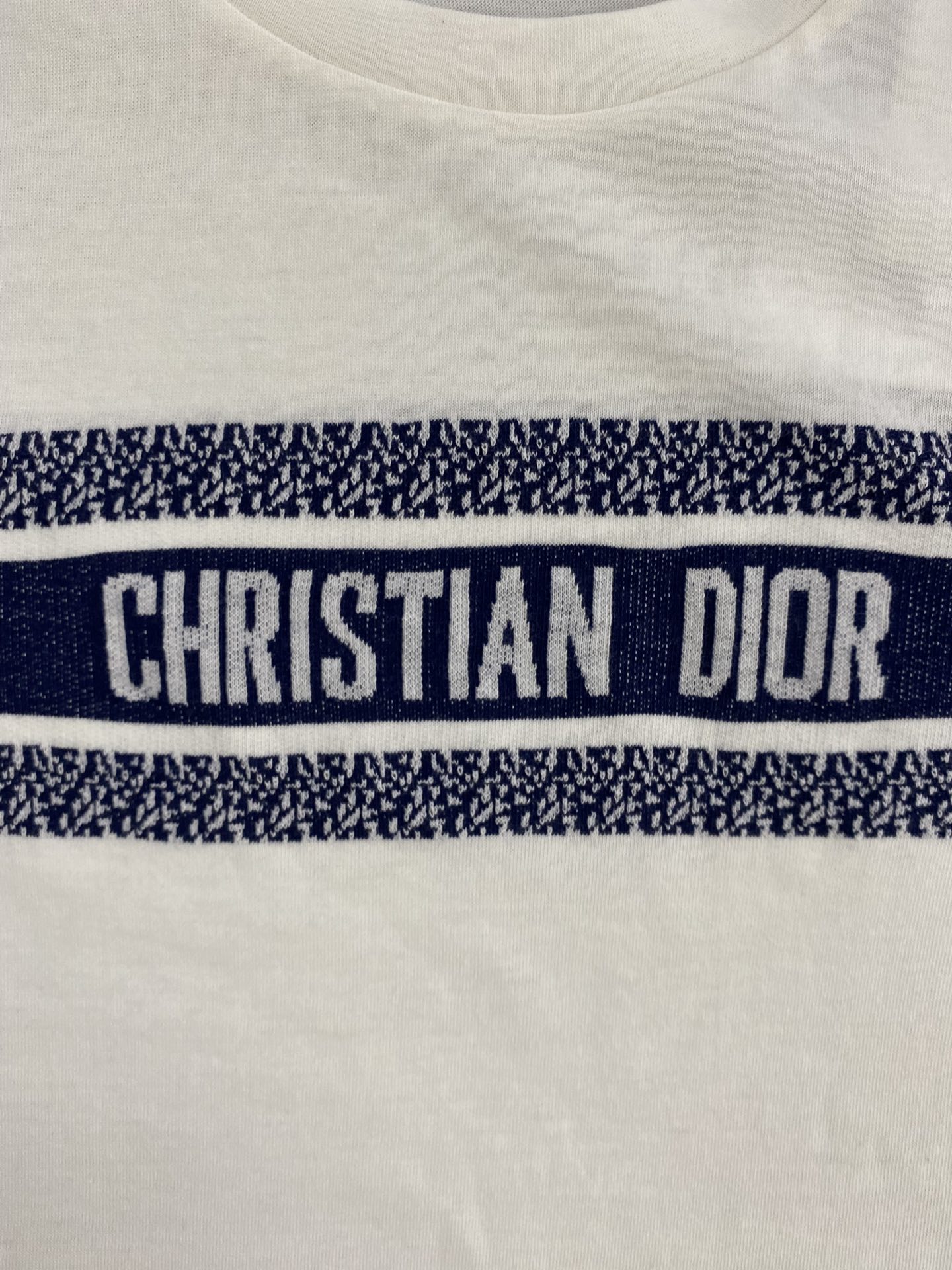 디올 화이트 앤 네이비 블루 코튼 저지 티셔츠