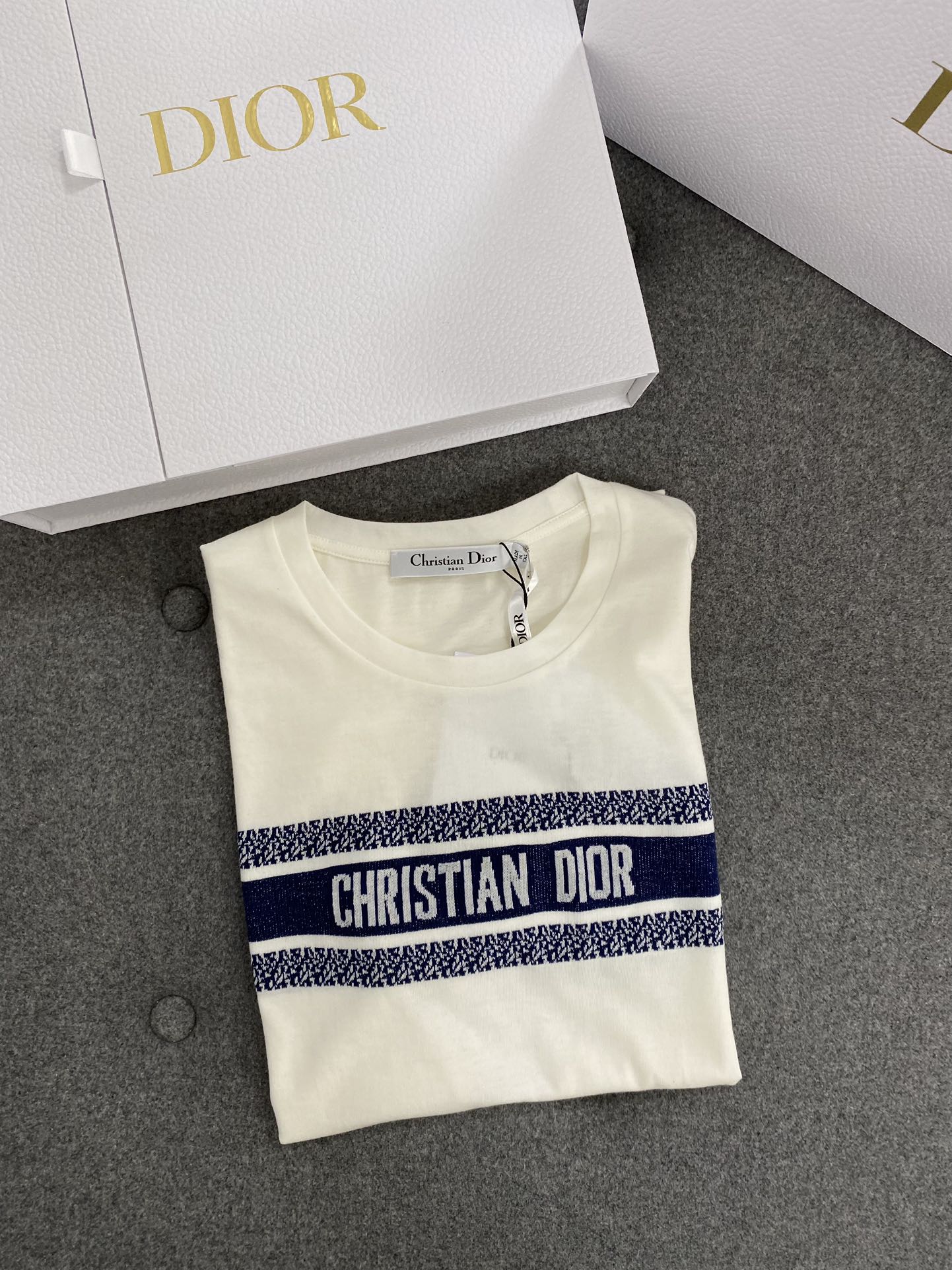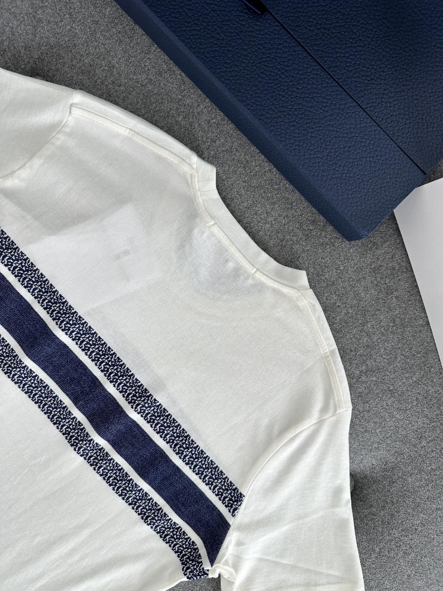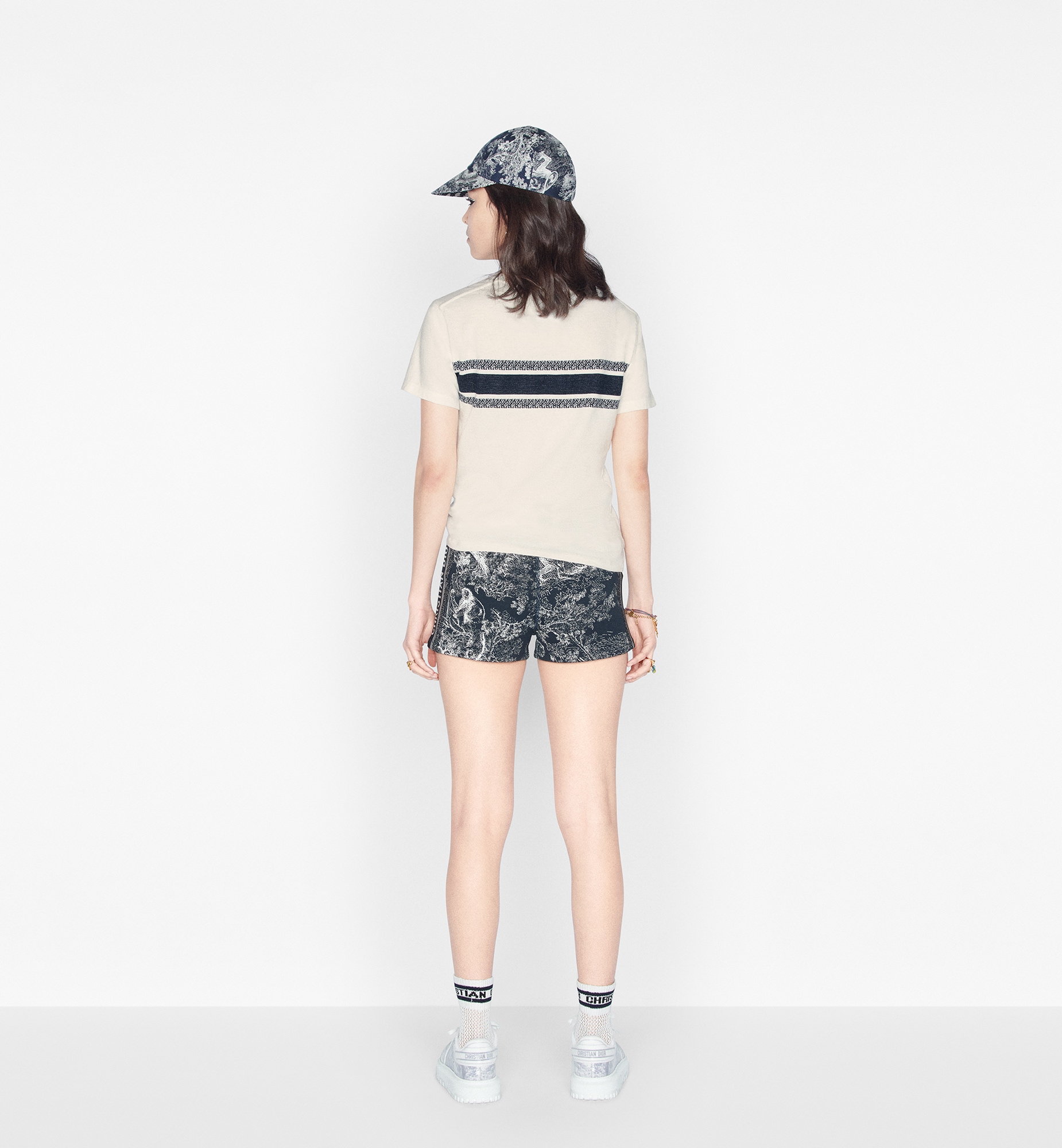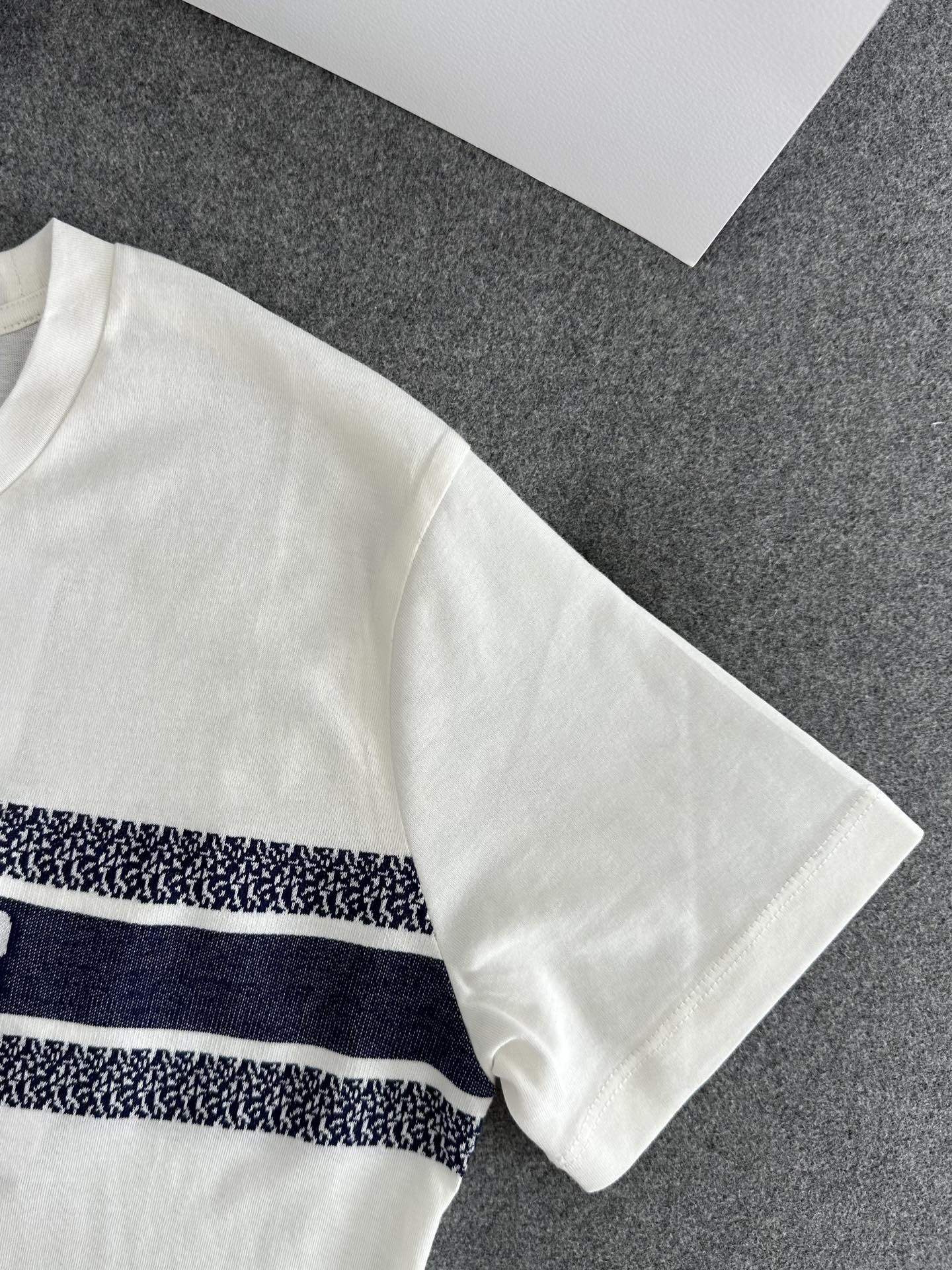 디올 화이트 앤 네이비 블루 코튼 저지 티셔츠