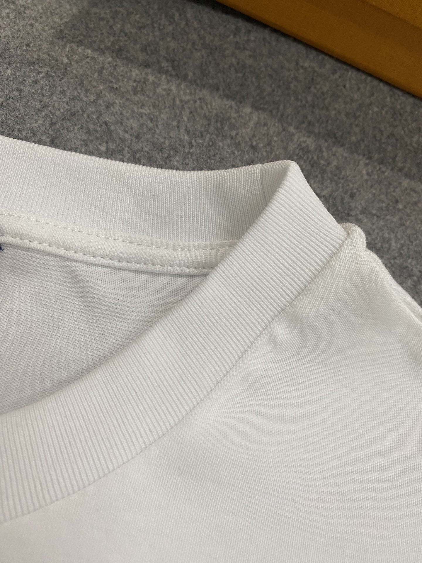 디올 화이트 코튼 저지 엠브로이더드 티셔츠
