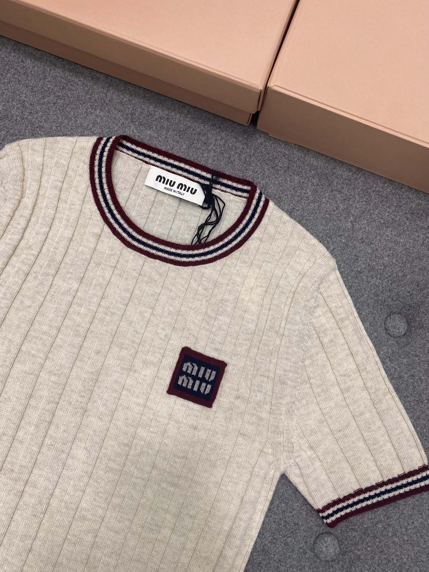 미우미우 코튼 저지 그레이 티셔츠