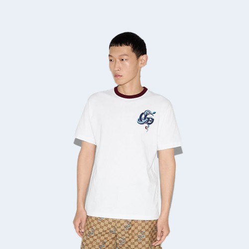구찌 프린트 미디엄 코튼 저지 티셔츠