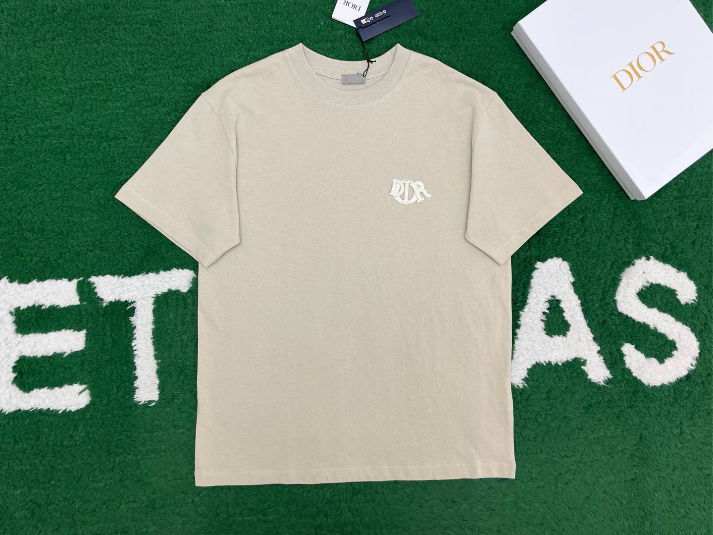 디올 Charm 릴렉스드 핏 코튼 저지 티셔츠 베이지