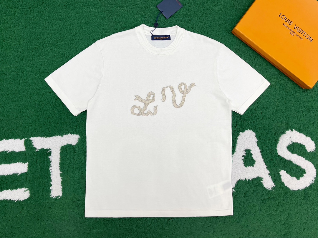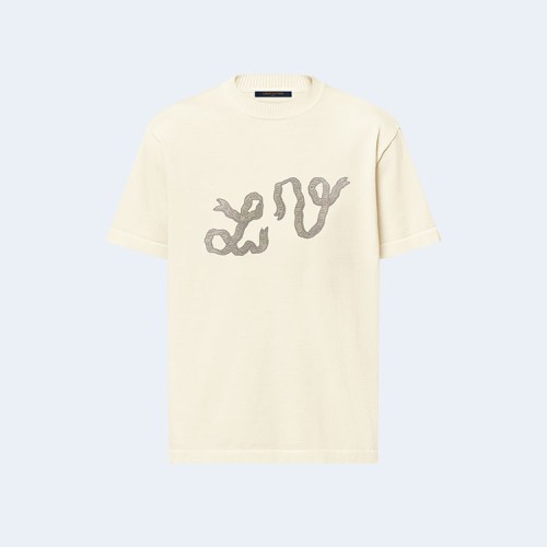 루이비통 엠벨리시드 쇼트 슬리브드 코튼 크루넥 티셔츠 1AGJTU
