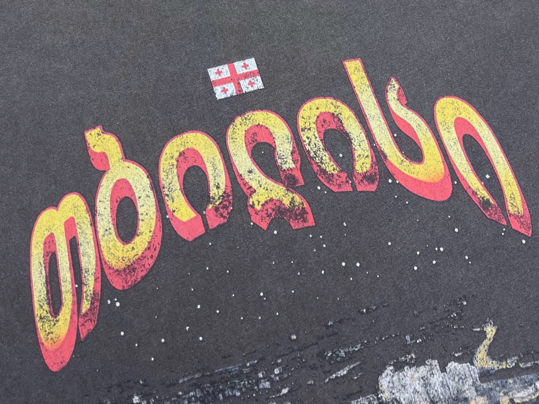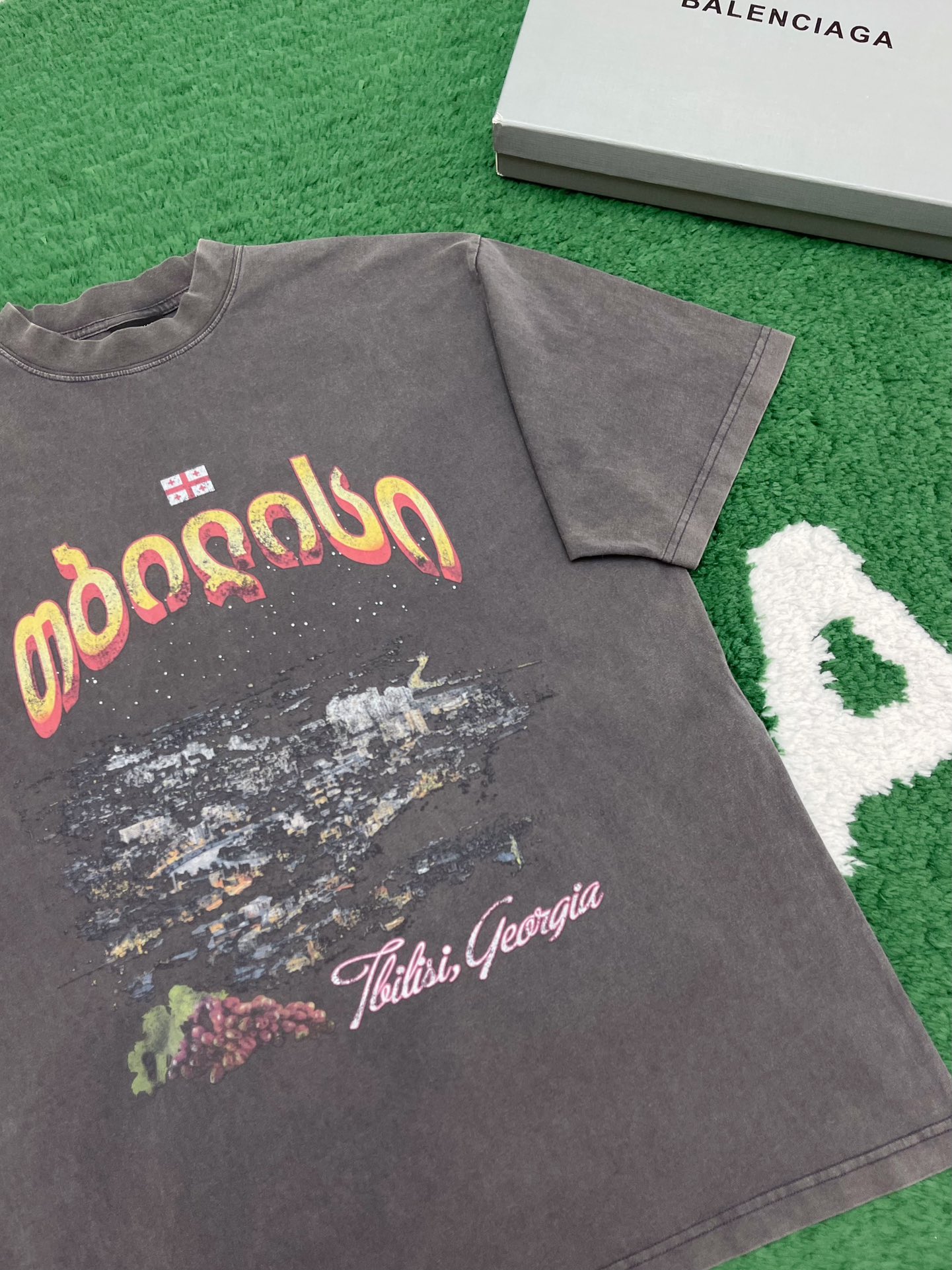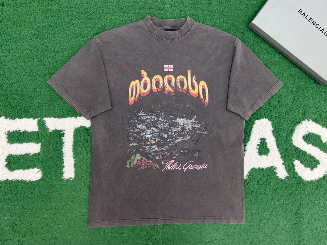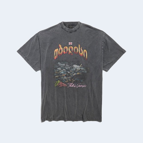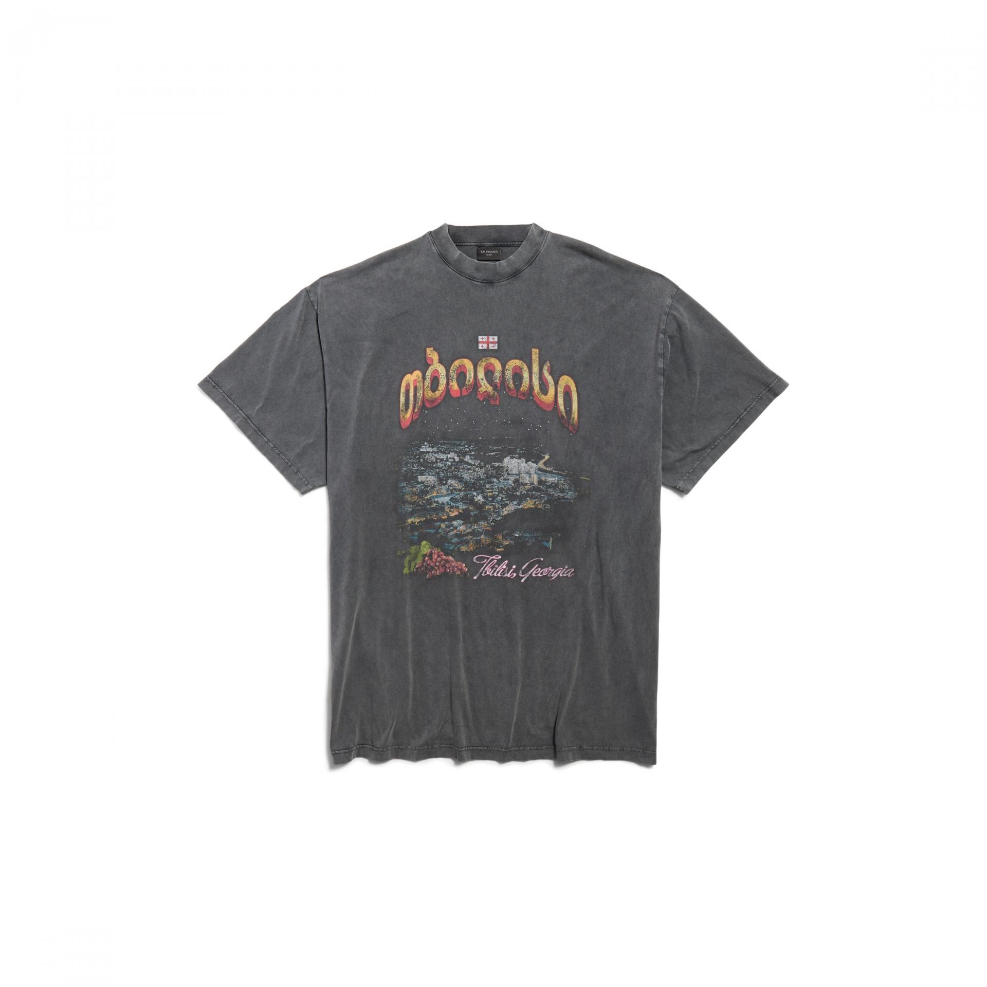 발렌시아가 남성 트빌리시 오버사이즈 티셔츠 페이드 블랙