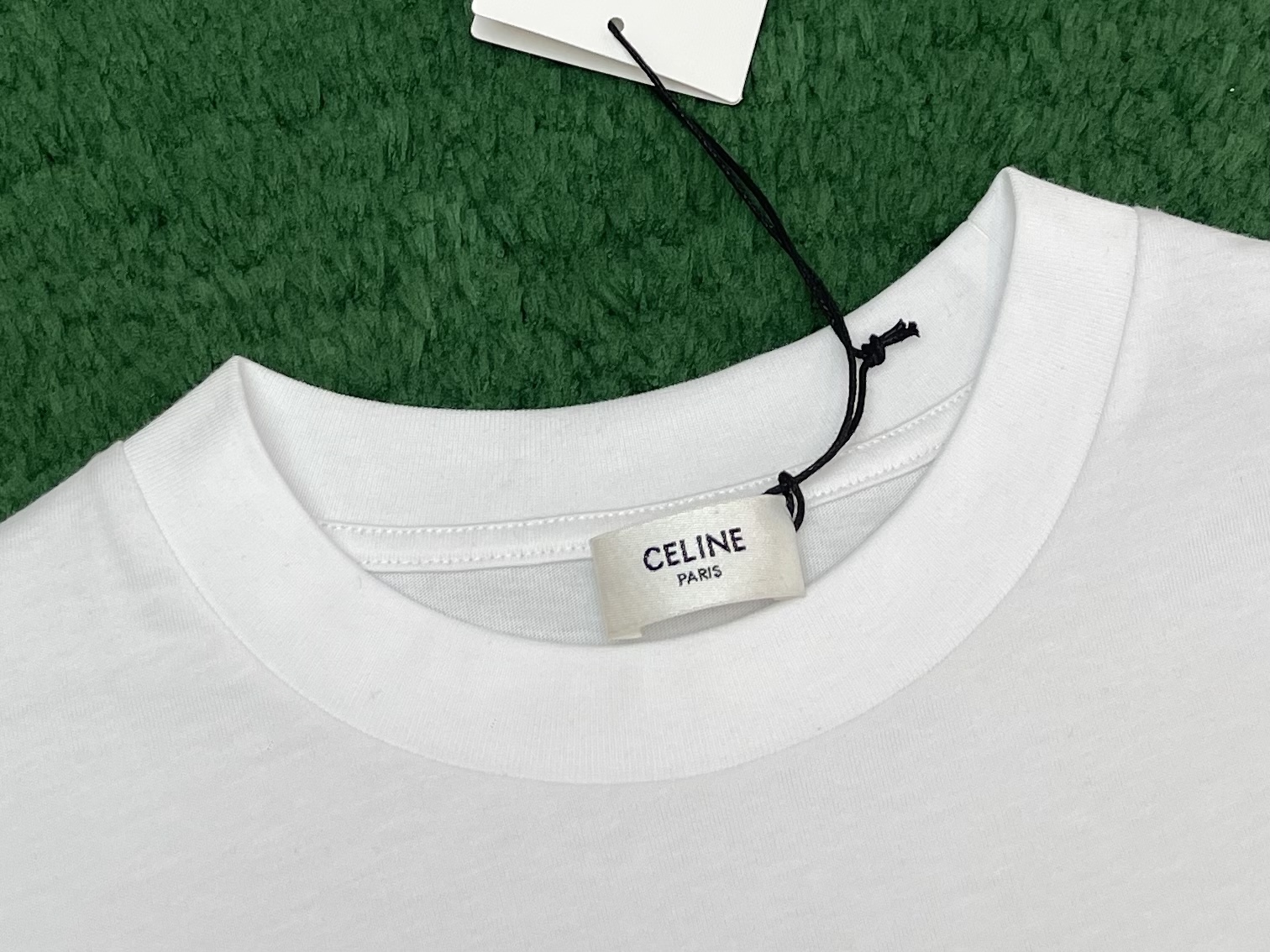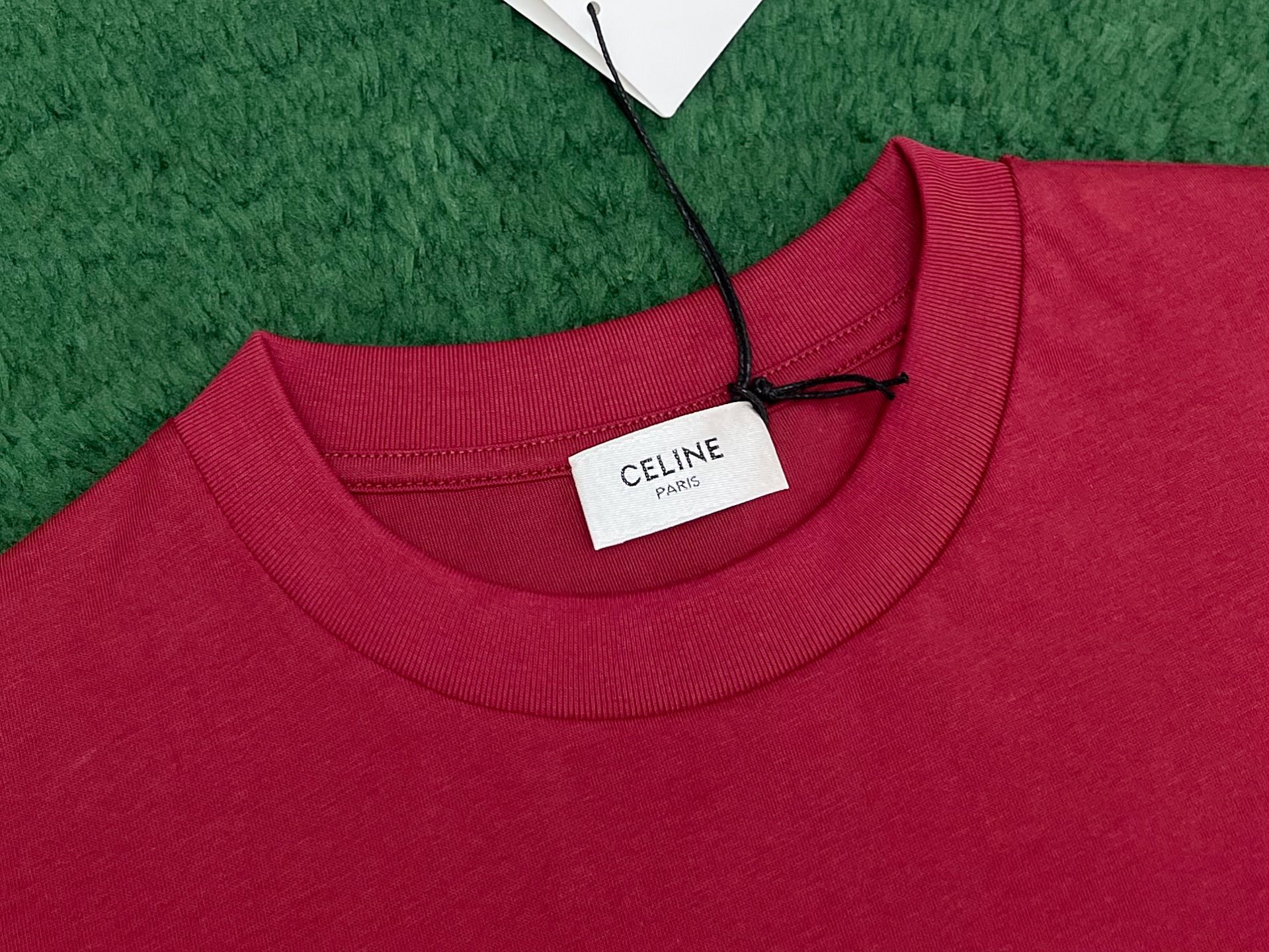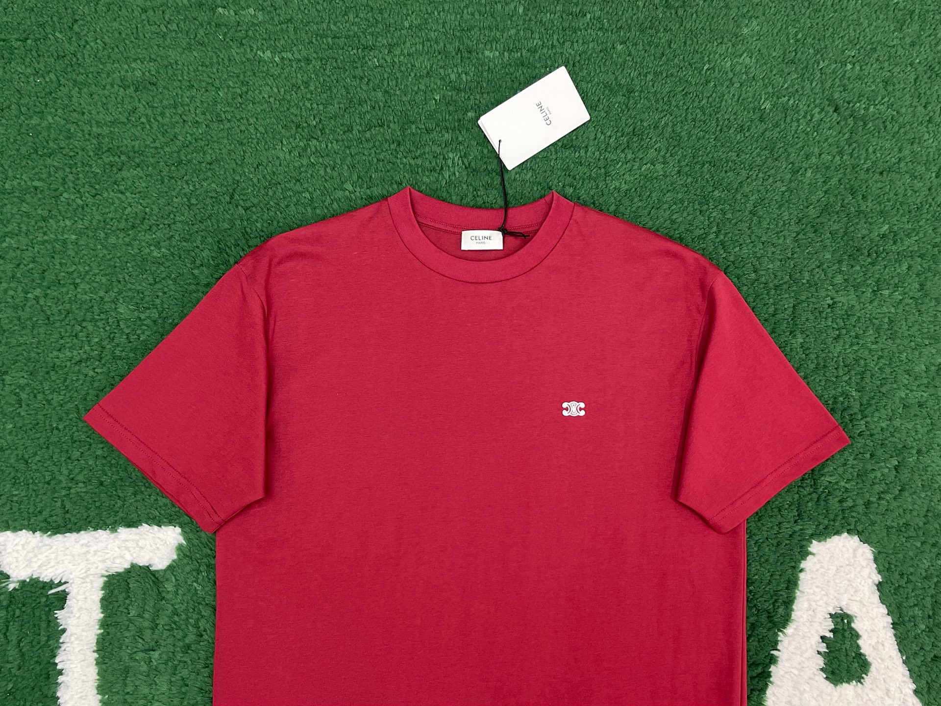 셀린느 루즈 트리오페 자수로고 코튼 티셔츠