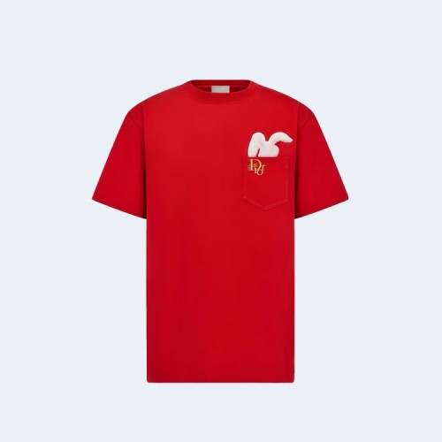디올 에센셜 코튼 저지 티셔츠 화이트 네이비 블루