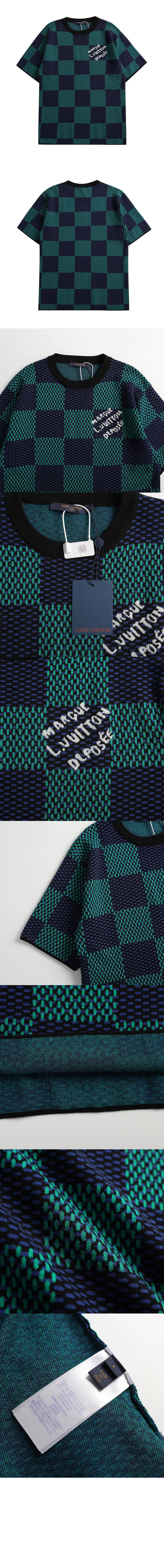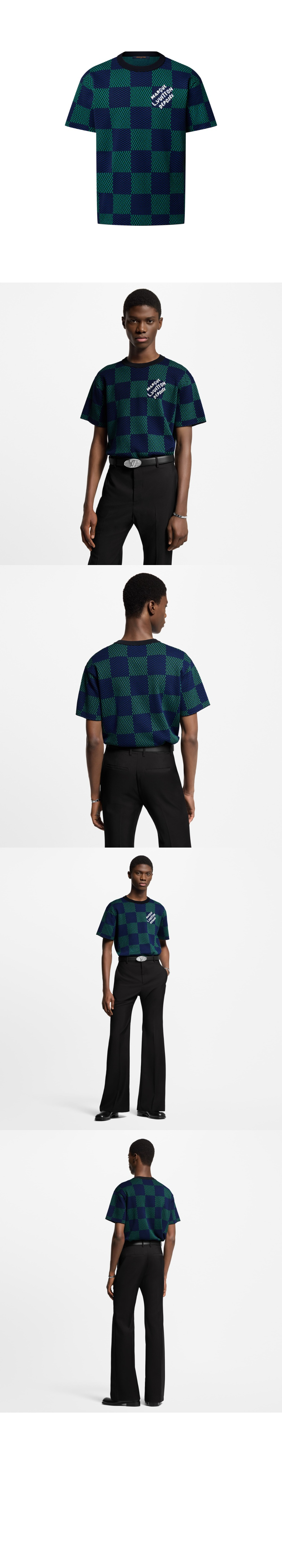 루이비통 자카드 다미에 쇼트 슬리브드 코튼 크루넥 1AHBCU