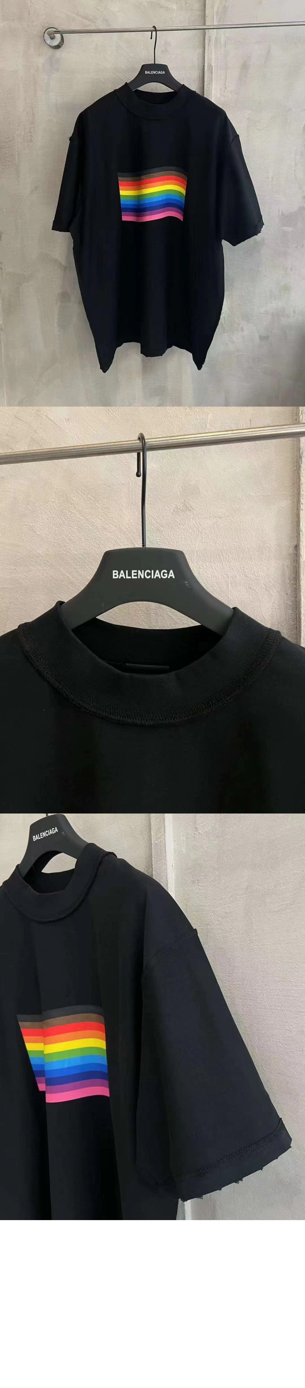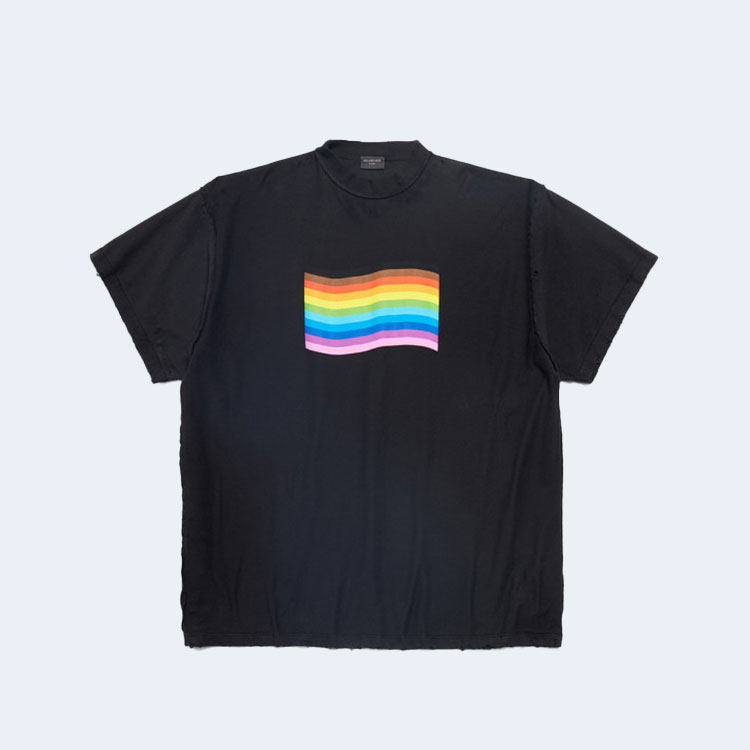 발렌시아가 레인보우 플래그 인사이드 아웃 오버사이즈 티셔츠