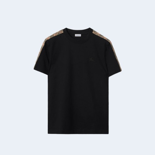 버버리 체크 트리밍 코튼 티셔츠 블랙