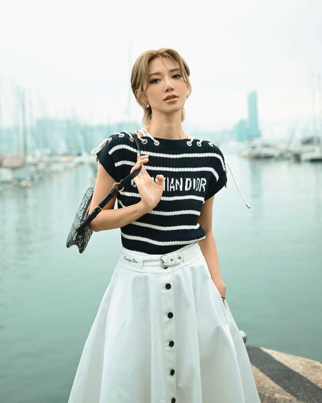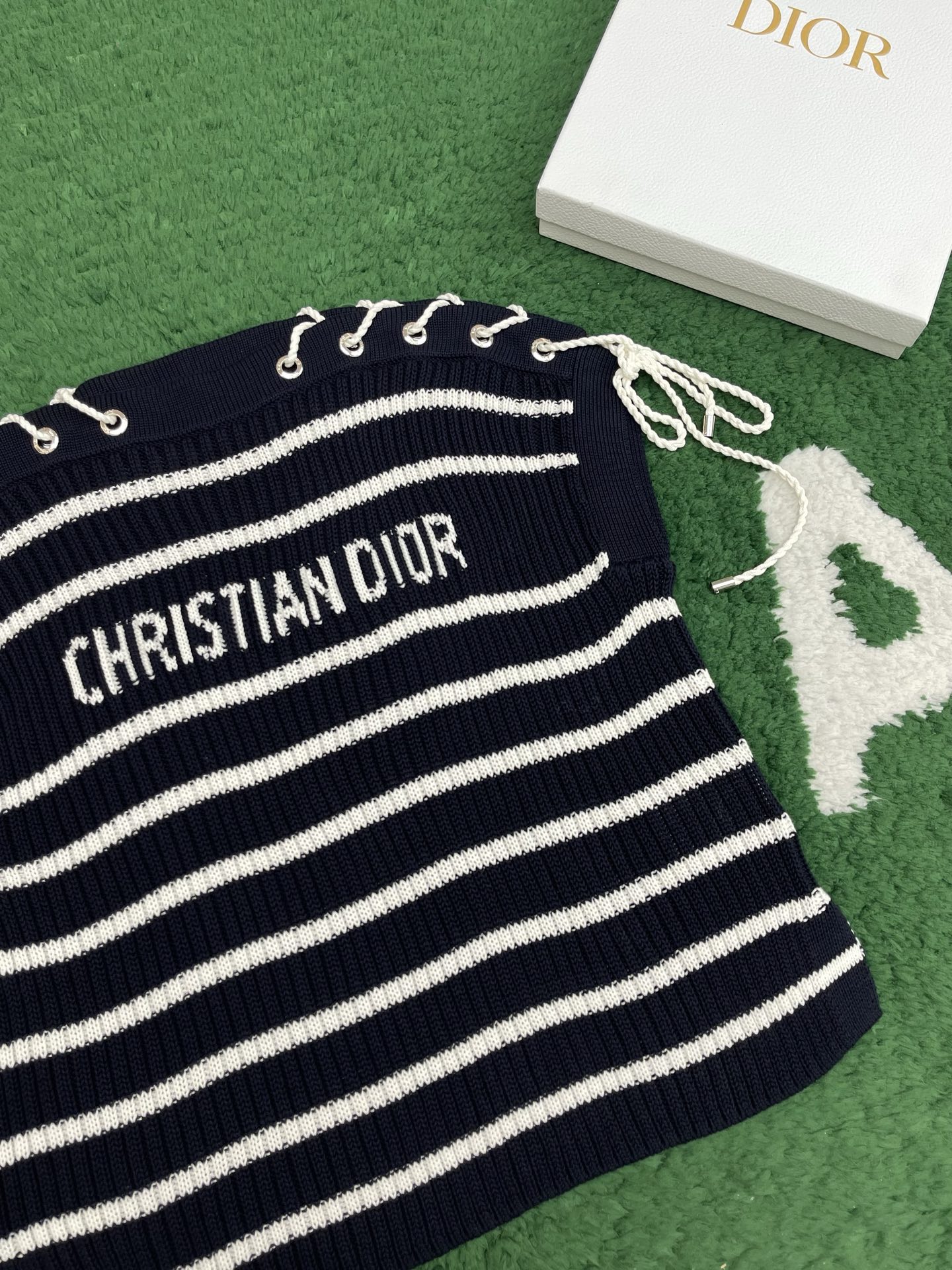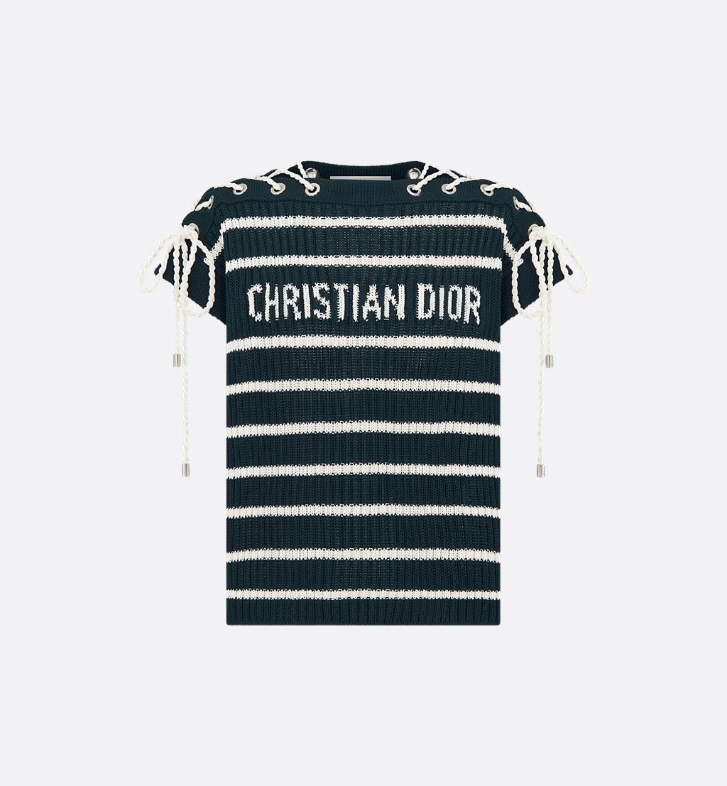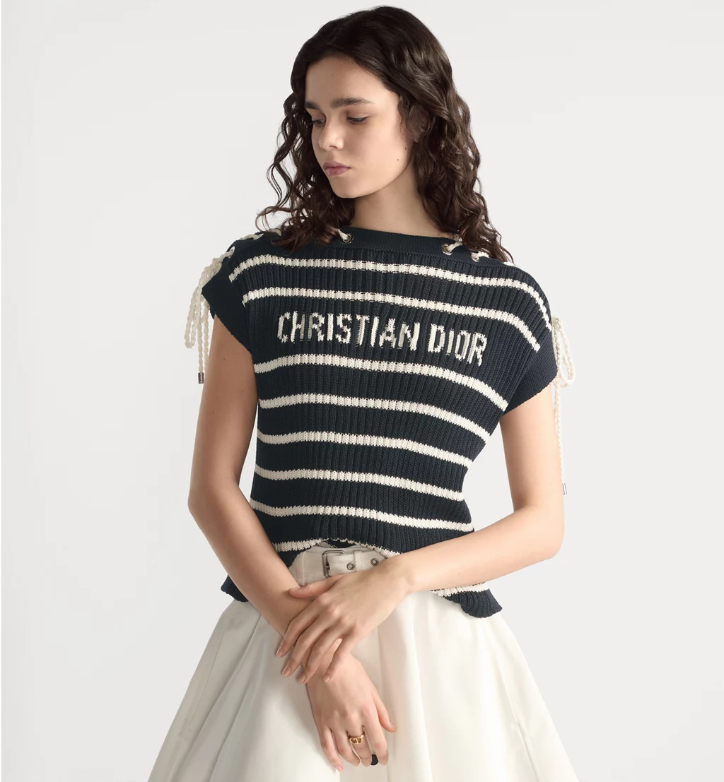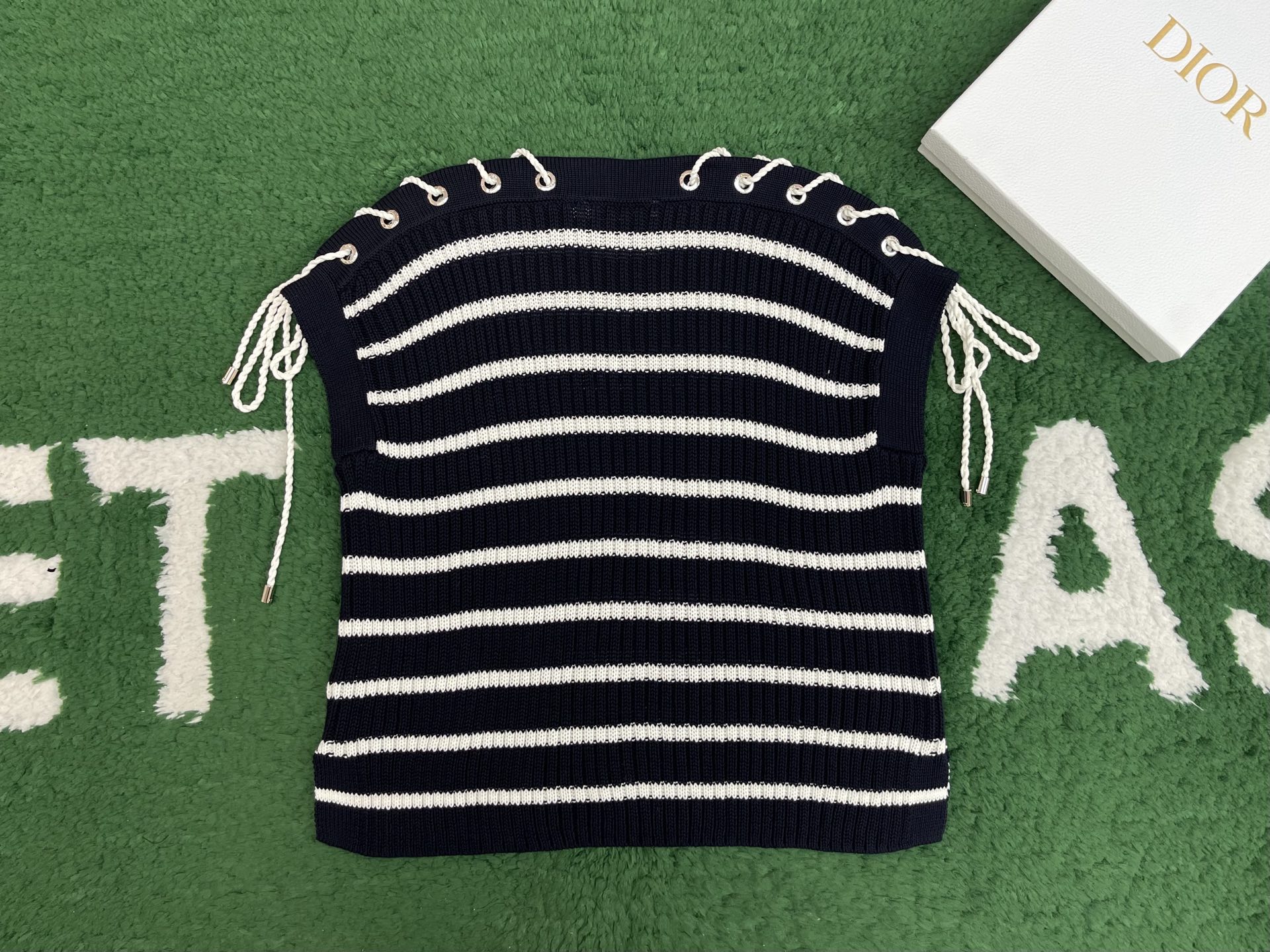 디올 디올리비에라 레이스업 캡 슬리브 스웨터
