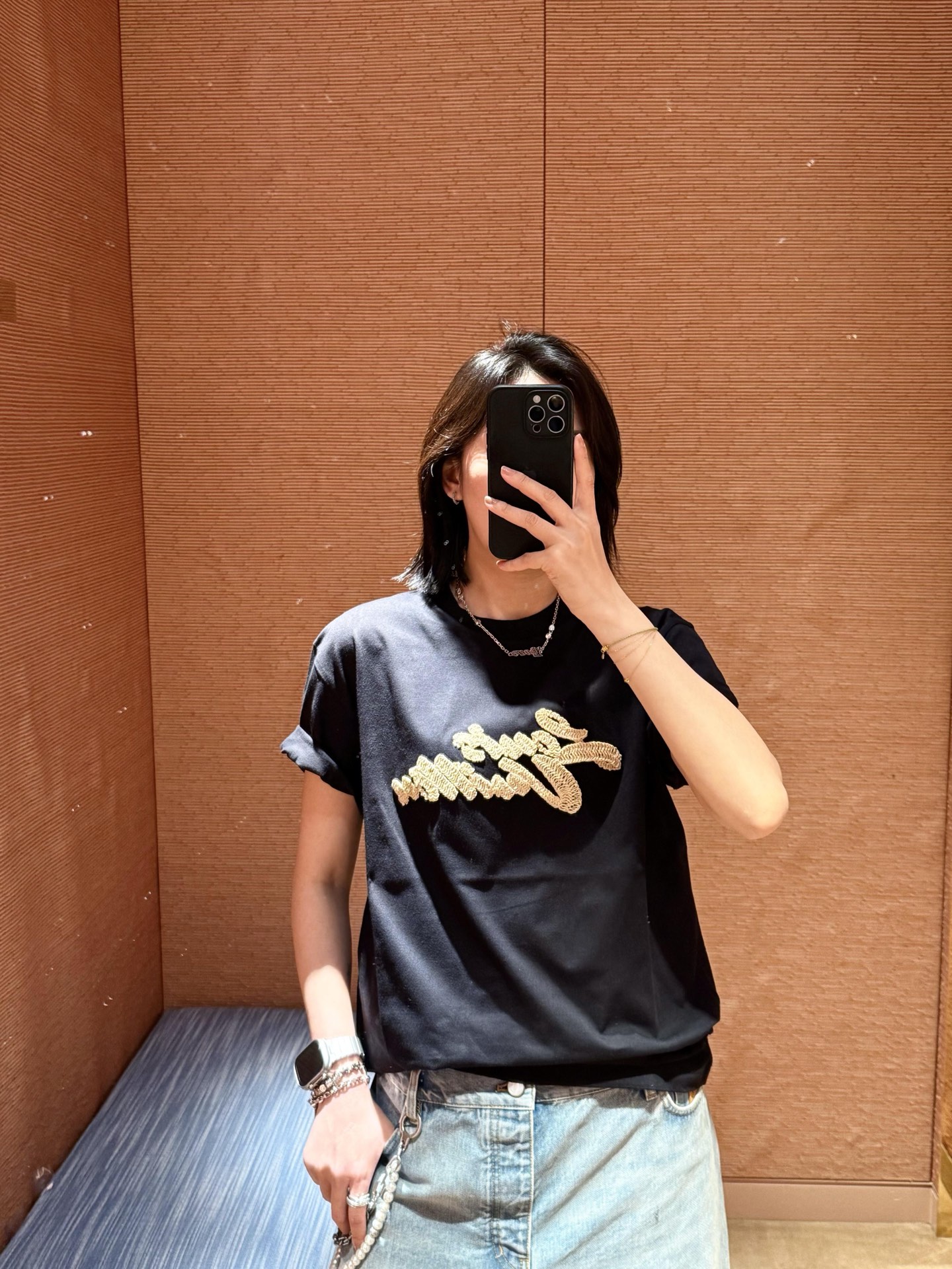 루이비통 엠브로이더드 시그니처 티셔츠 2COLOR (BLACK,WHITE)