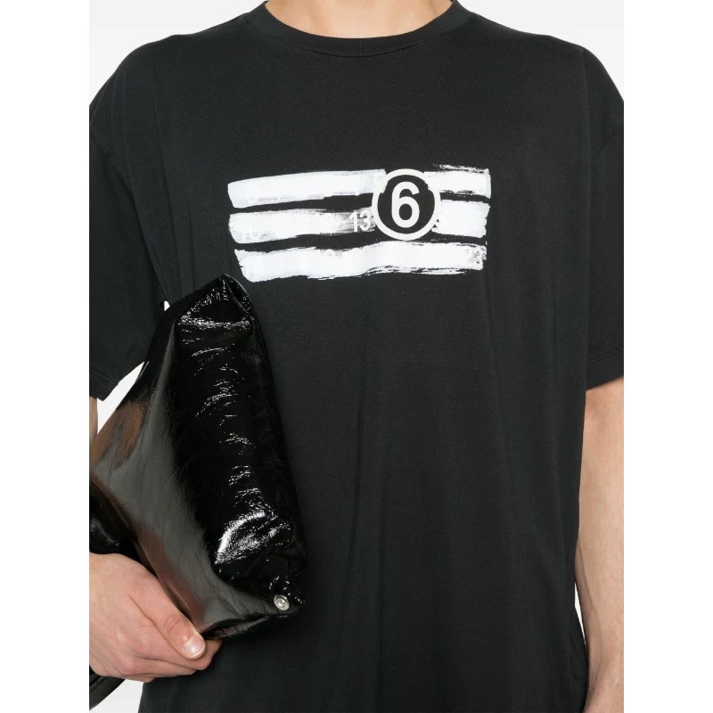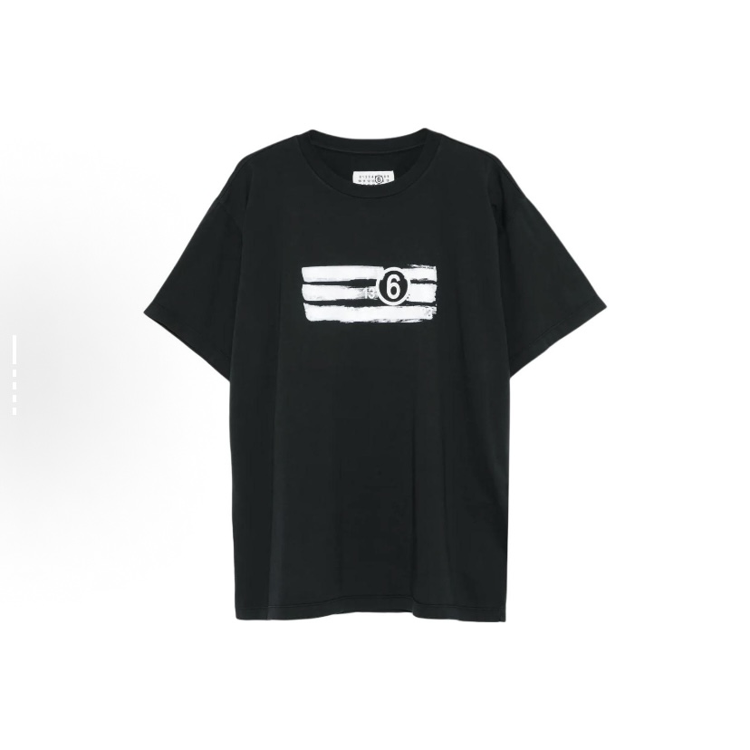 메종 마르지엘라 MM6 블랙 리볼브 프린팅 로고 티셔츠