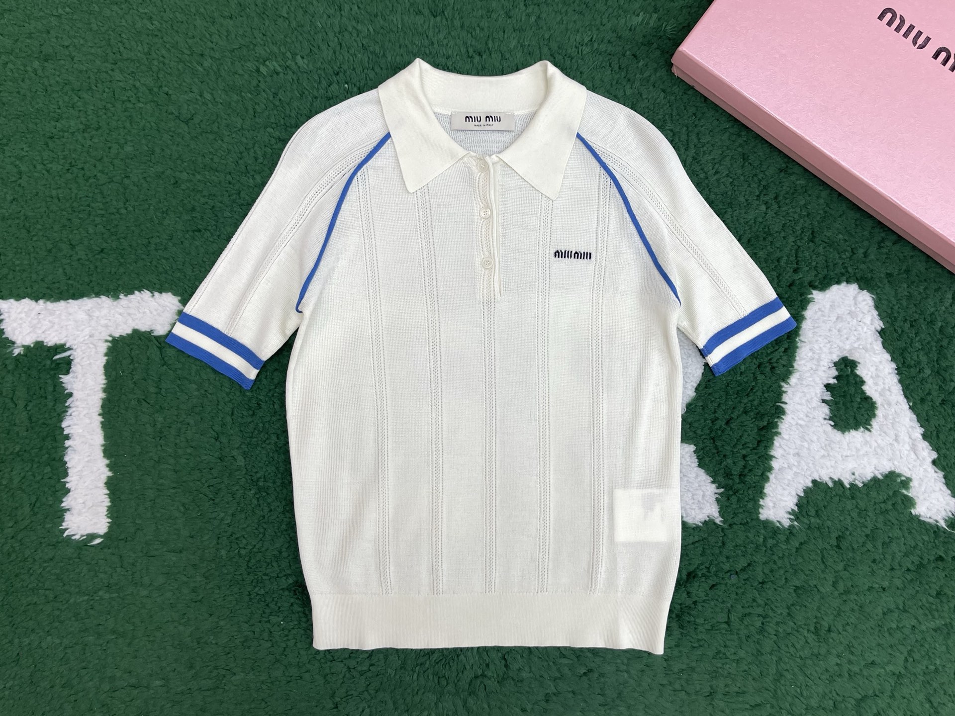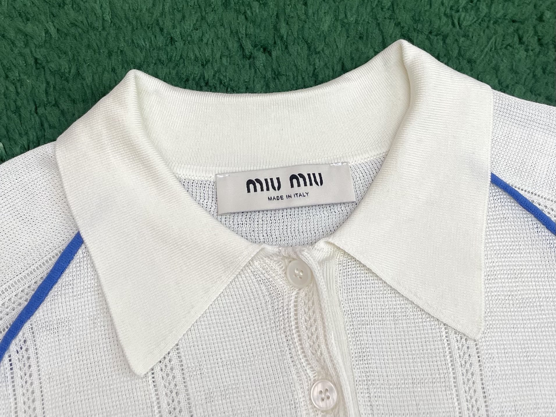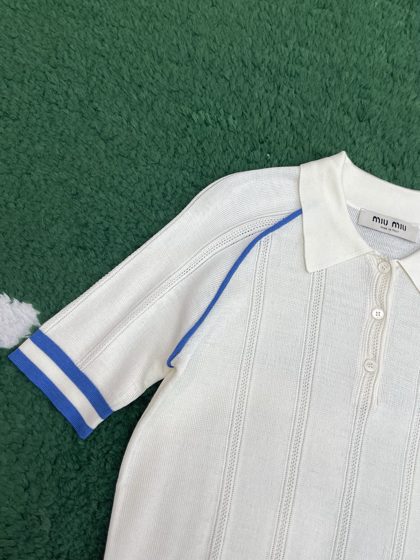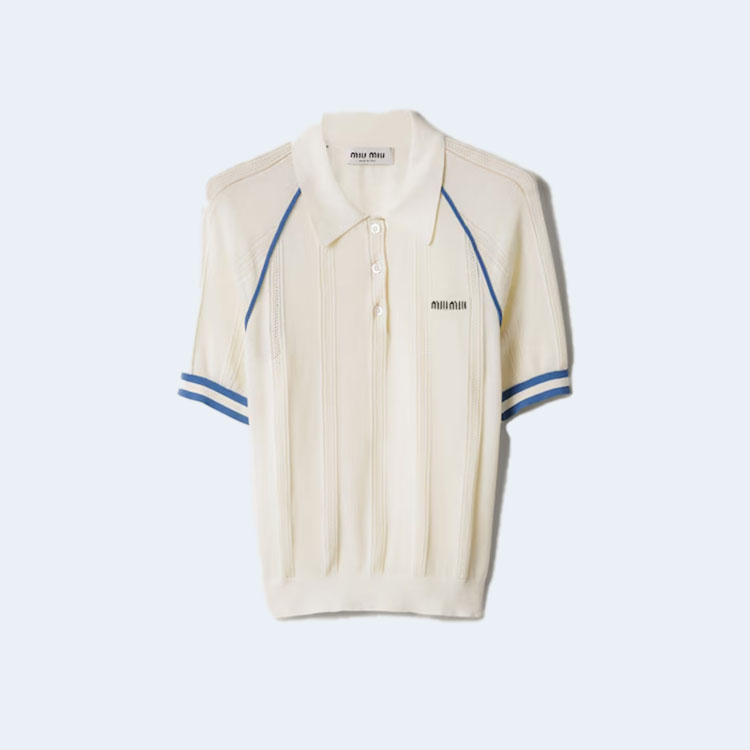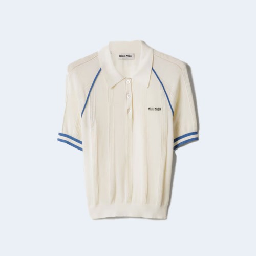 미우미우 코튼 니트 내추럴 브라이트 블루 폴로 셔츠