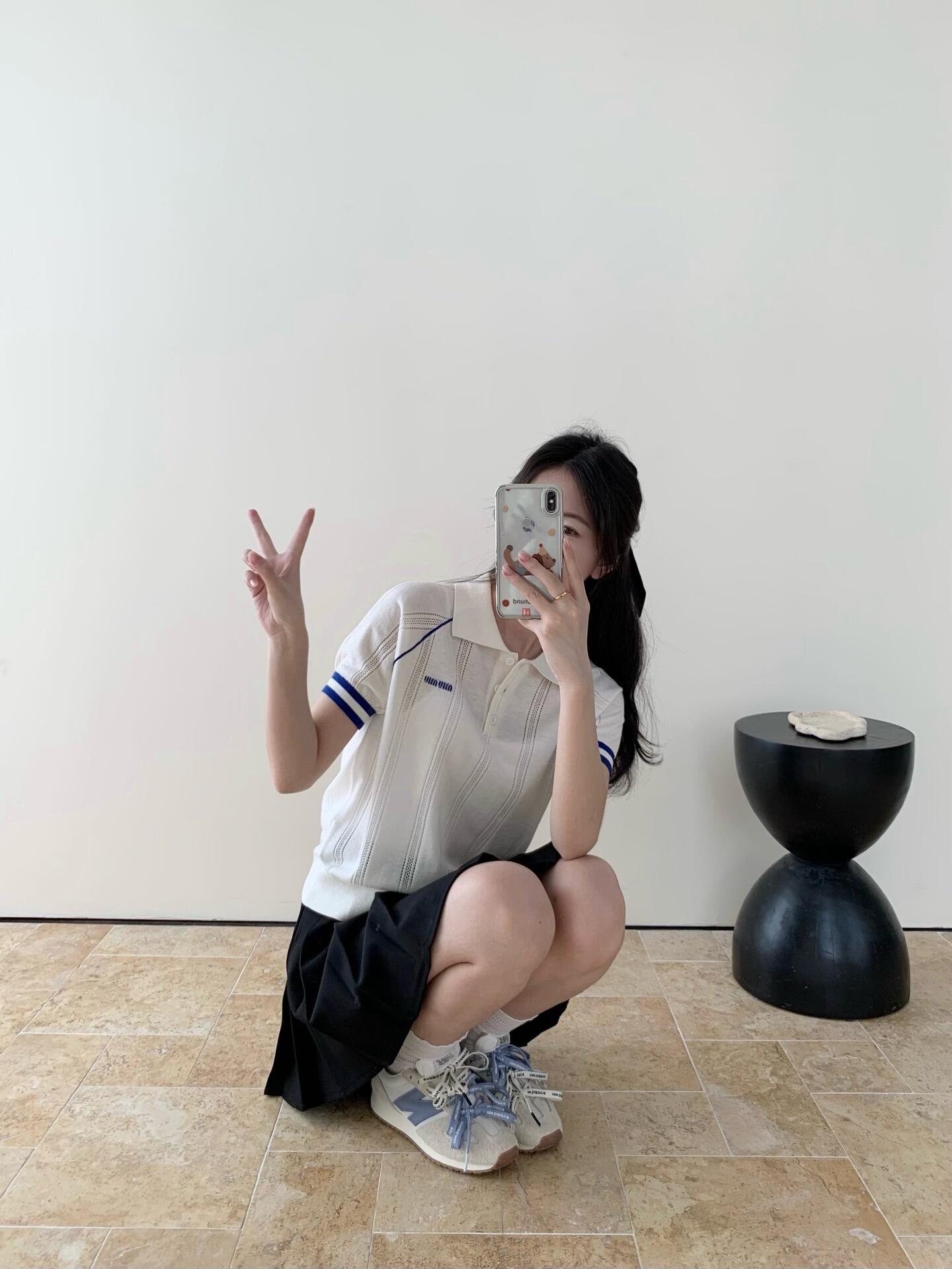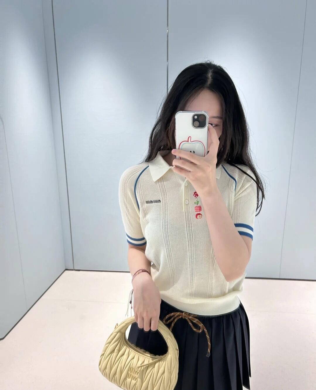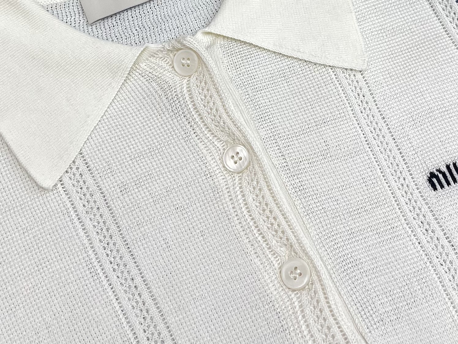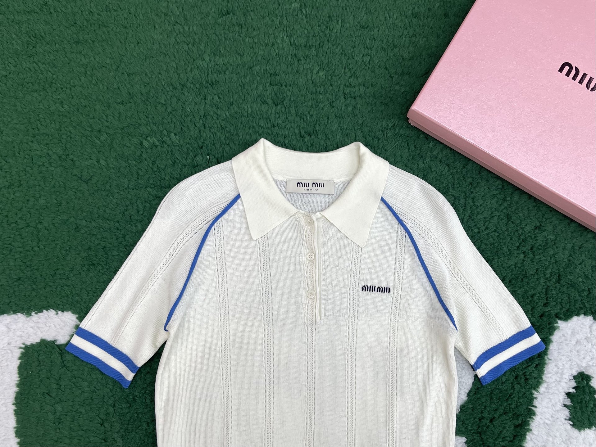 미우미우 코튼 니트 내추럴 브라이트 블루 폴로 셔츠