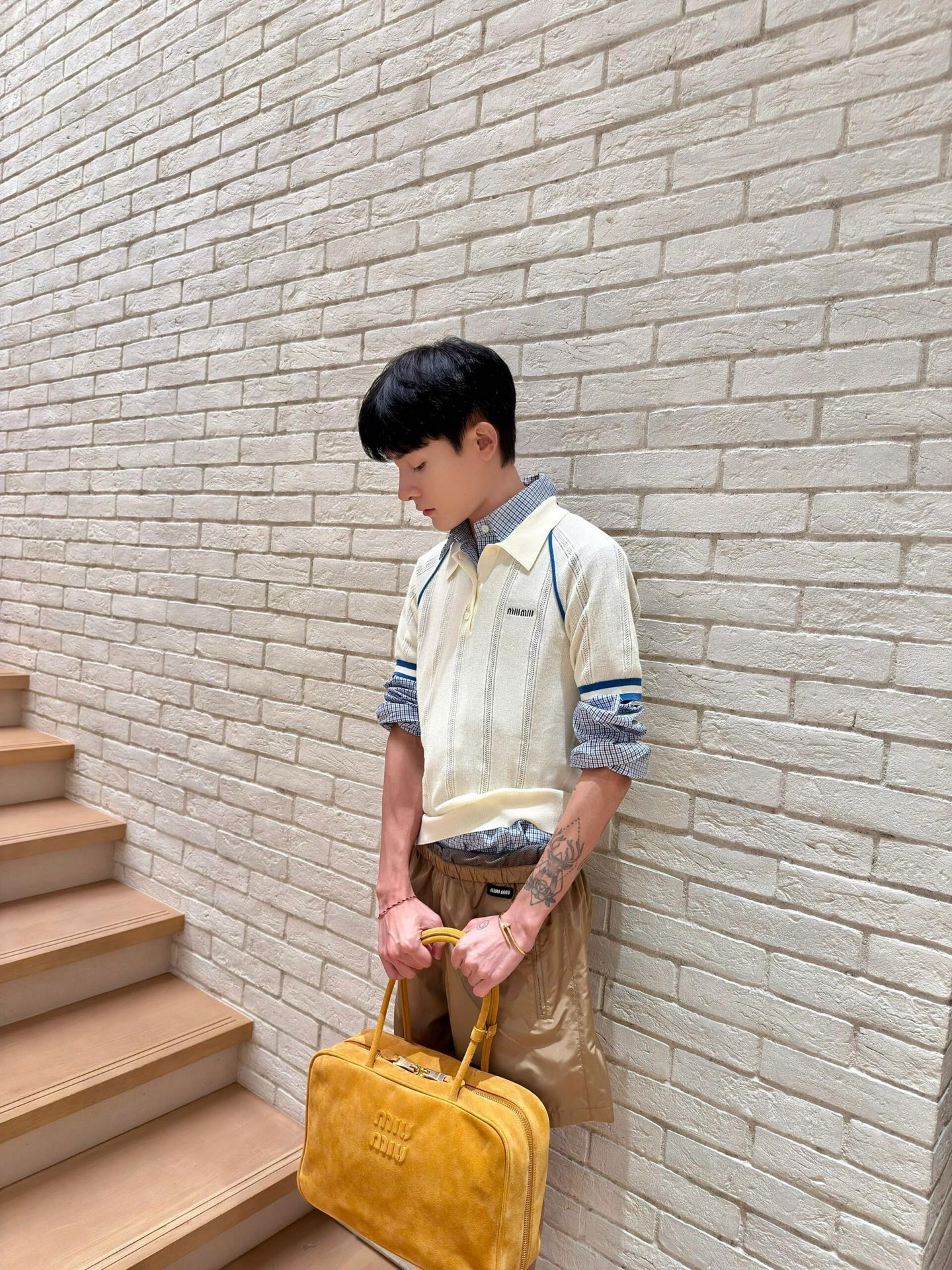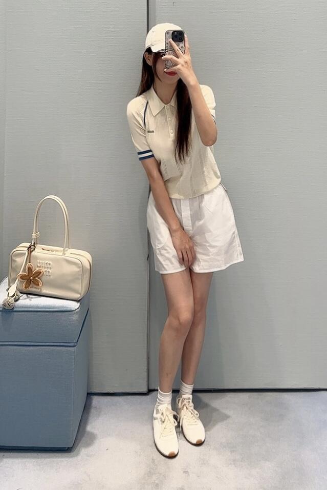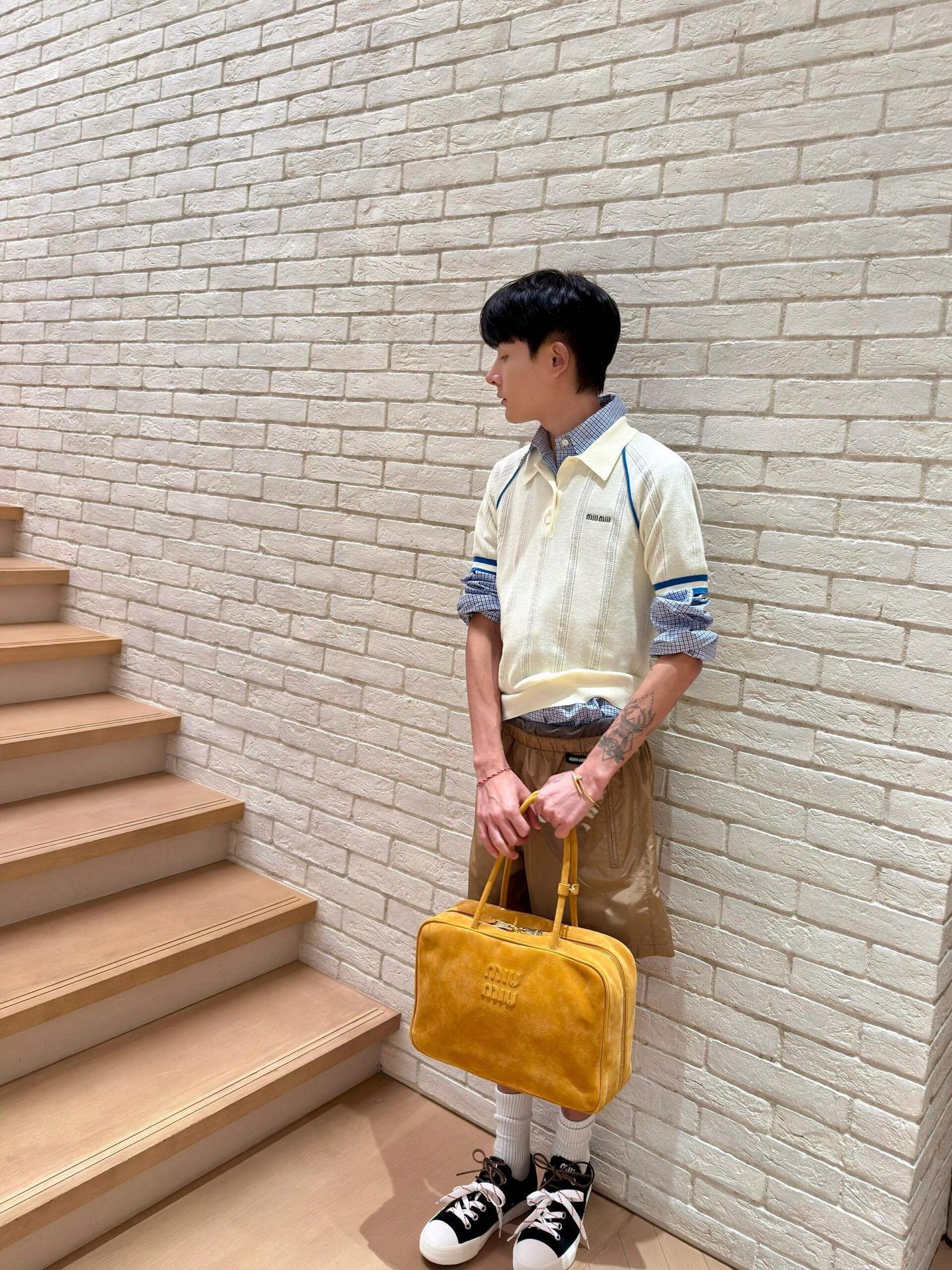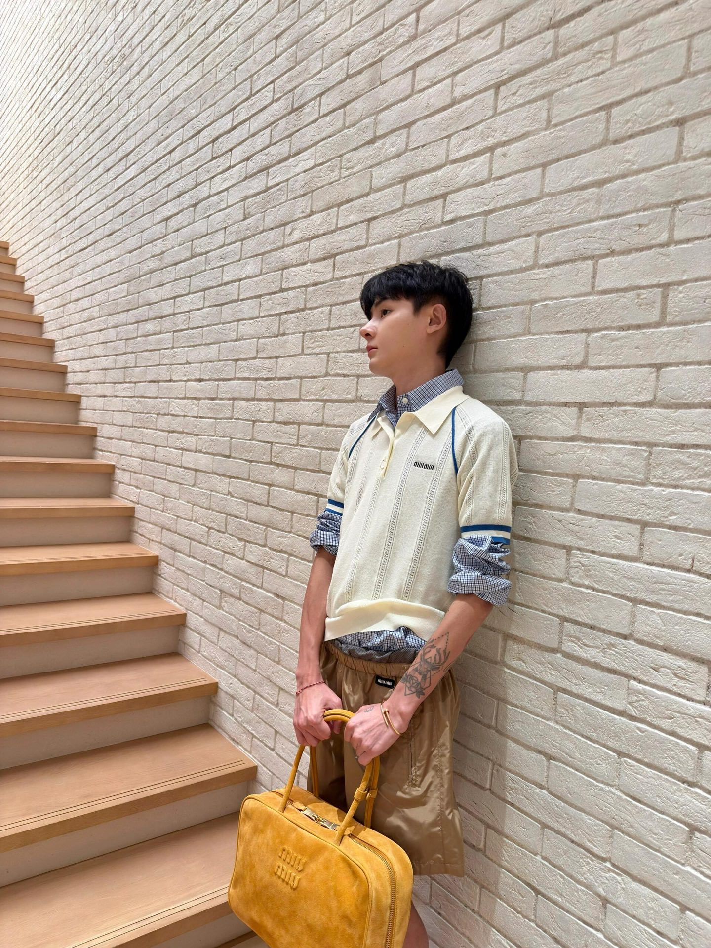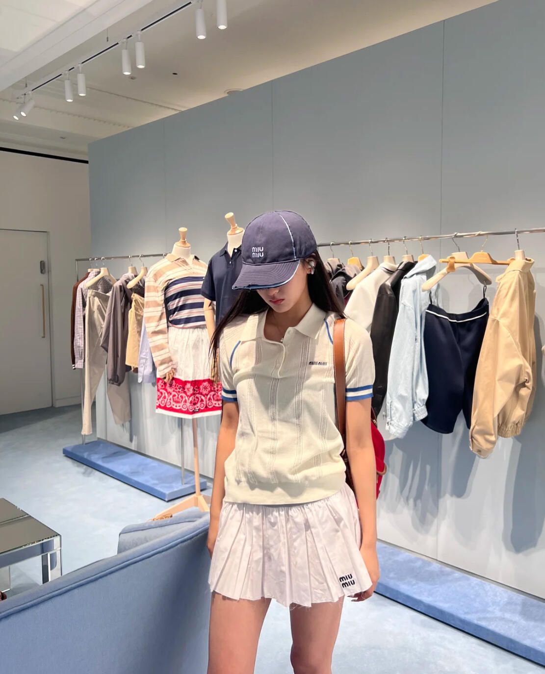미우미우 코튼 니트 내추럴 브라이트 블루 폴로 셔츠