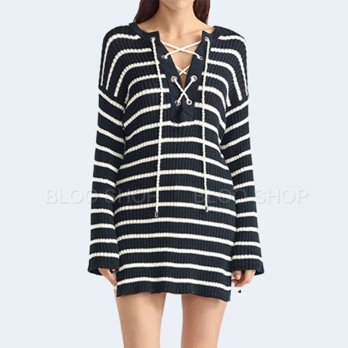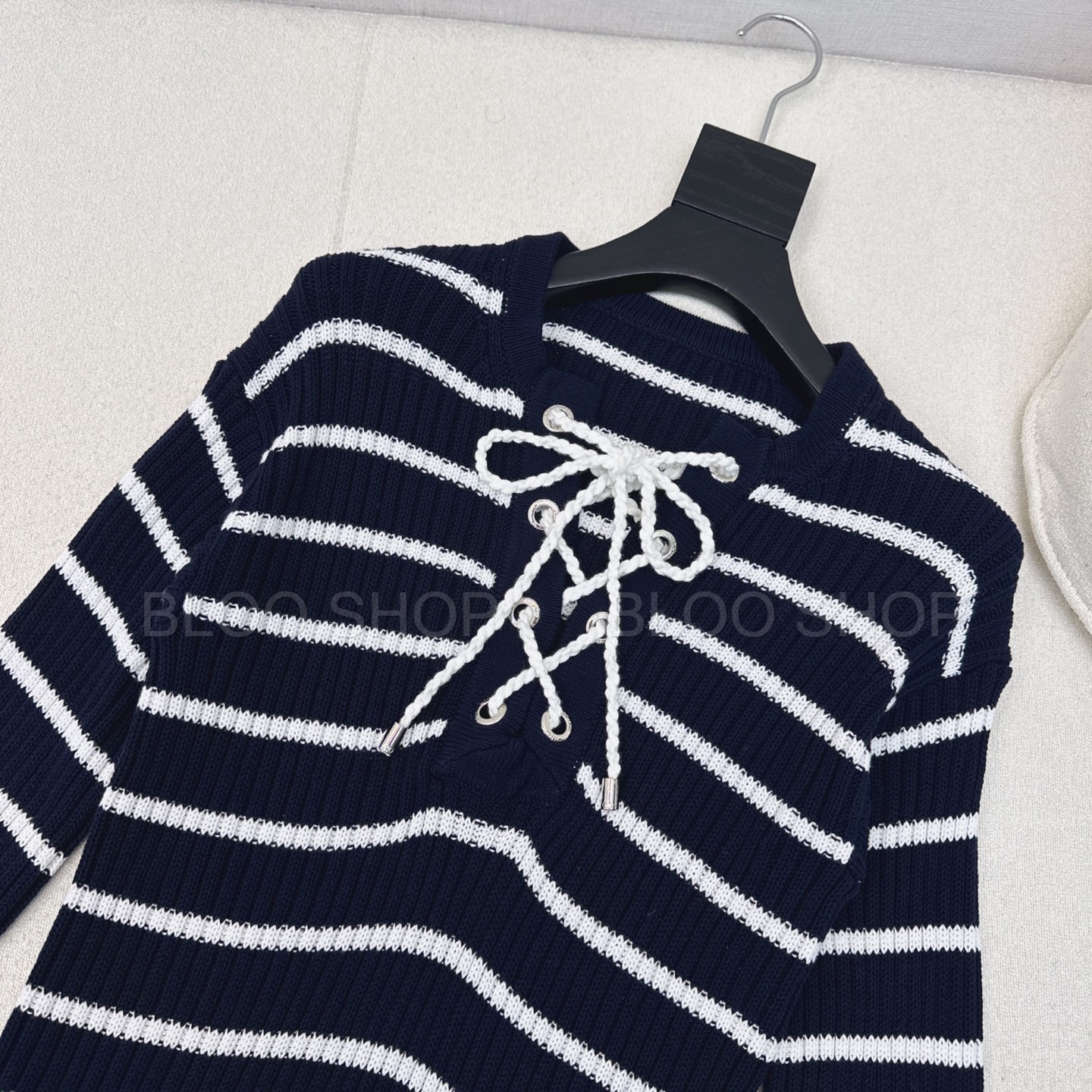 디올 Dioriviera 스트라이프 레이스업 캡 슬리브 스웨터