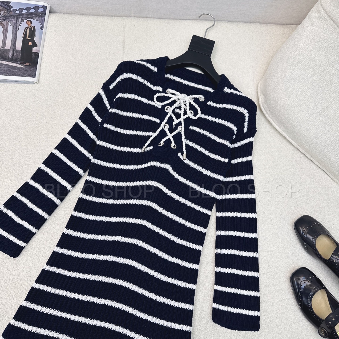 디올 Dioriviera 스트라이프 롱 스웨터 드레스