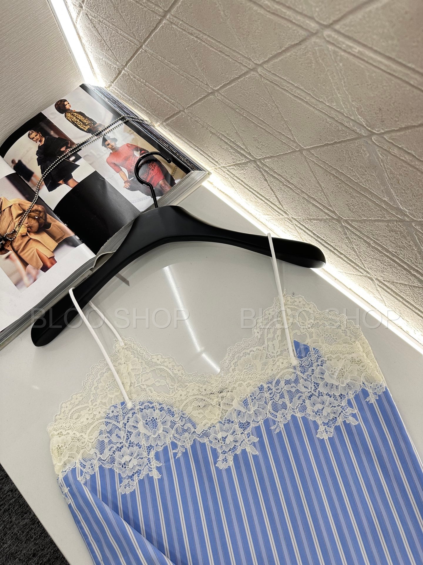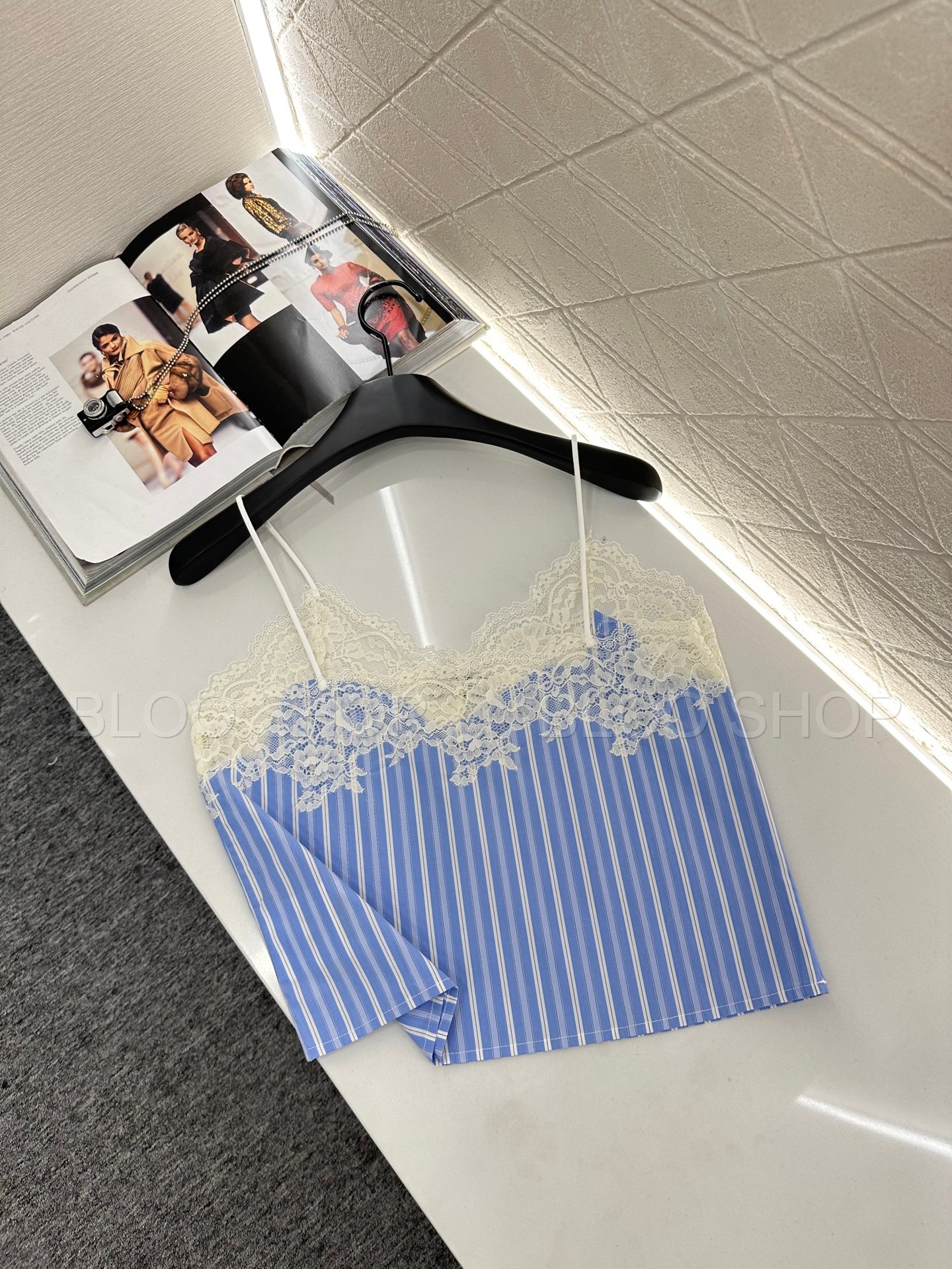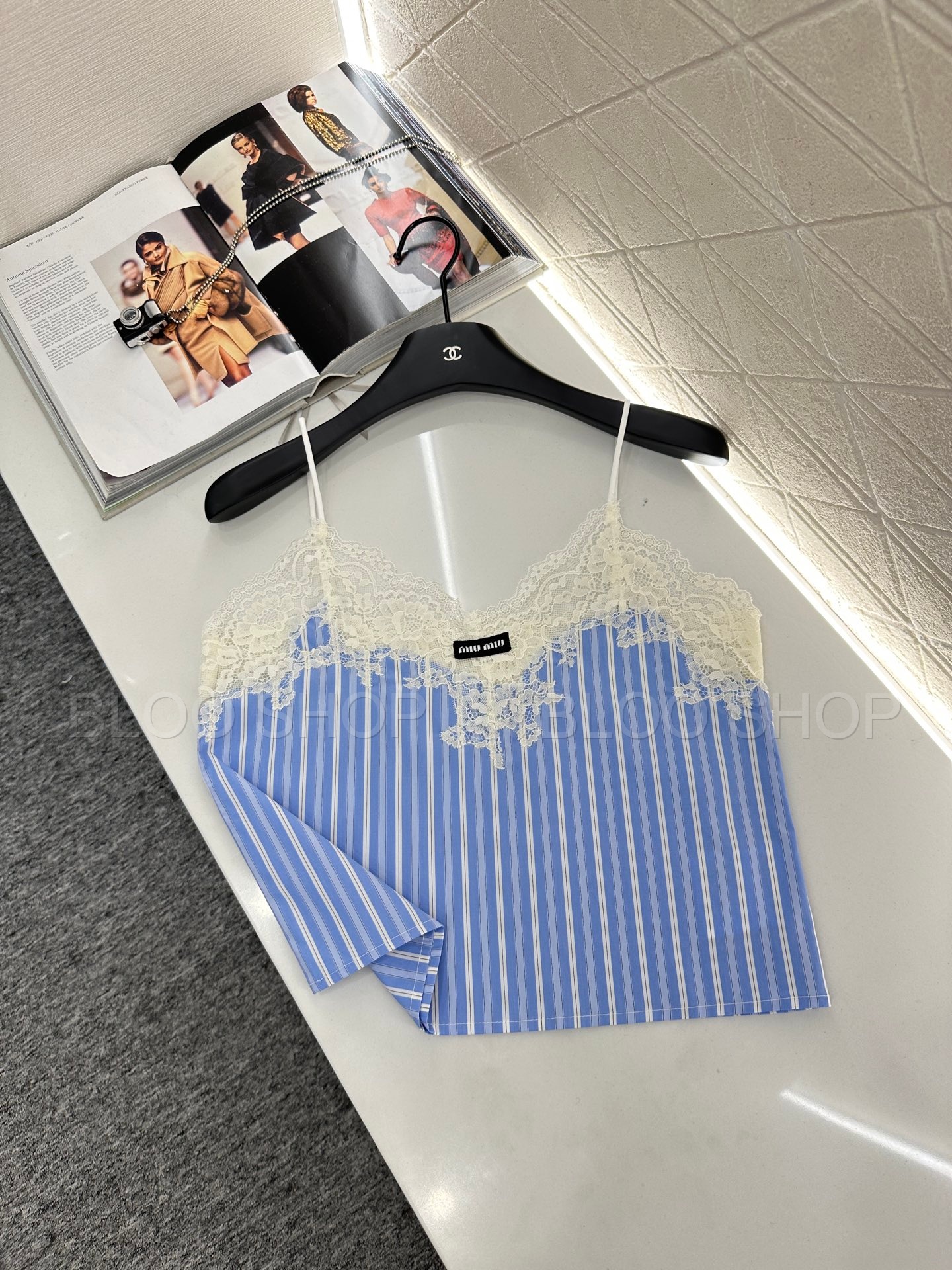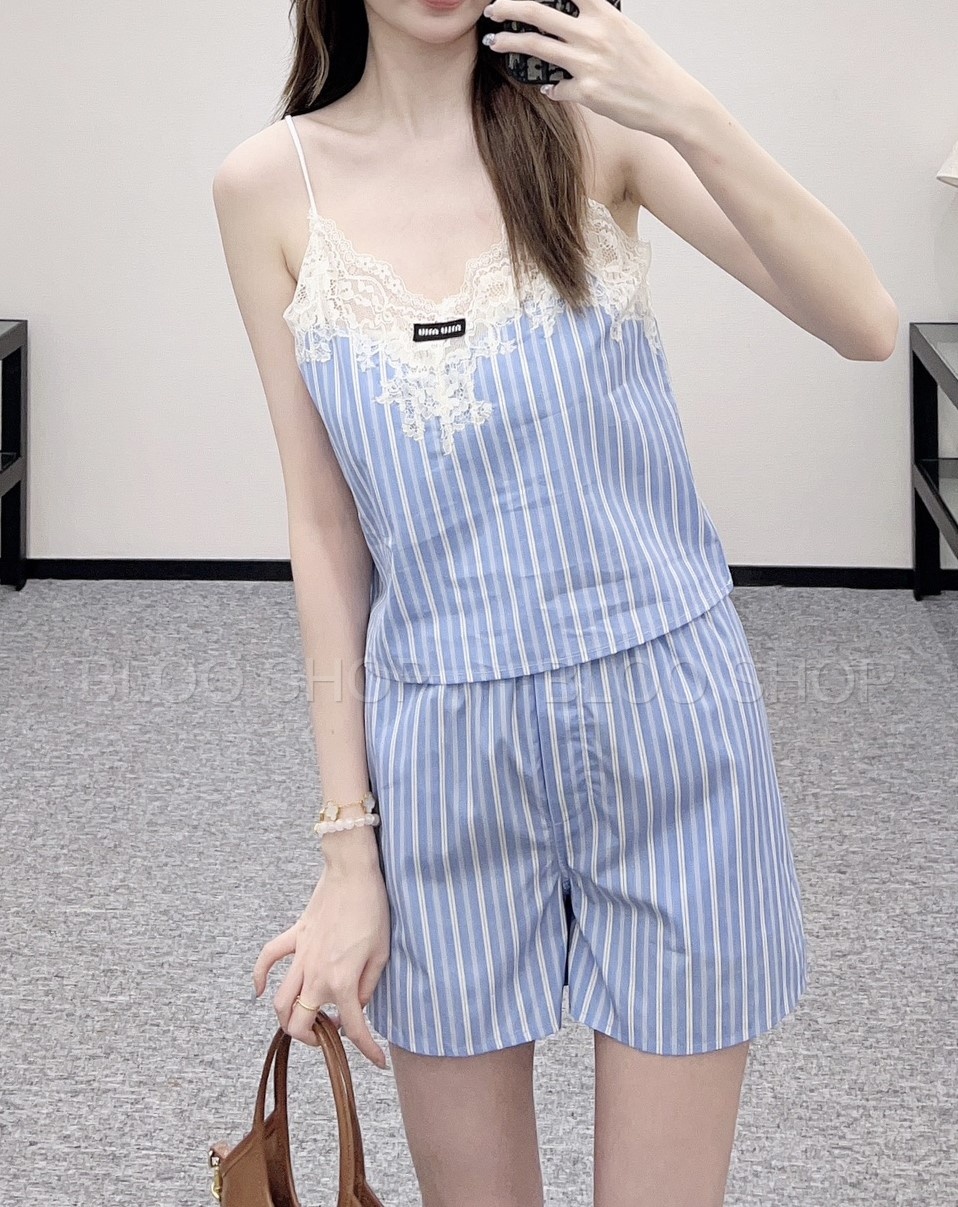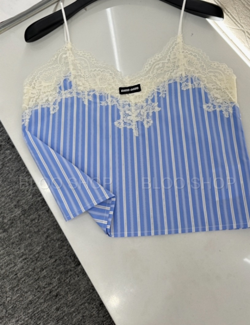 미우미우 스트라이프 레이스 트리밍 탑