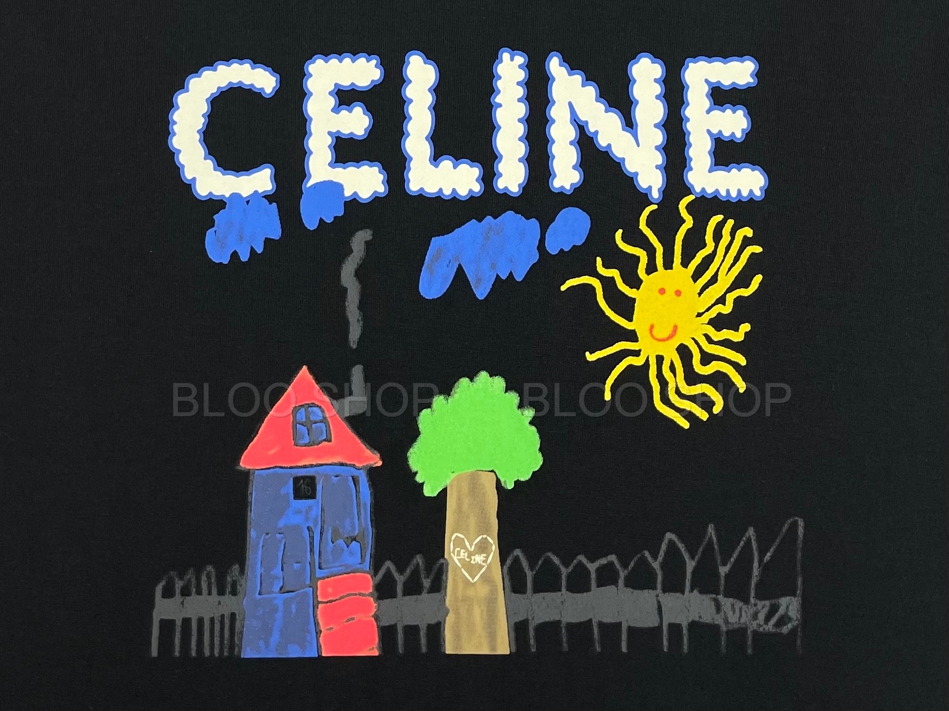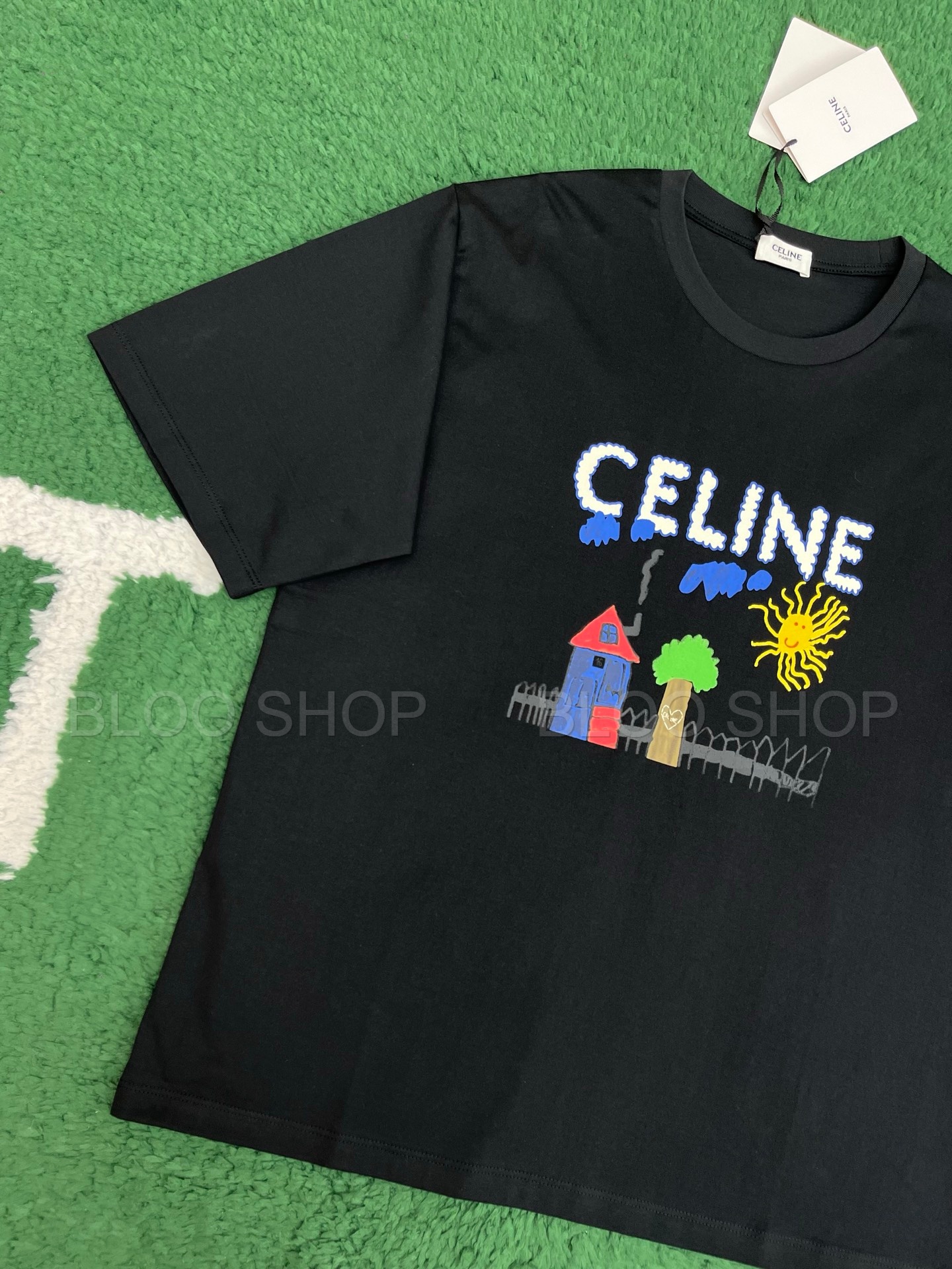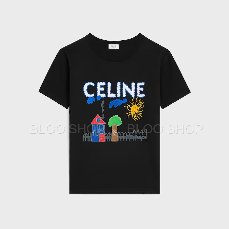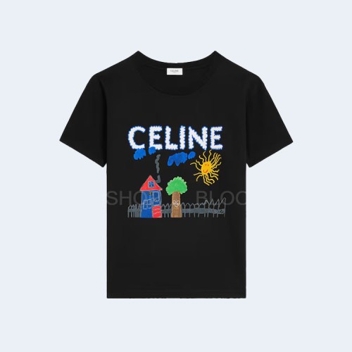 셀린느 루즈 코튼 저지 멀티컬러 티셔츠 블랙