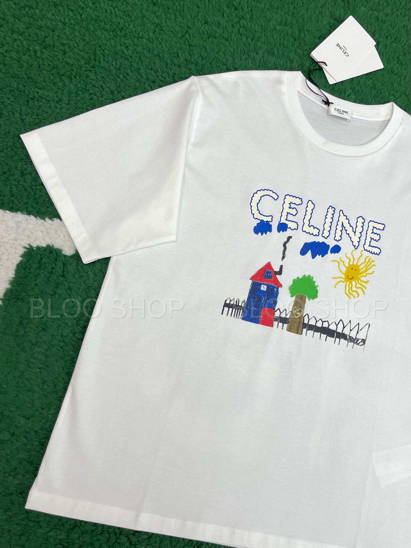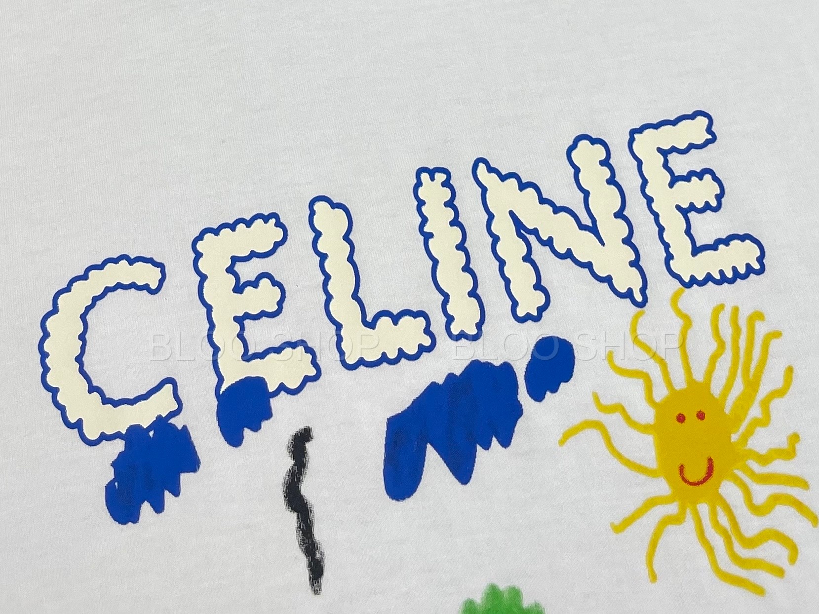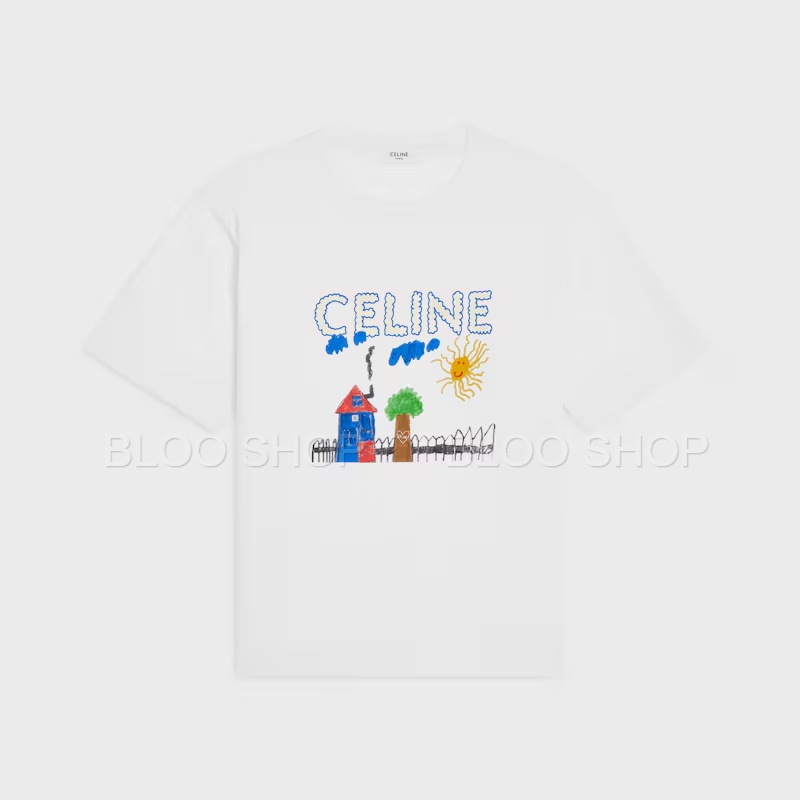 셀린느 루즈 코튼 저지 멀티컬러 티셔츠 화이트