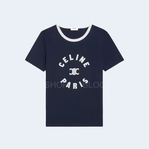 셀린느 트리옹프 코튼 저지 블루 티셔츠