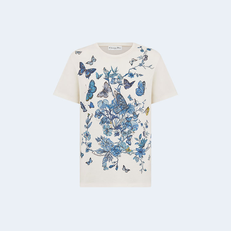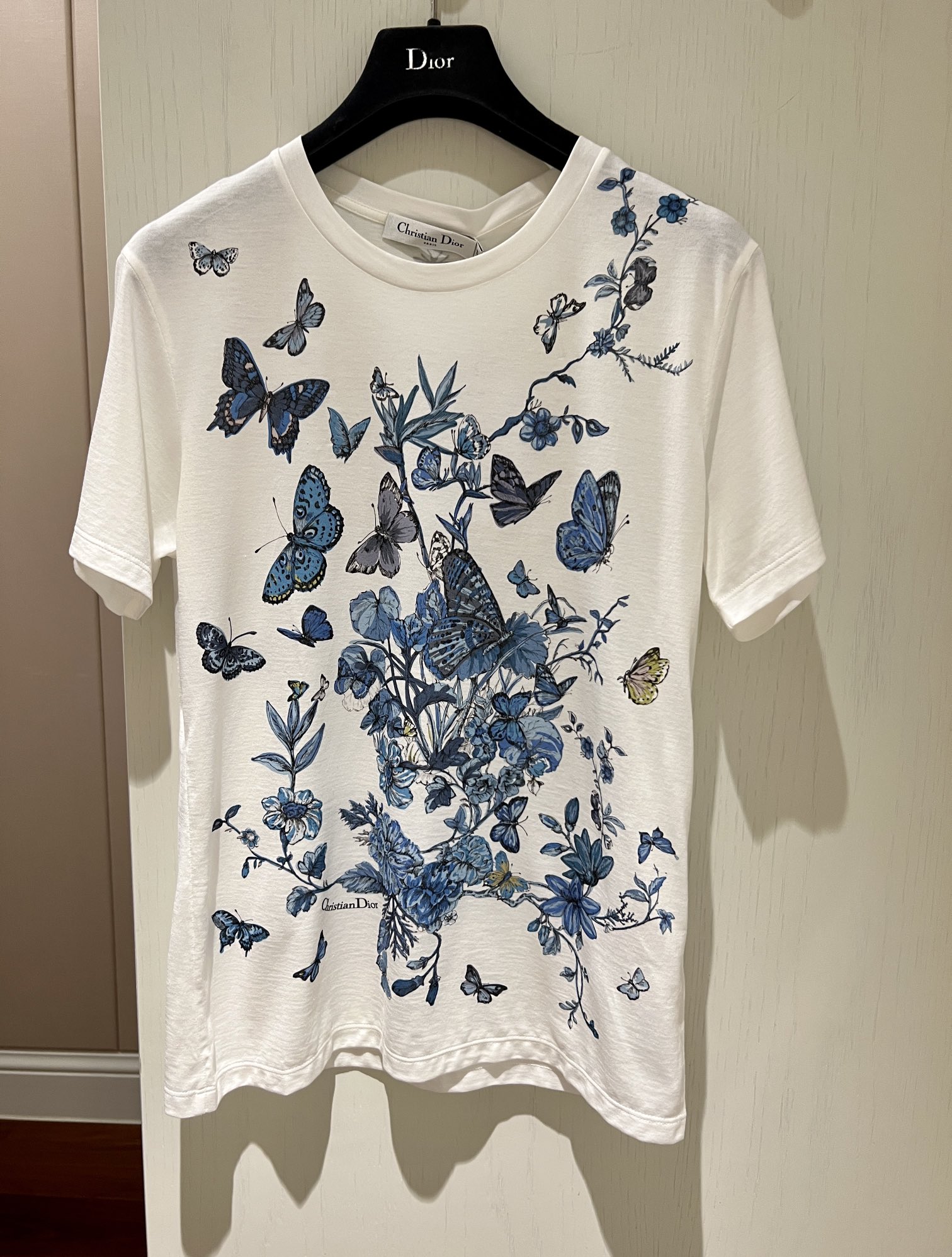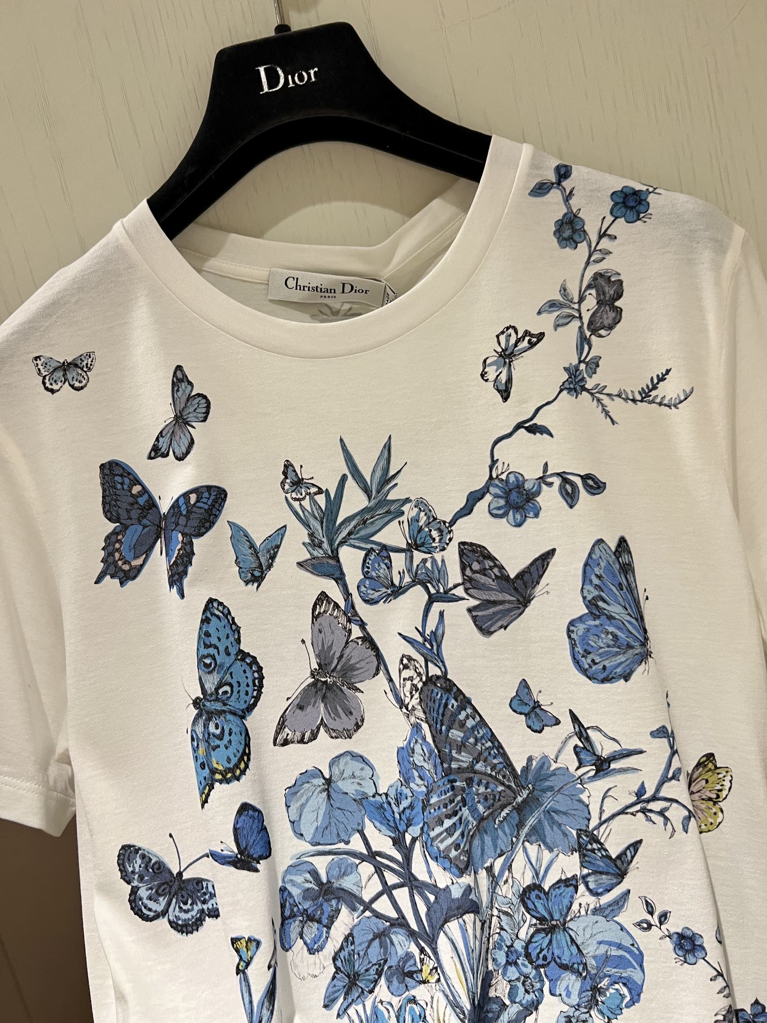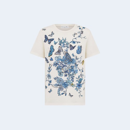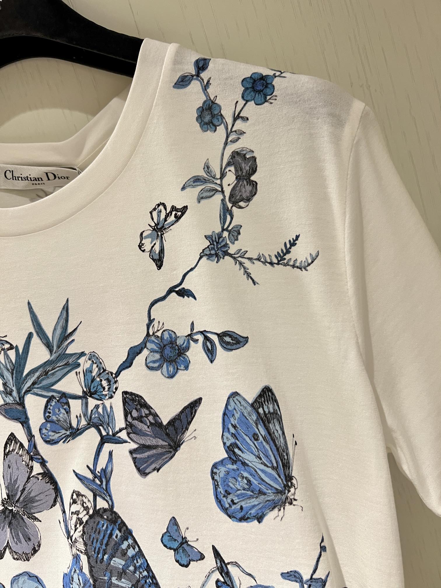 디올 파스텔 미드나잇 블루 버터플라이 티셔츠