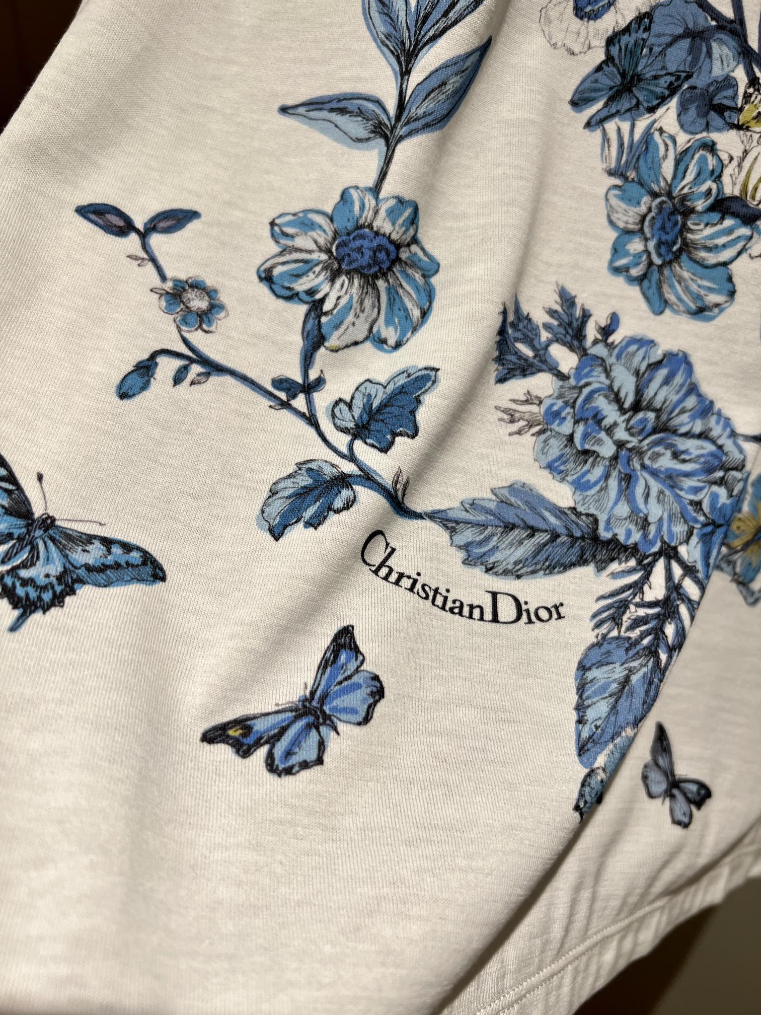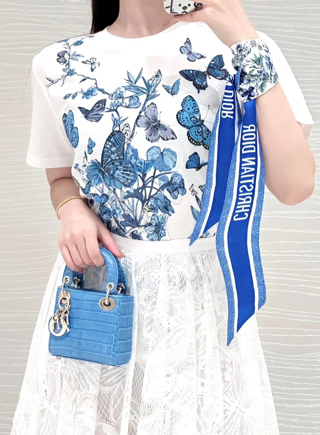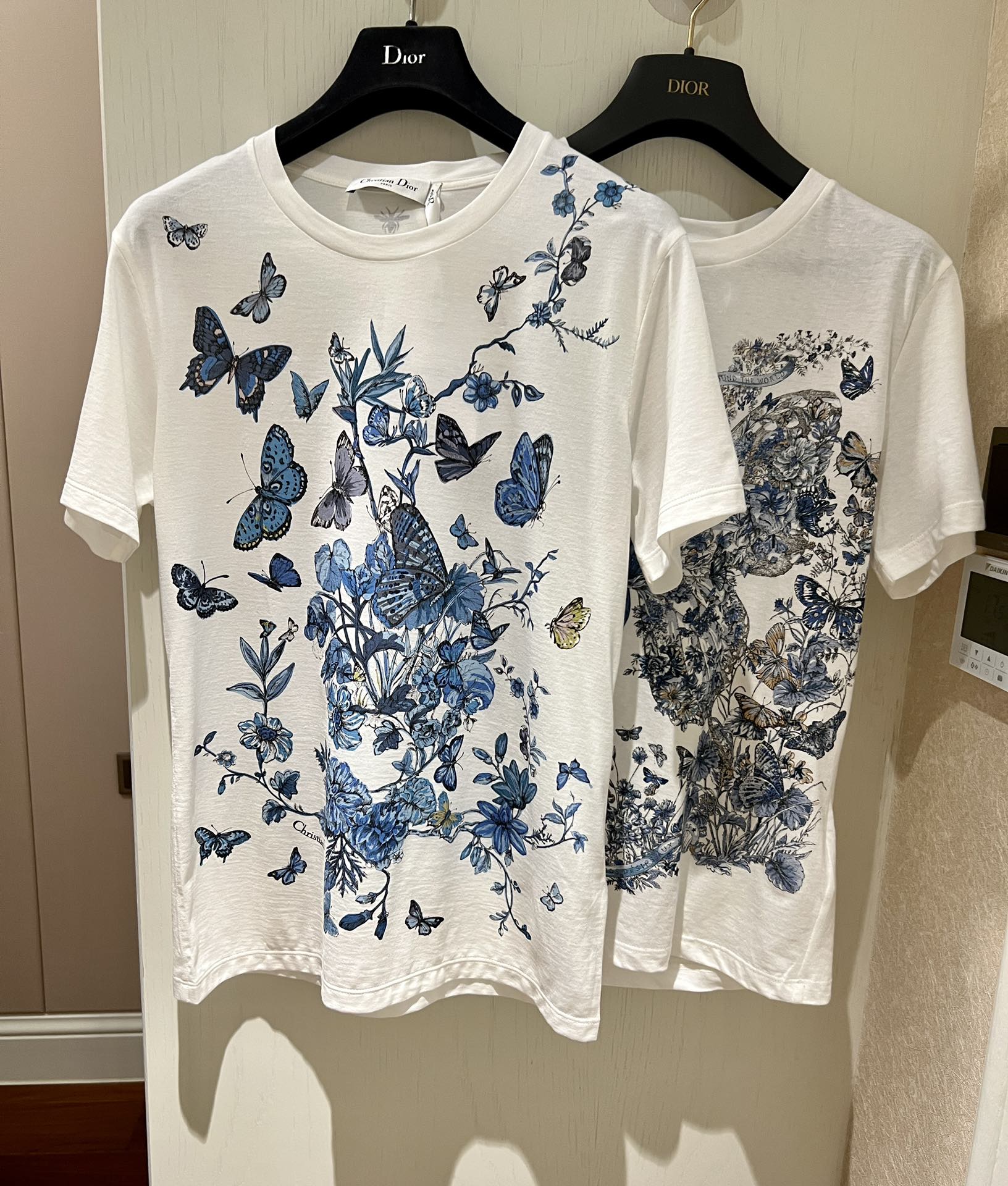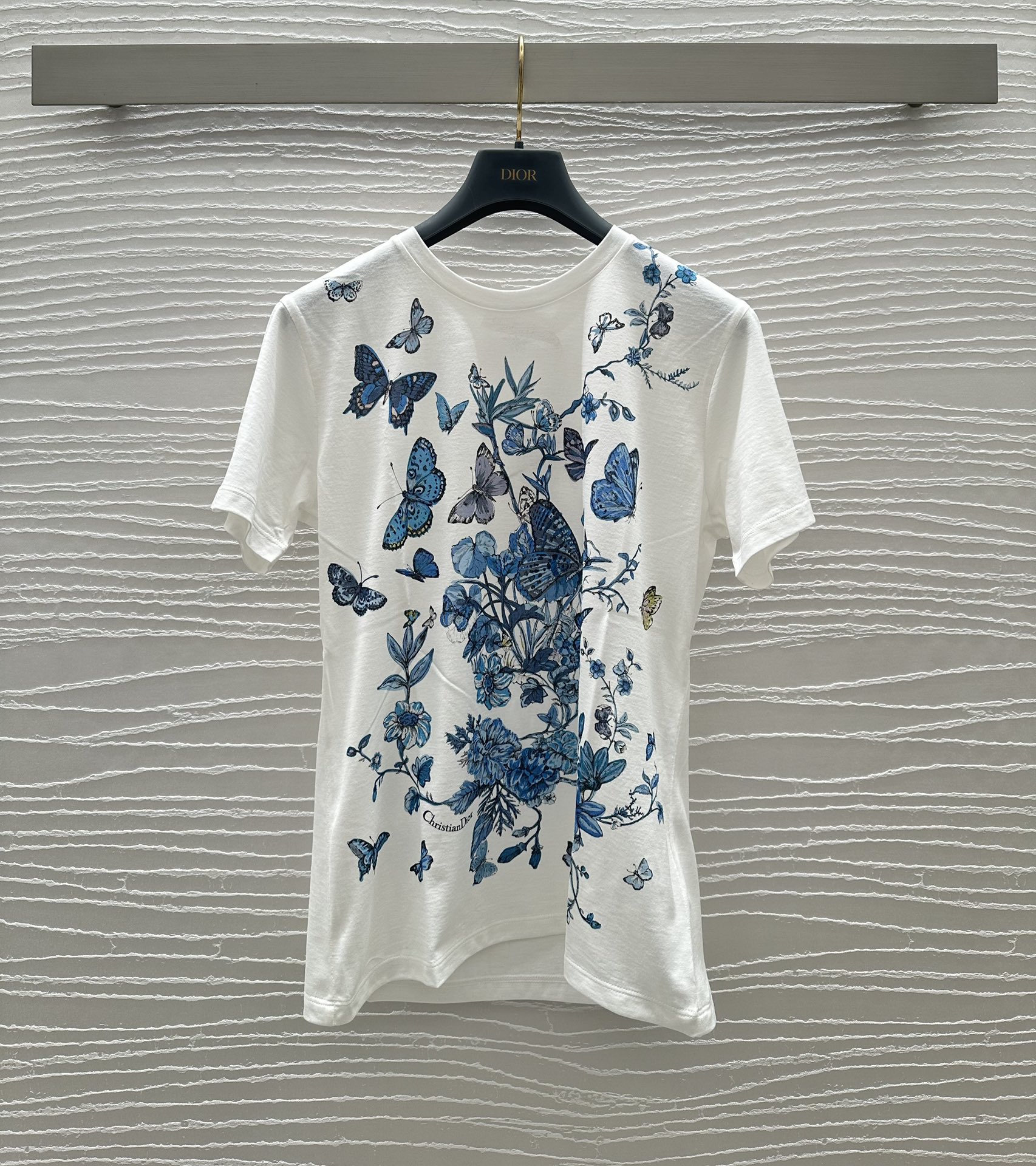 디올 파스텔 미드나잇 블루 버터플라이 티셔츠