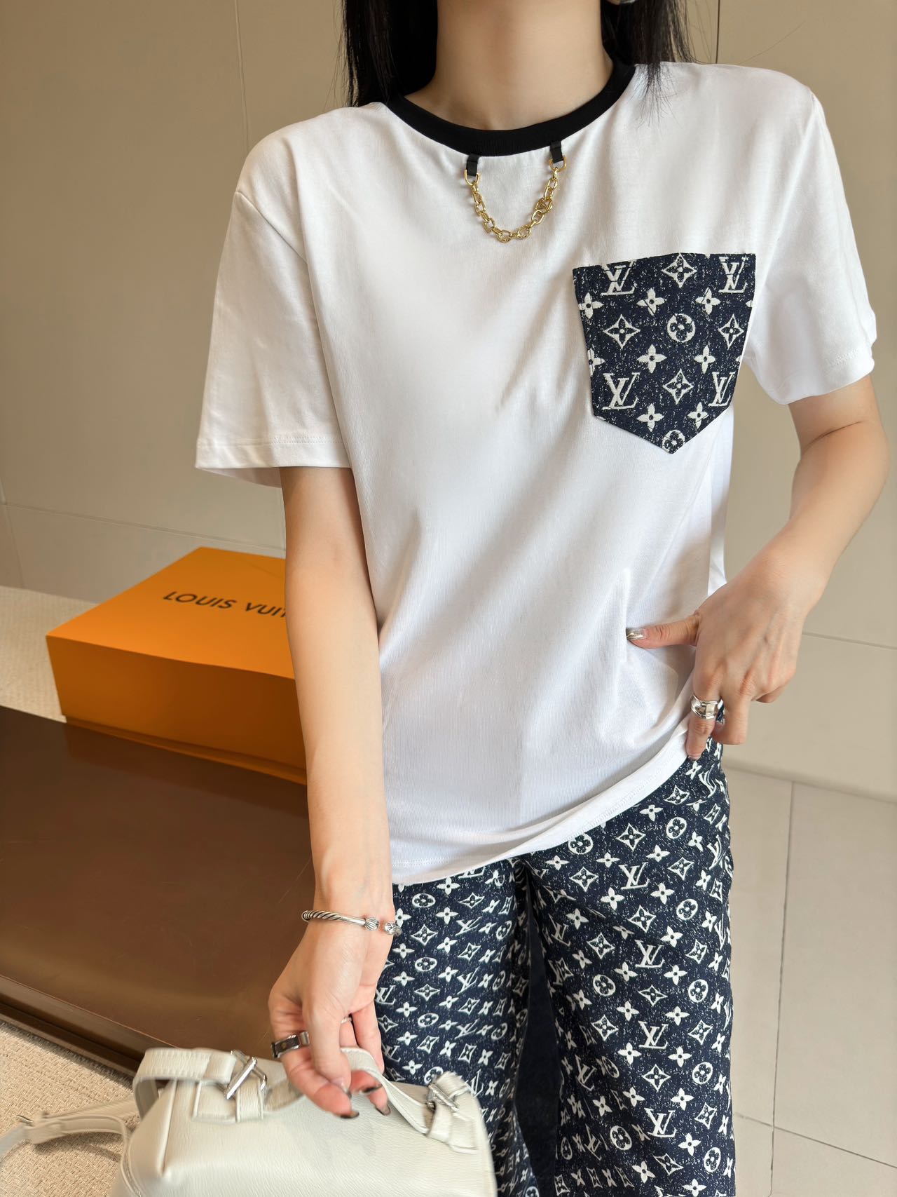 루이비통 모노그램 포켓 화이트 티셔츠 1AC1R5