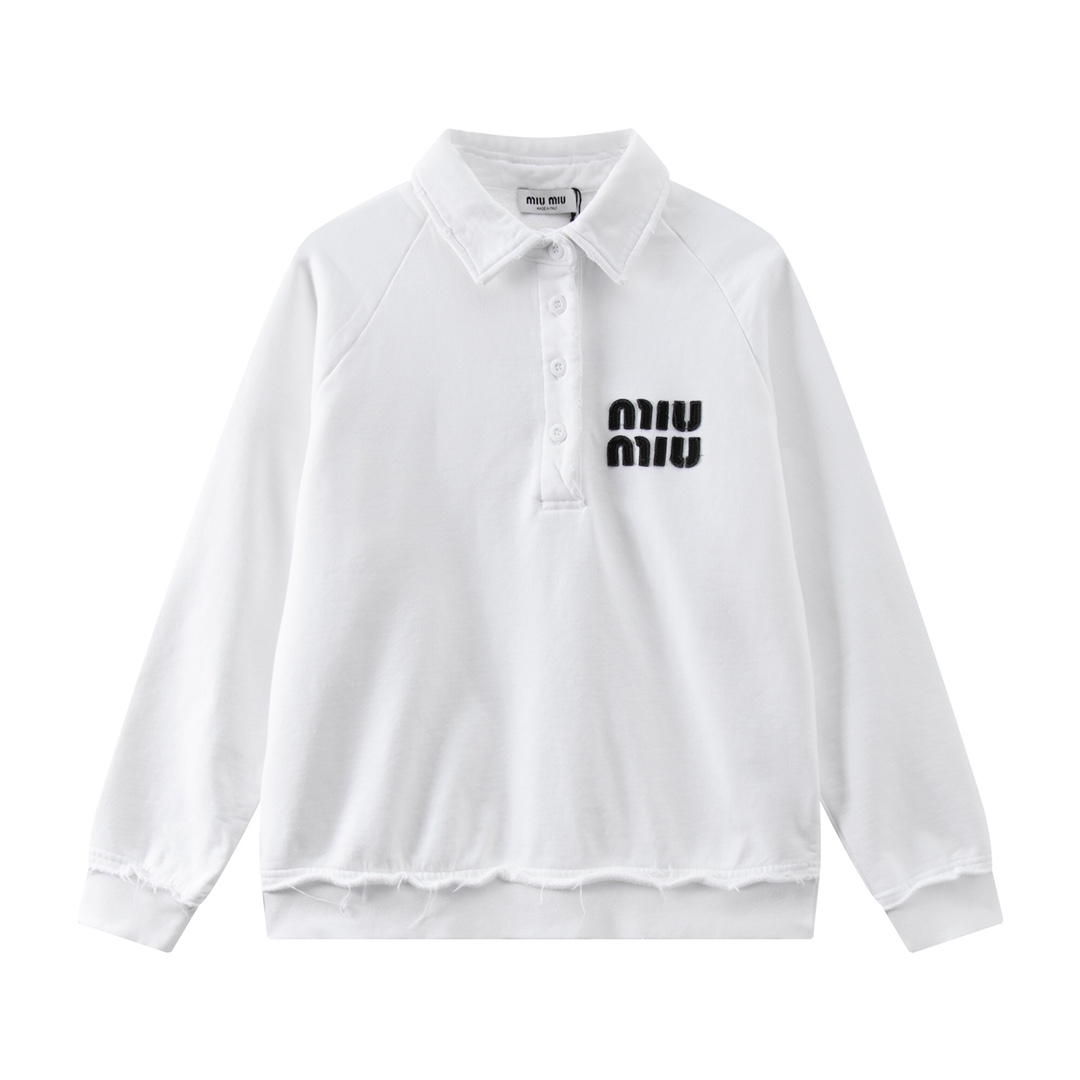 미우미우 코튼 폴로 스웨트셔츠 화이트