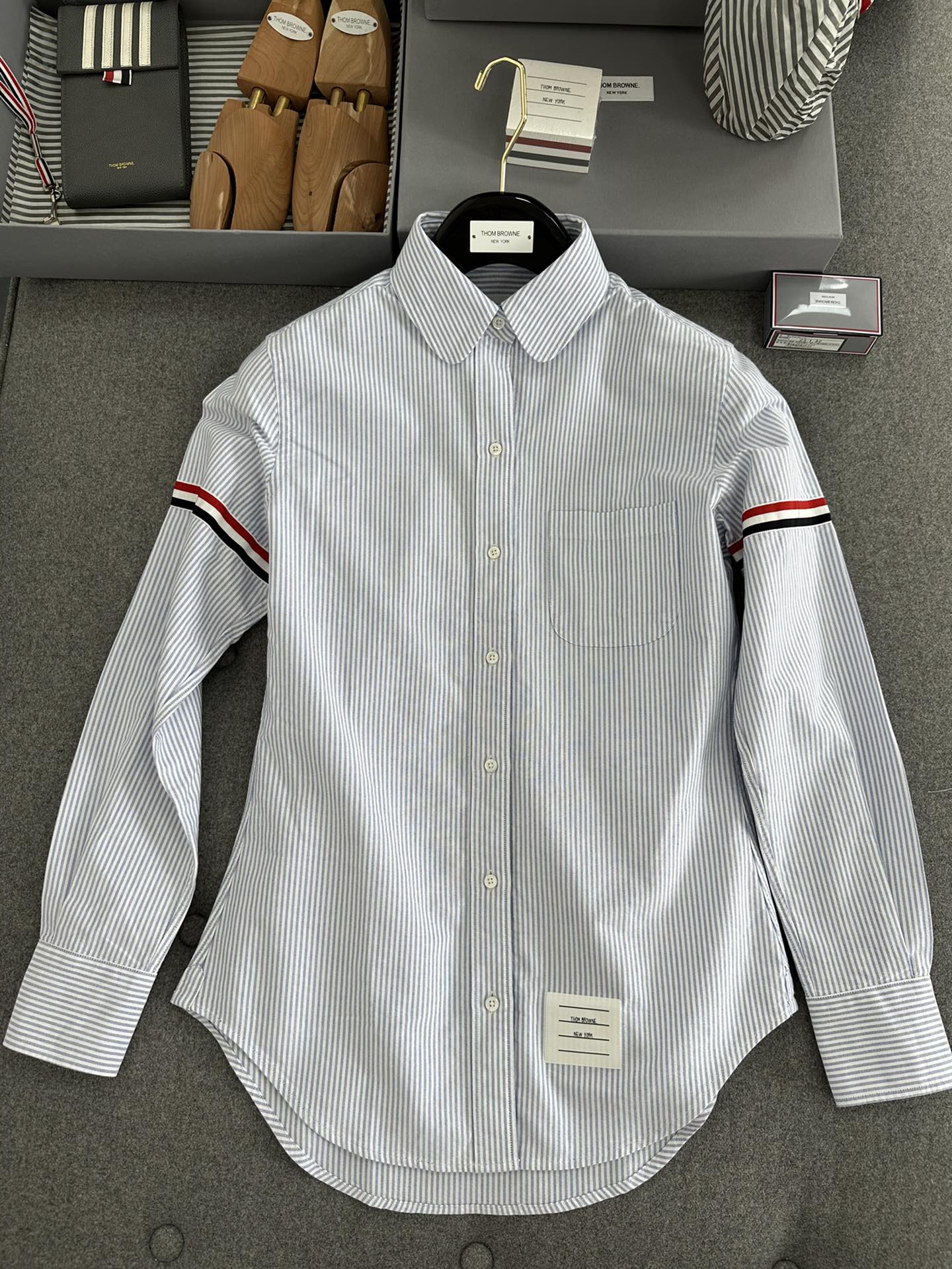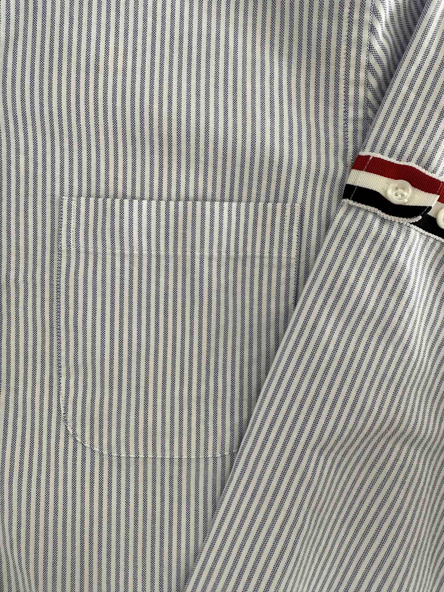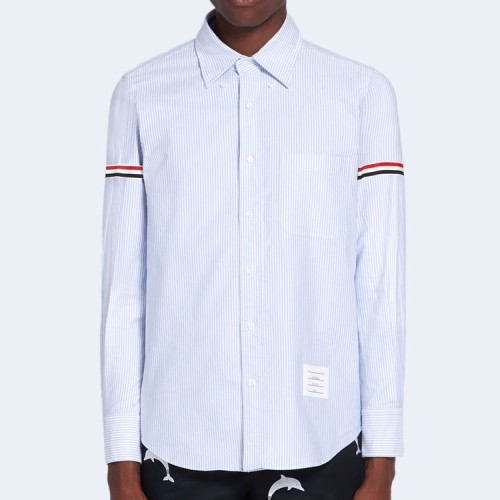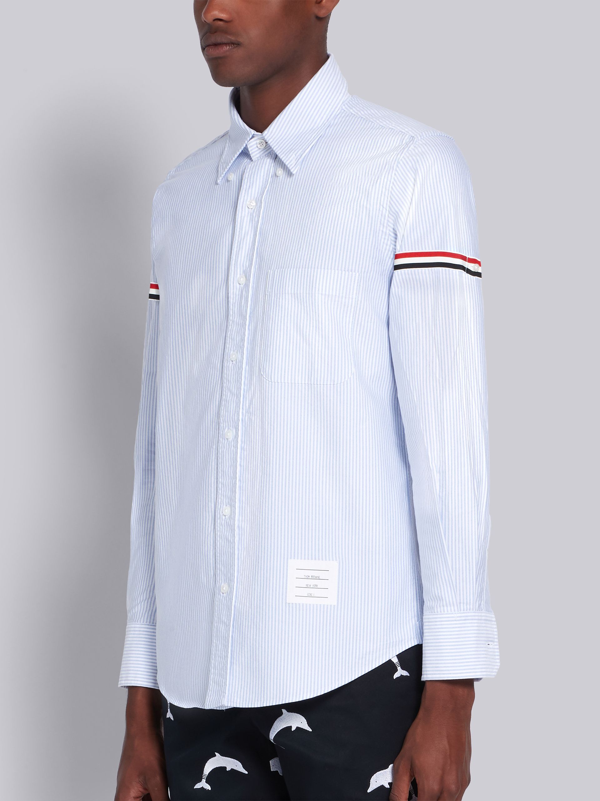 톰브라운 라이트 블루 옥스포드 유니버시티 스트라이프 RWB 암밴드 셔츠