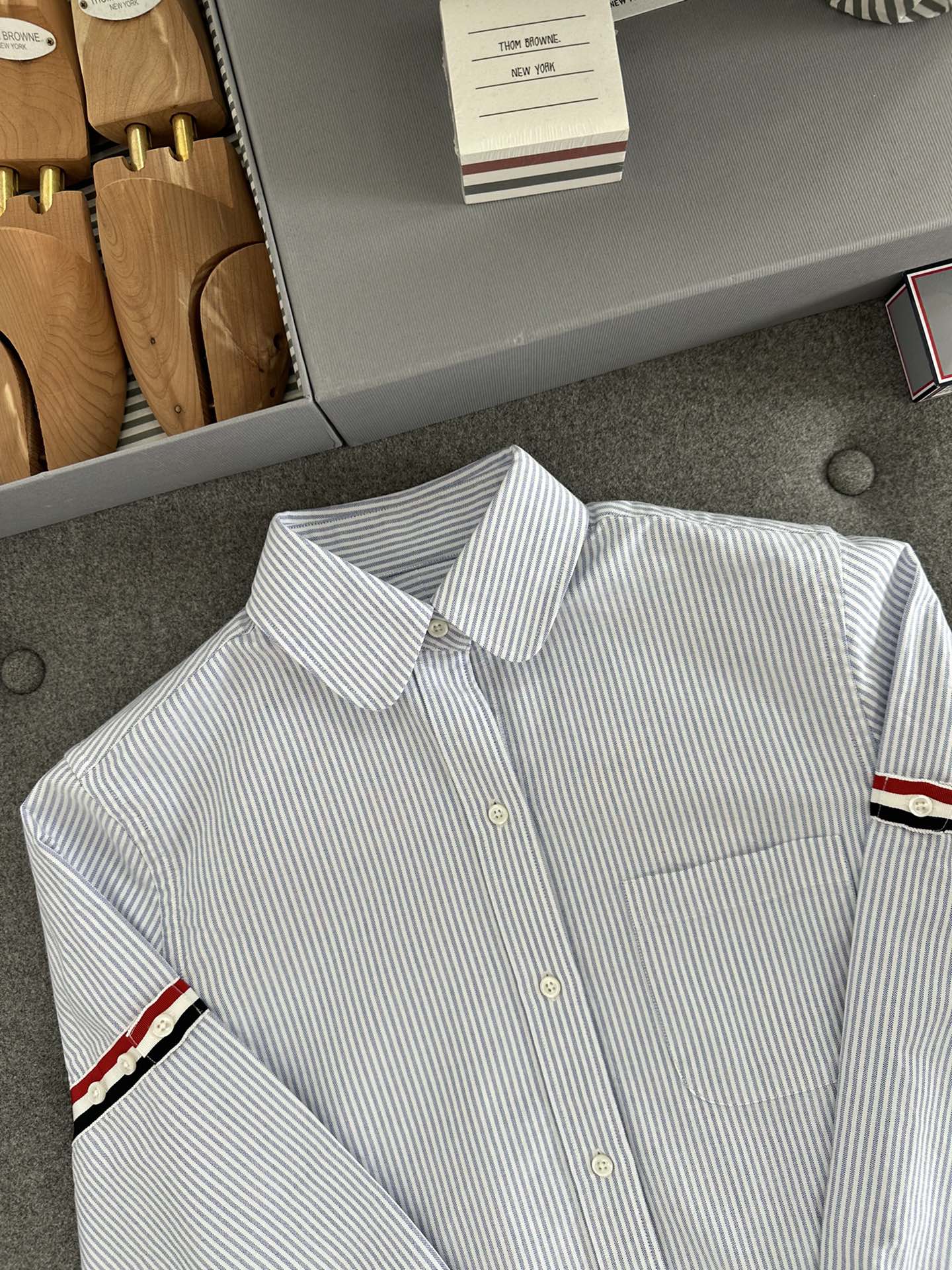 톰브라운 라이트 블루 옥스포드 그로그랭 암밴드 셔츠