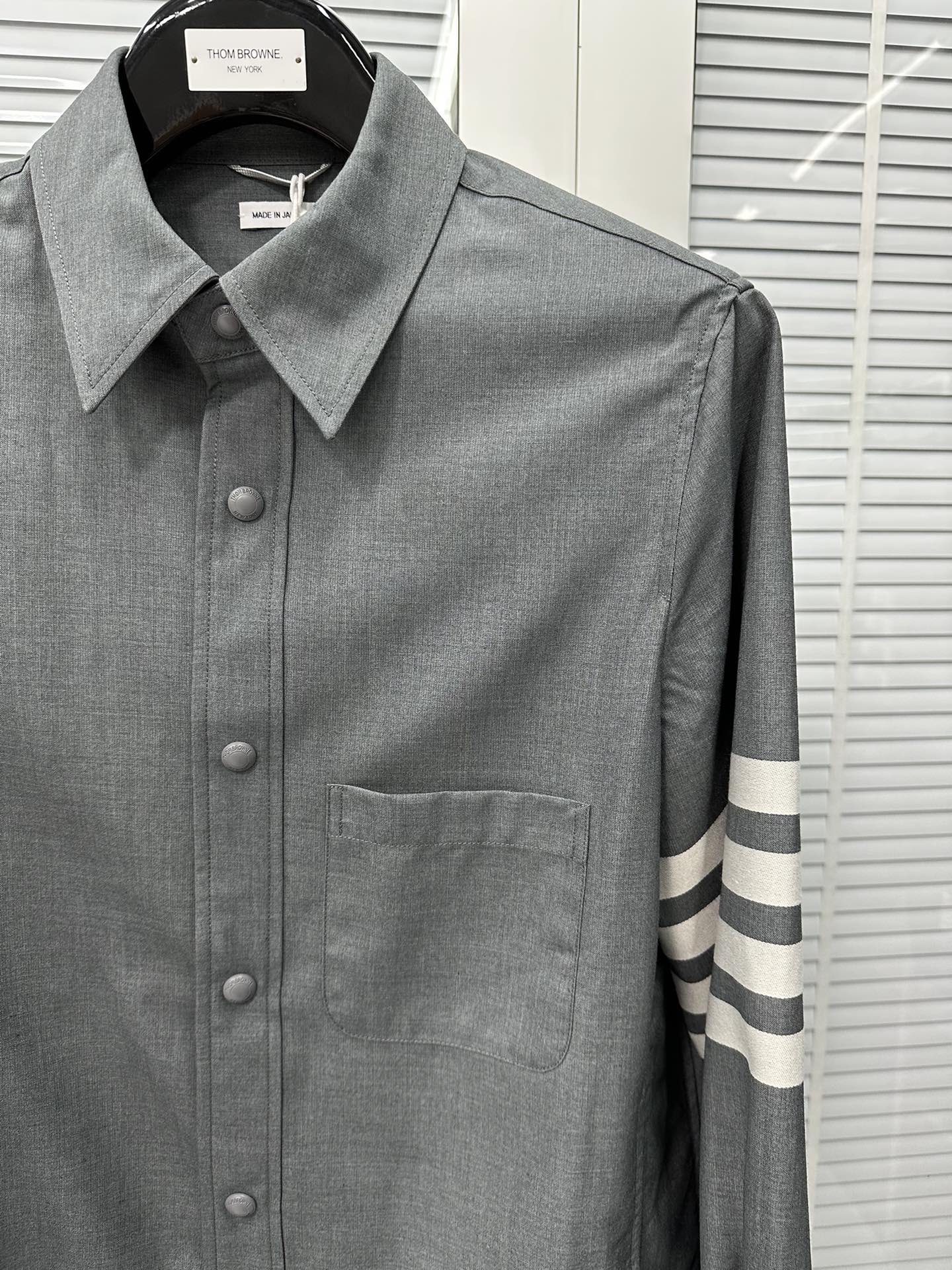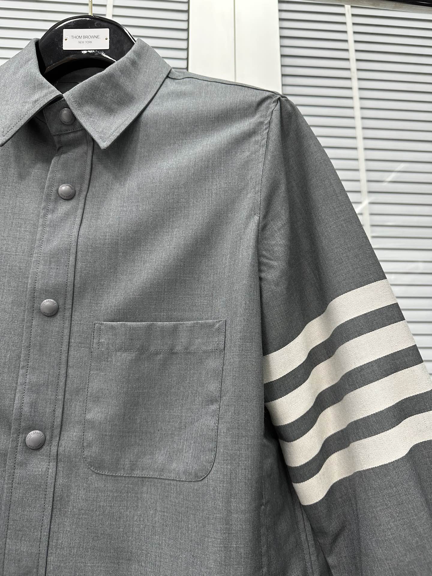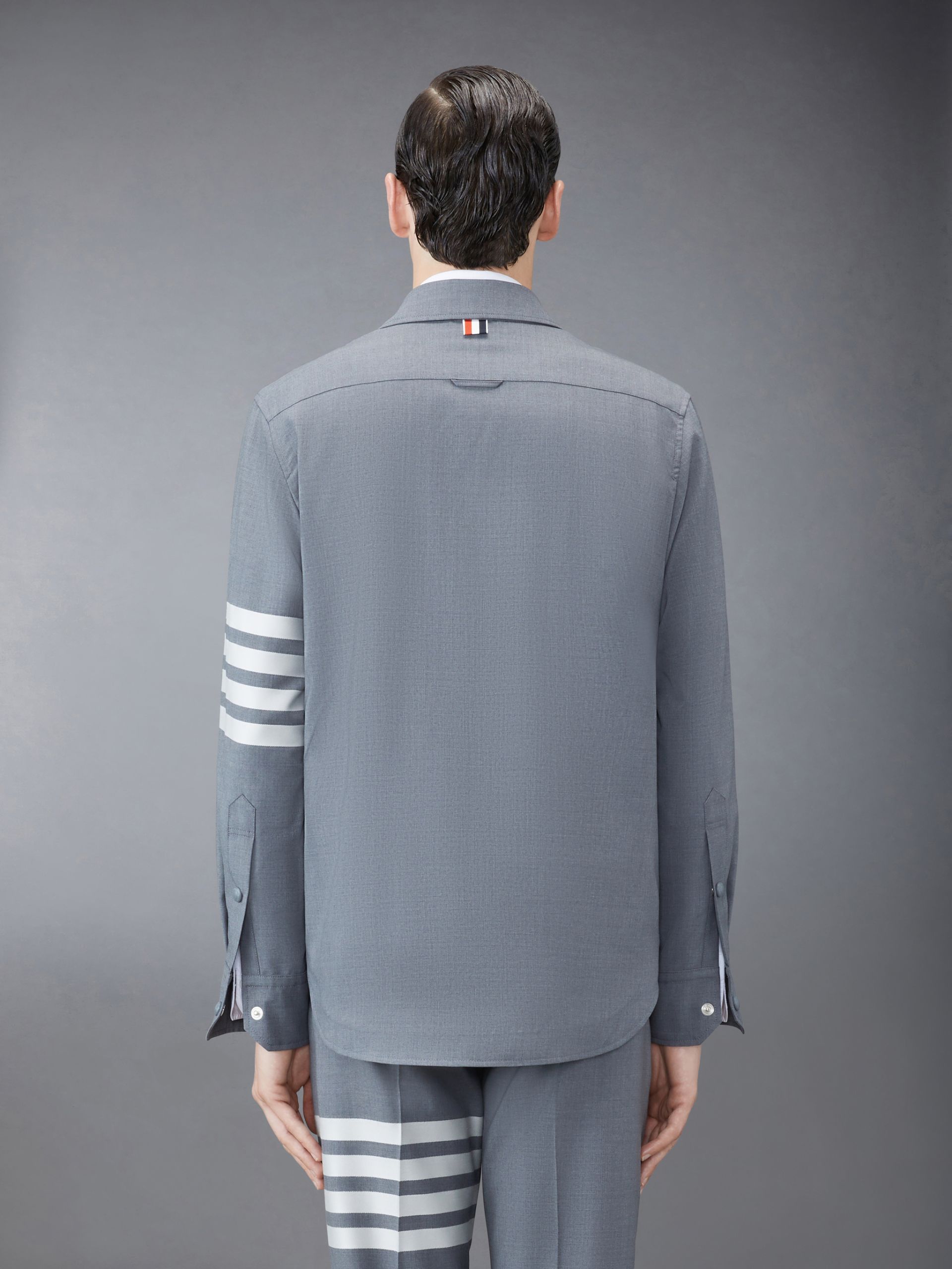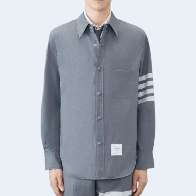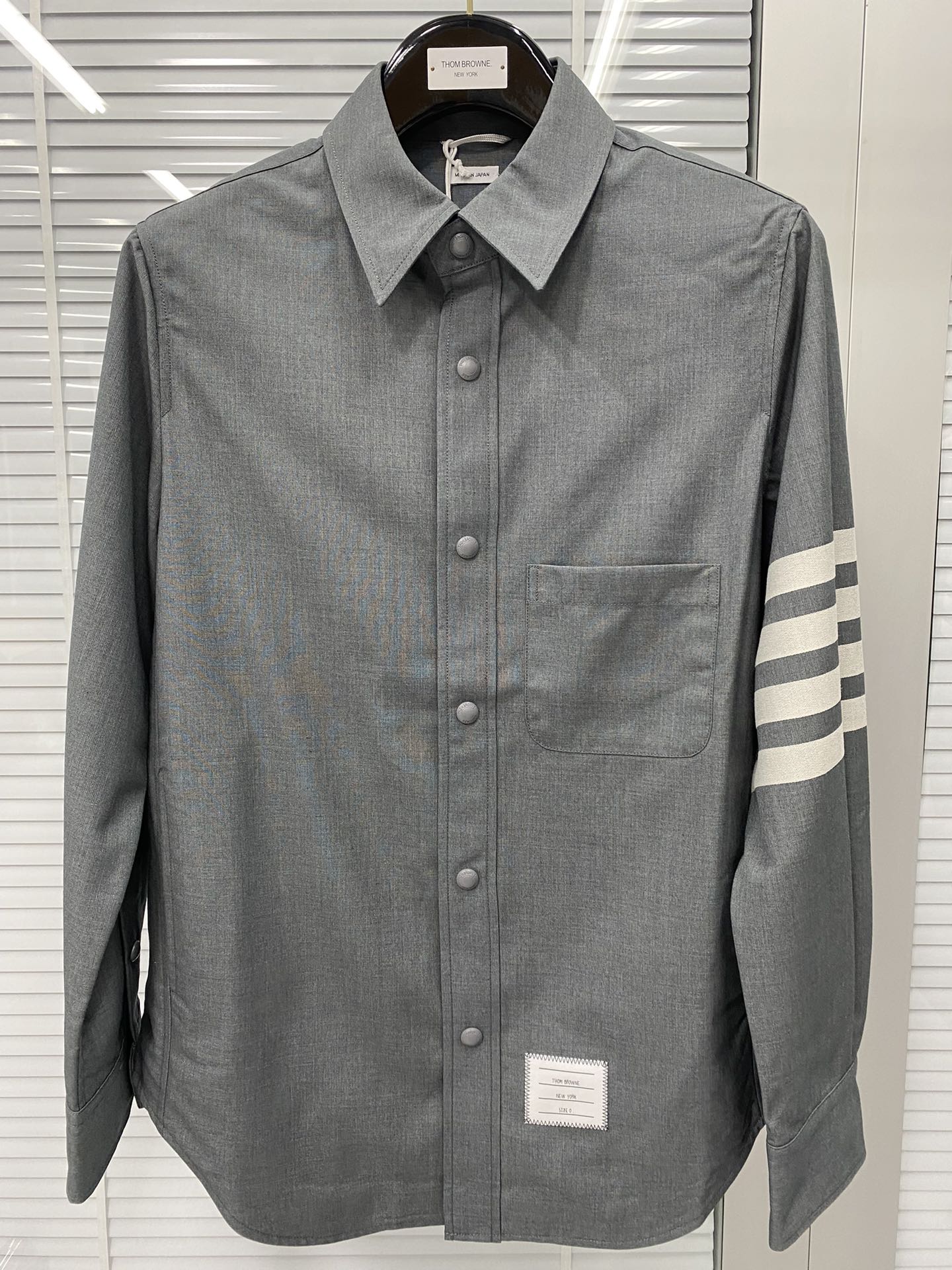 톰브라운 미디엄 그레이 4-바 울 스냅 프론트 셔츠 재킷