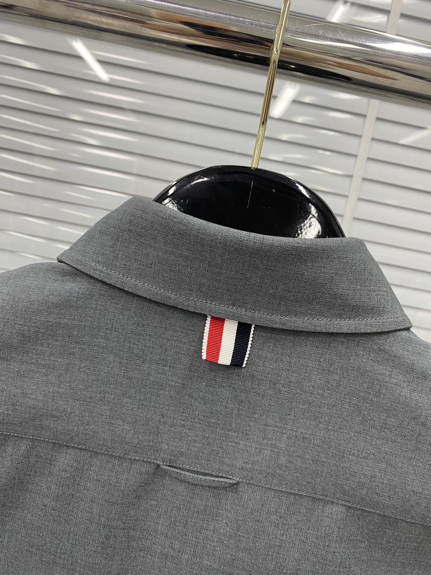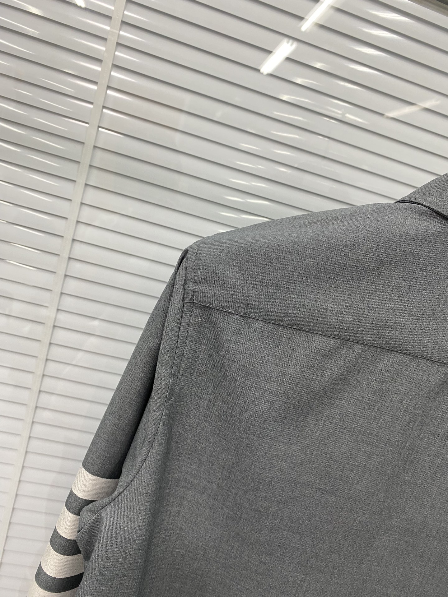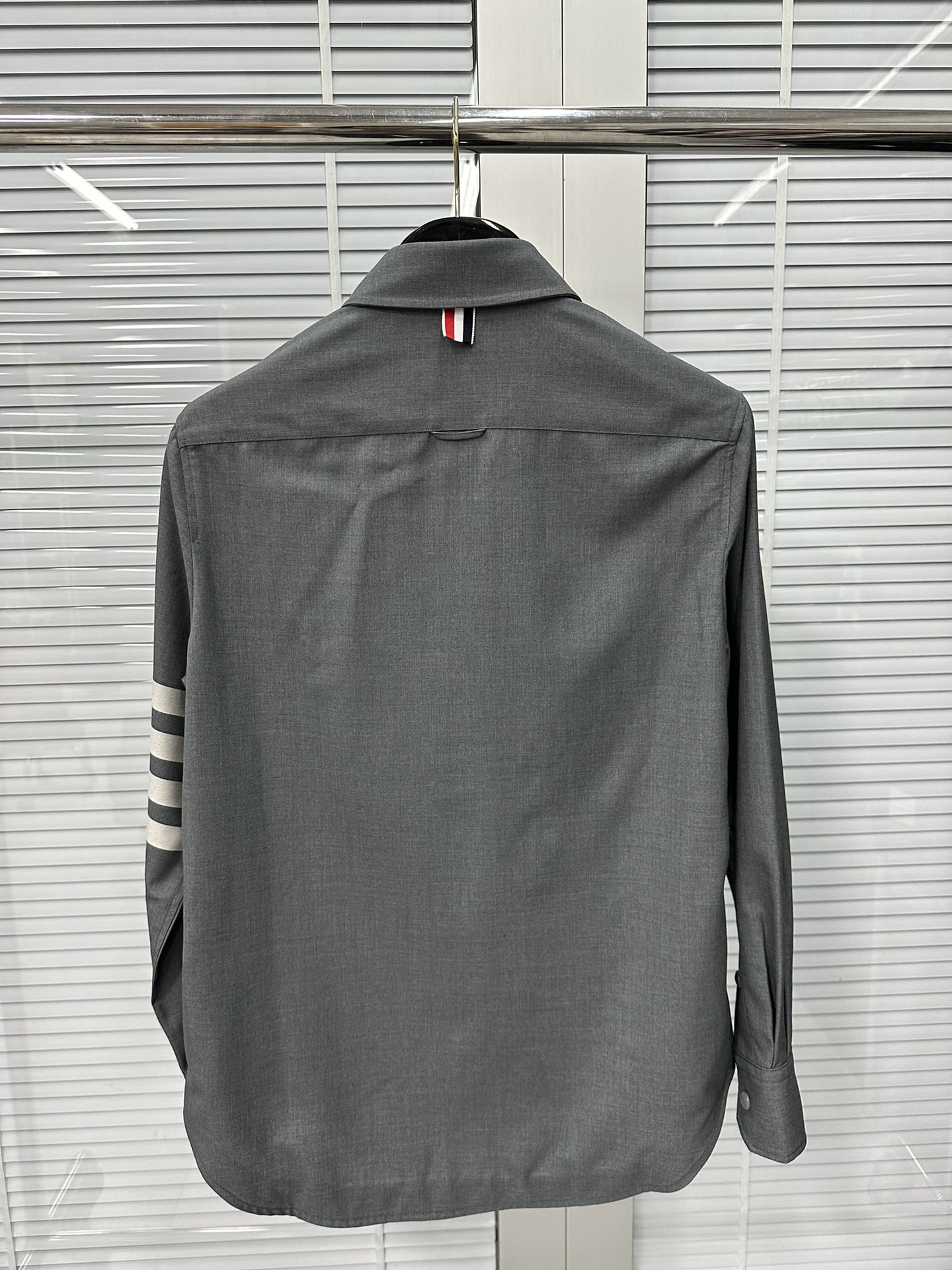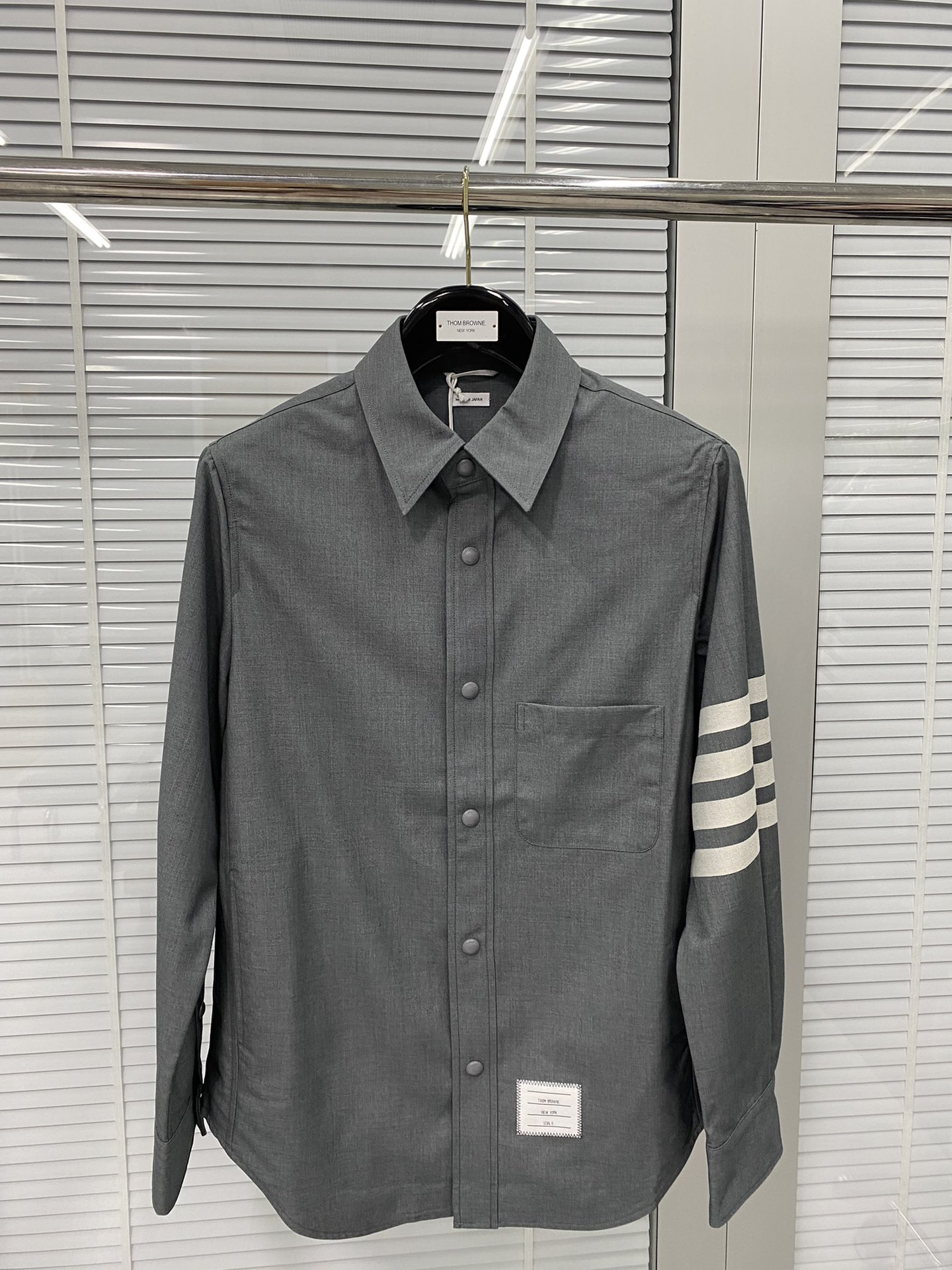 톰브라운 미디엄 그레이 4-바 울 스냅 프론트 셔츠 재킷