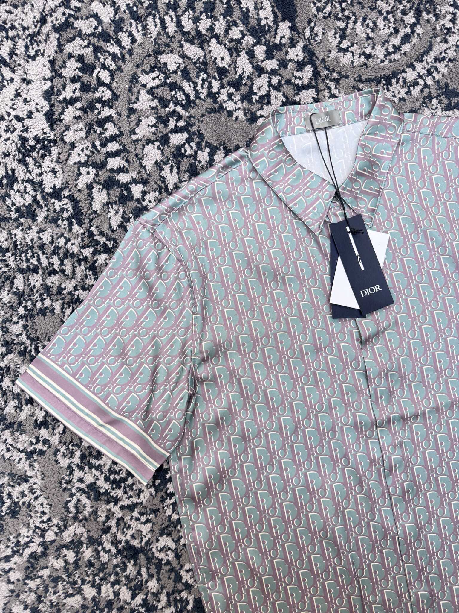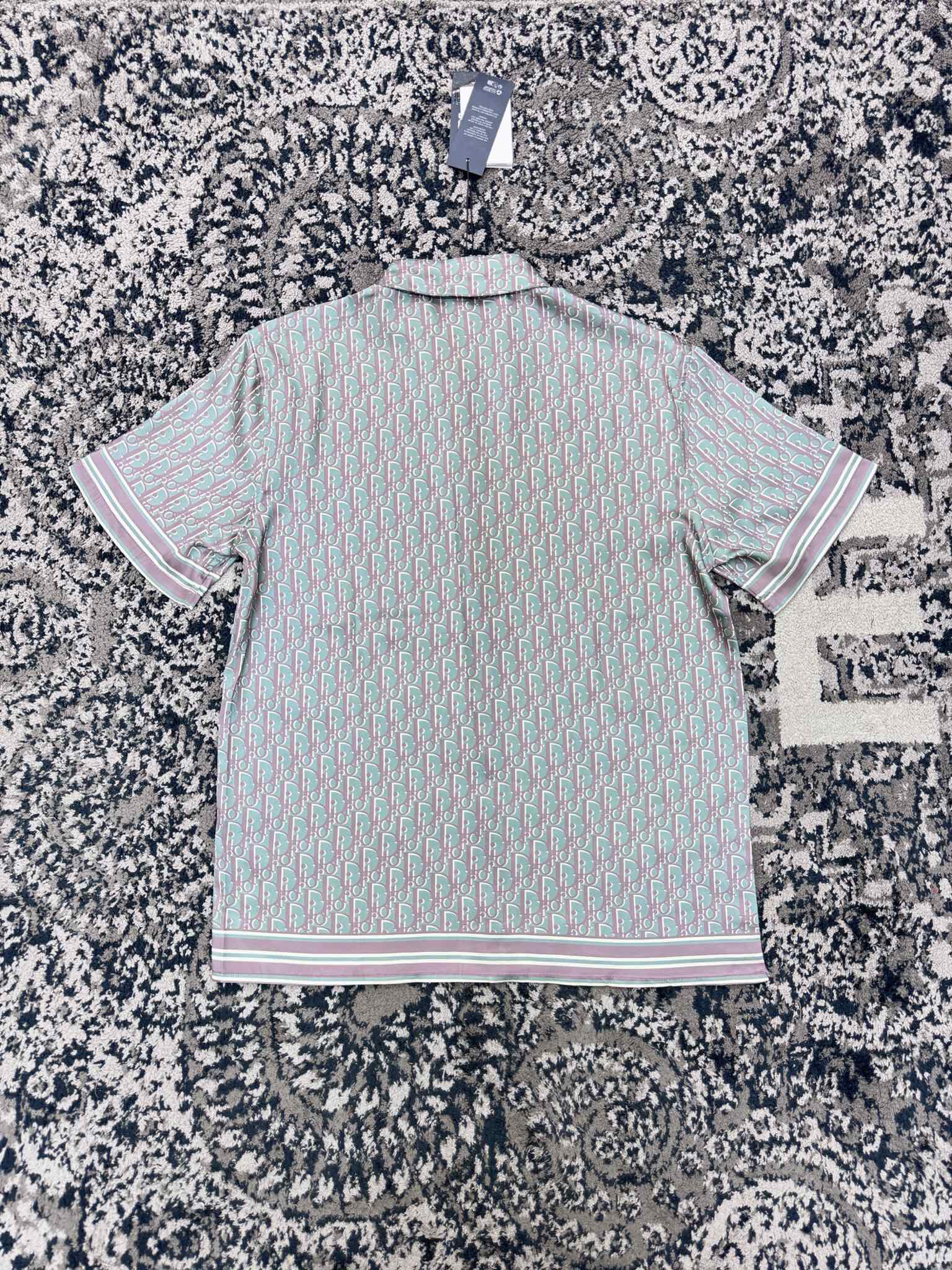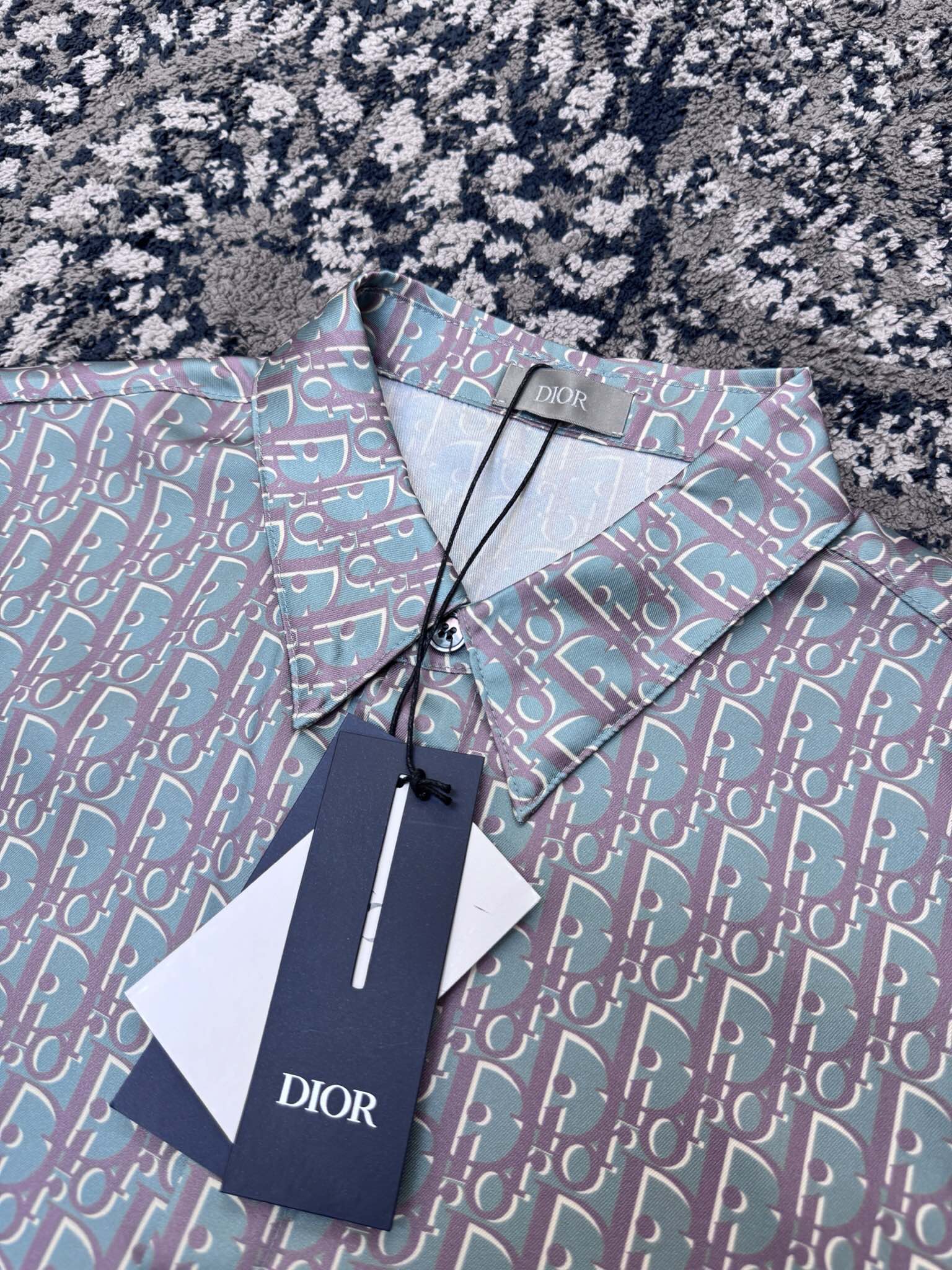 디올 오블리크 블루 실크 트윌 셔츠