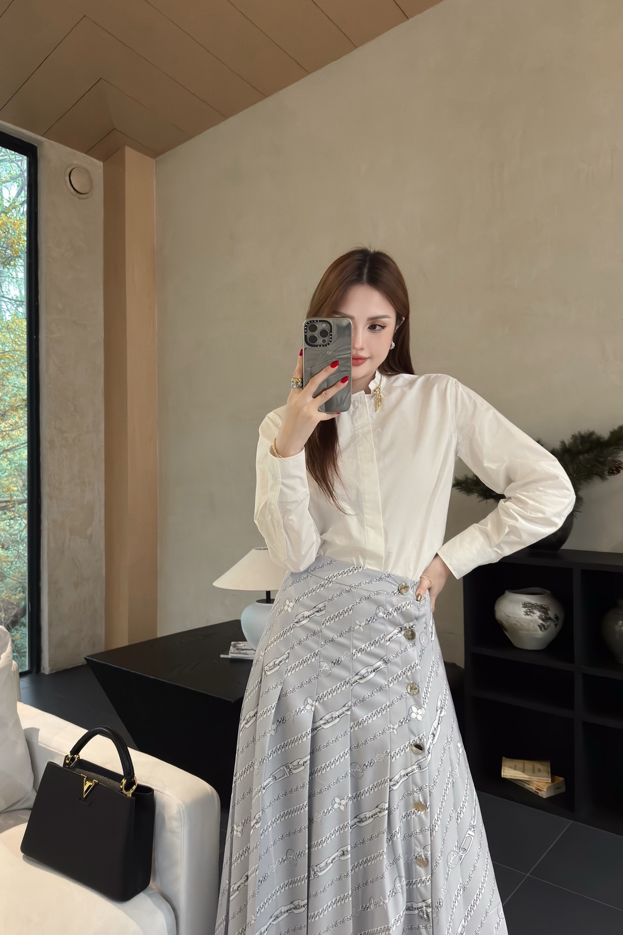 루이비통 플리츠 칼라 체인 프린트 셔츠 1AGOB0