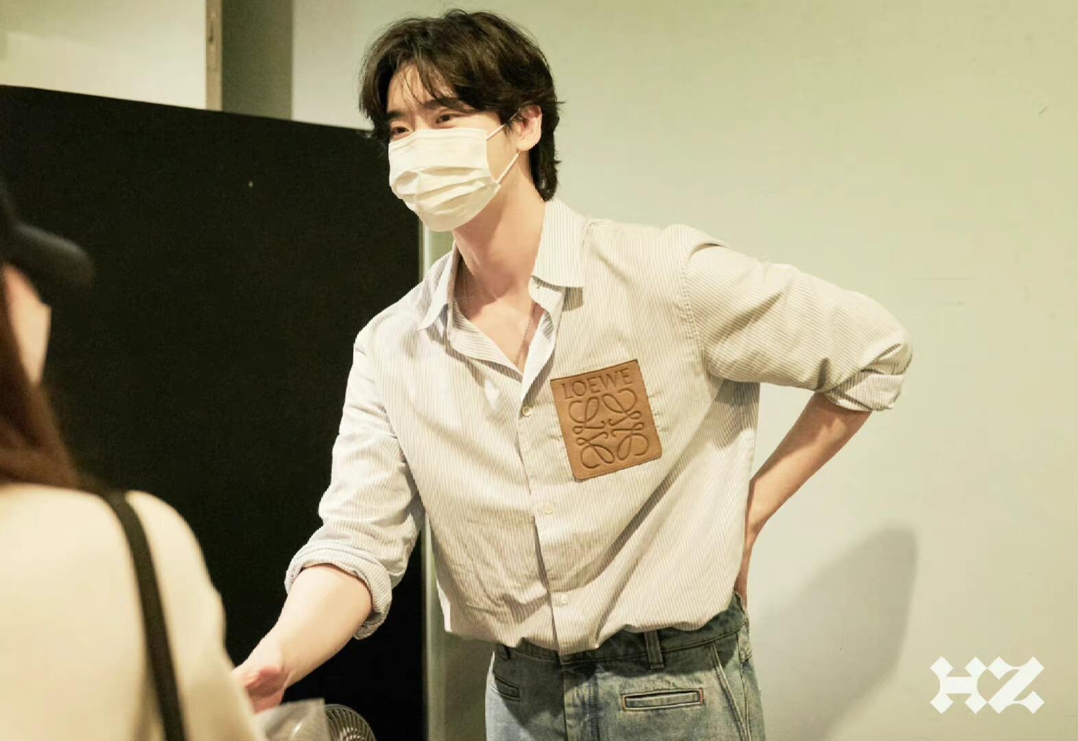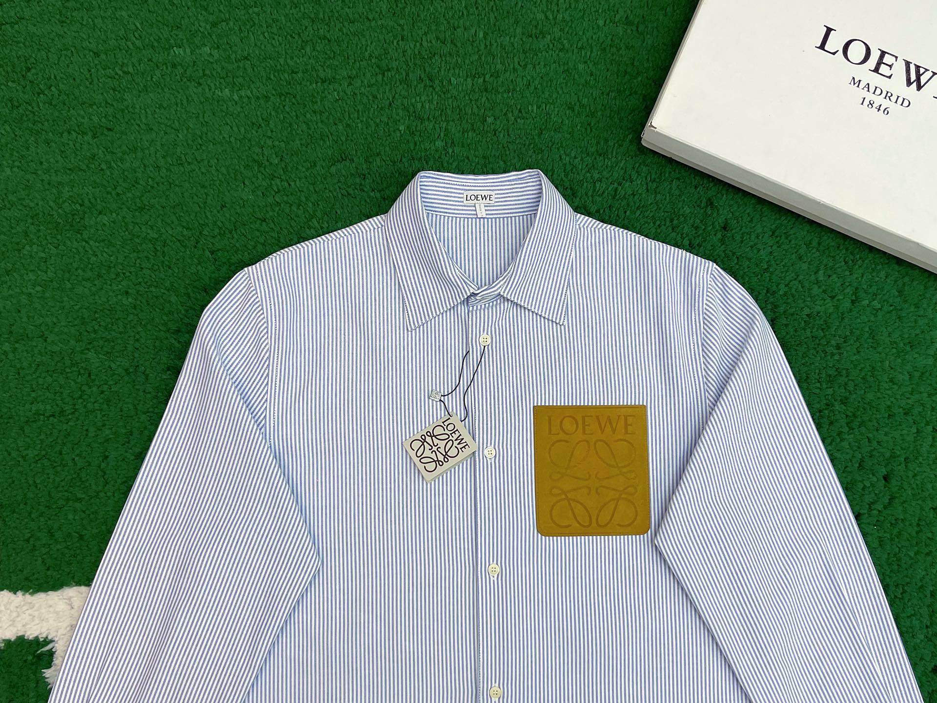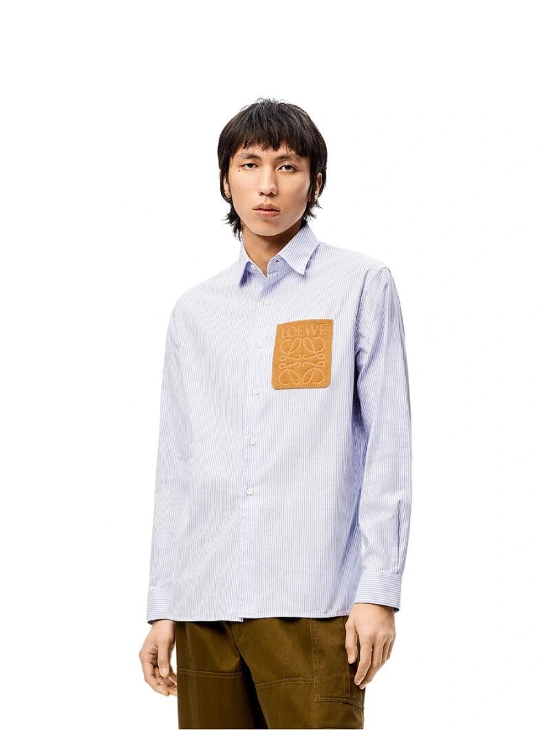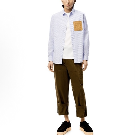 로에베 아나그램 소가죽 로고패치 스트라이프 셔츠