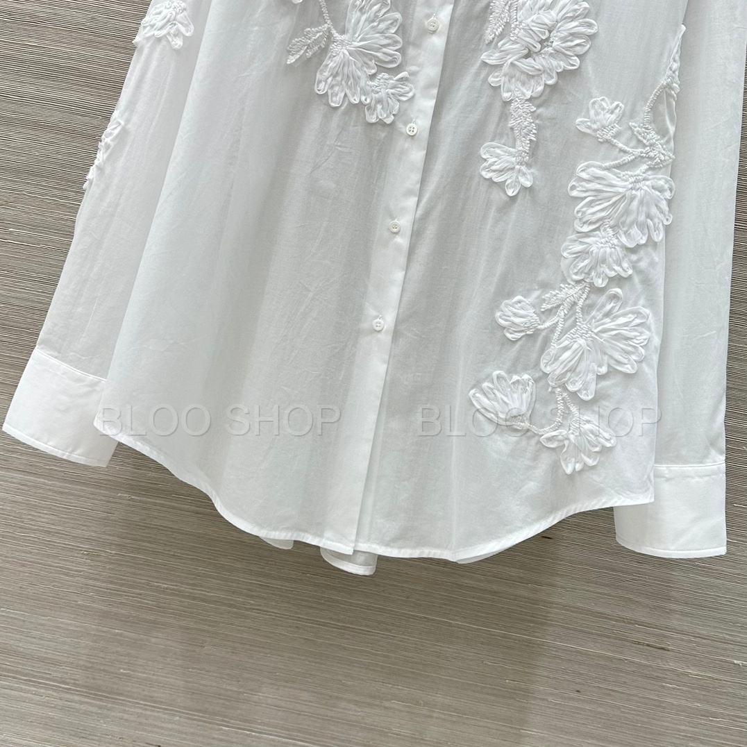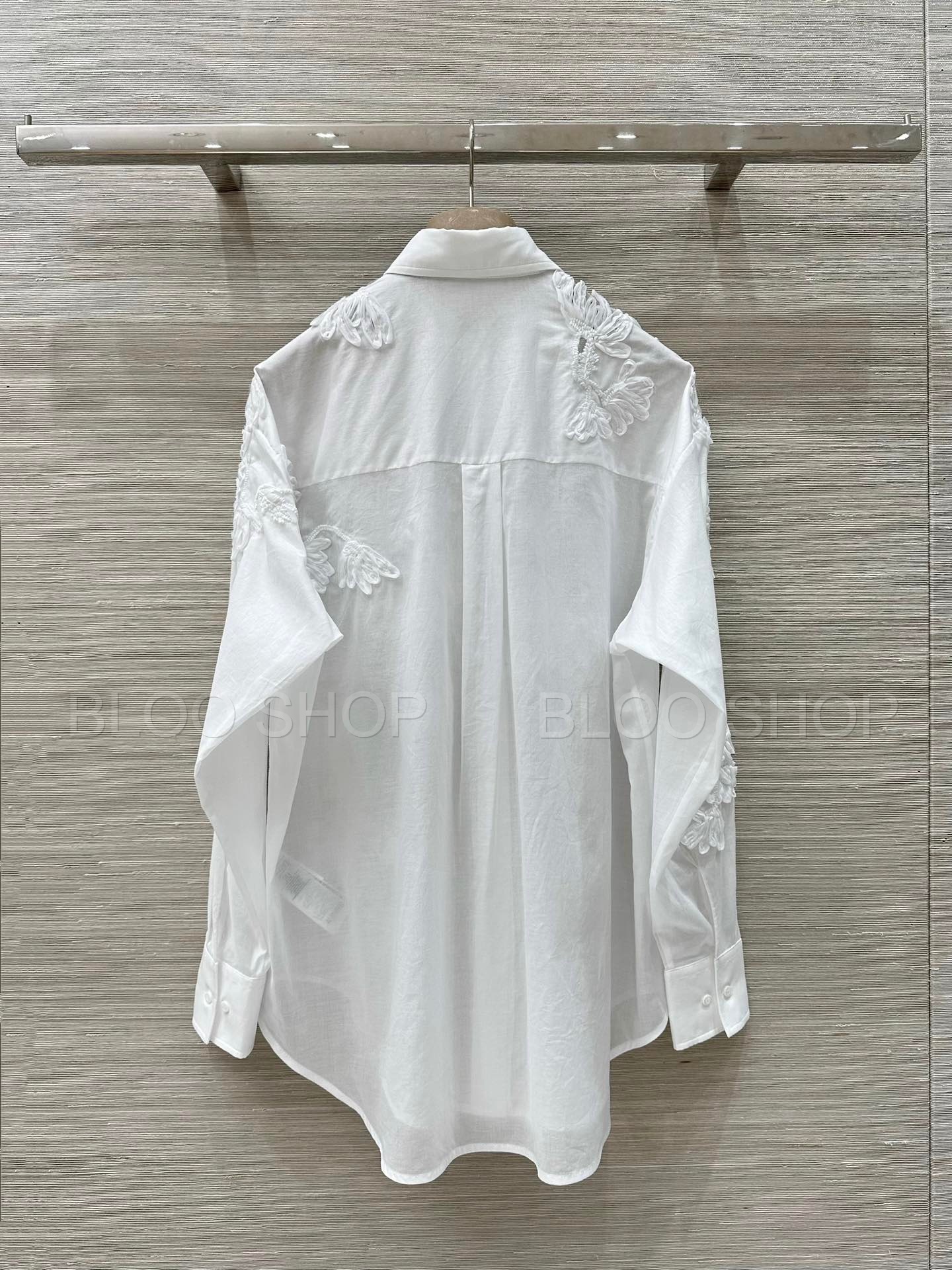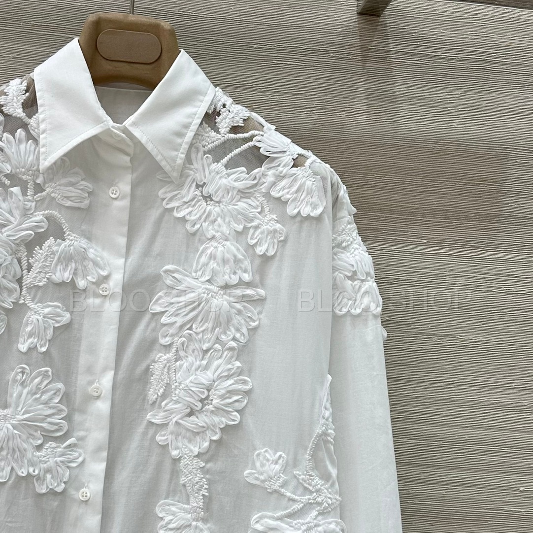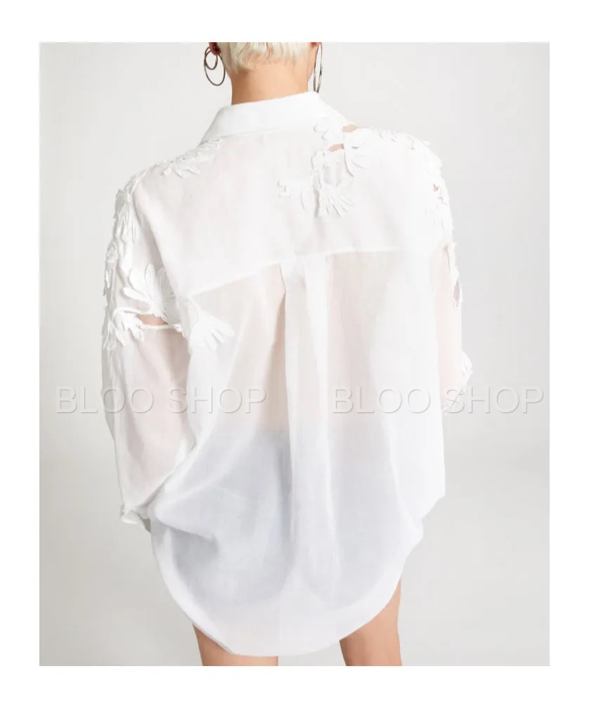 에르마노 설비노 플로랄 아플리케 화이트 셔츠