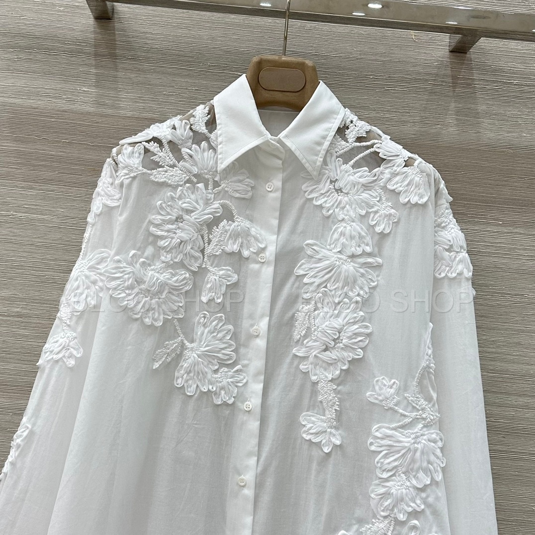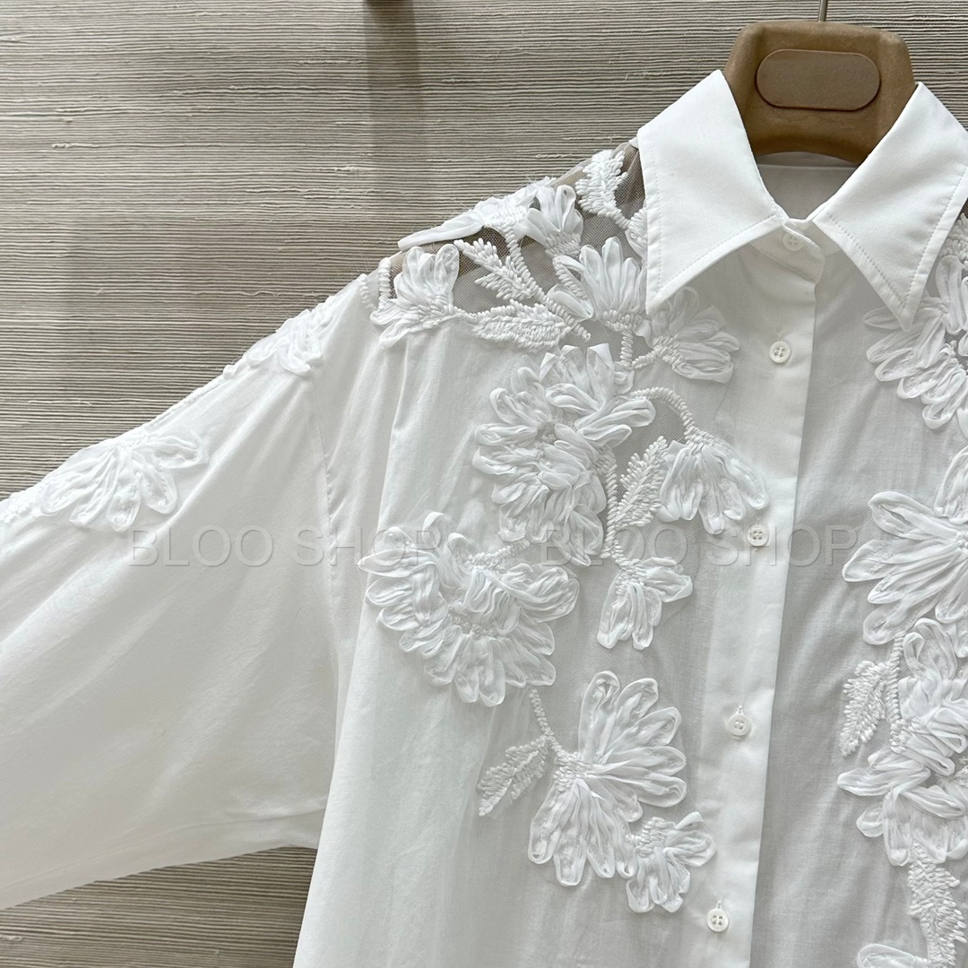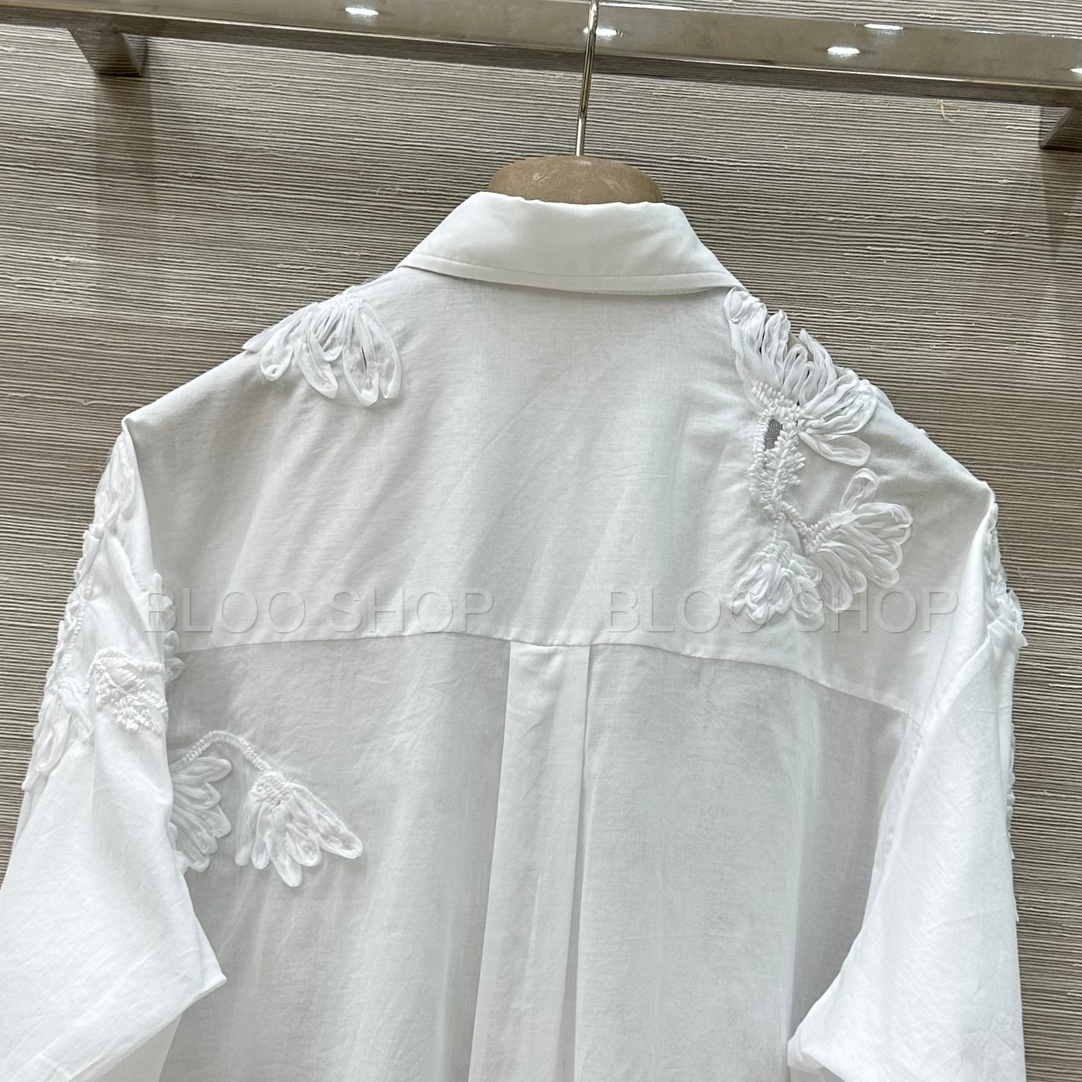 에르마노 설비노 플로랄 아플리케 화이트 셔츠