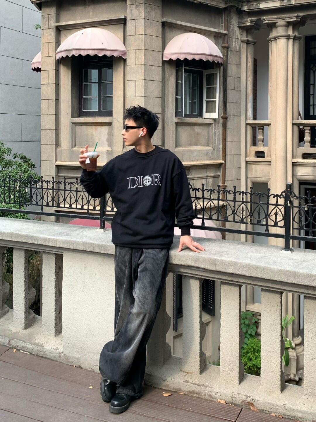 디올 크리스찬 디올 태그 지퍼 칼라 스웨트셔츠 오버사이즈 핏