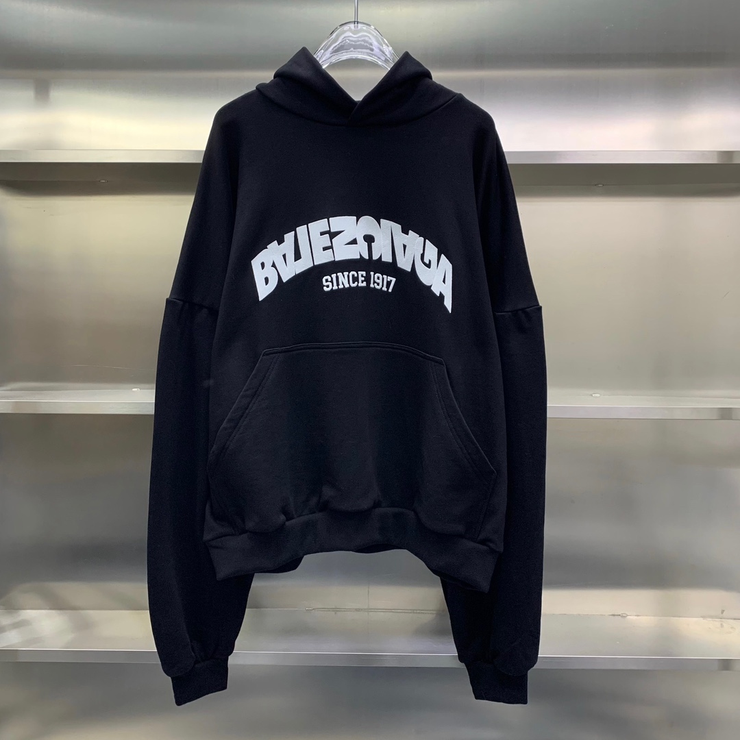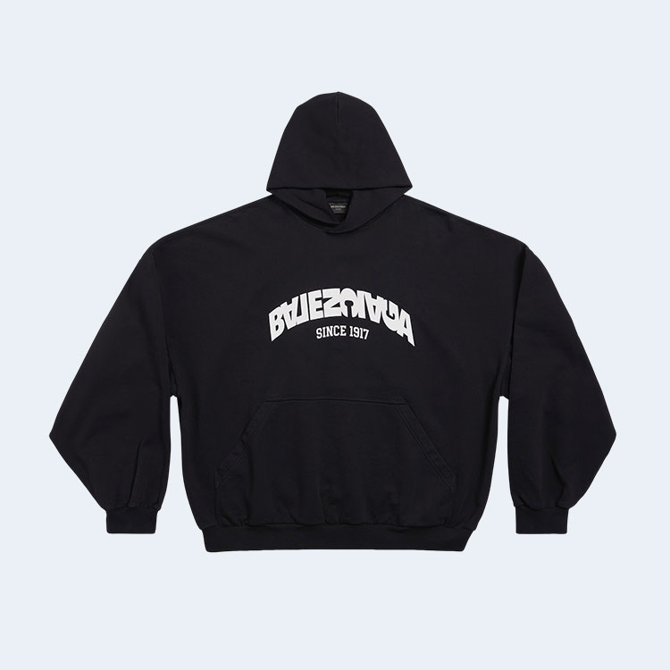 발렌시아가 백 플립 오버사이즈 라운드 후디 블랙