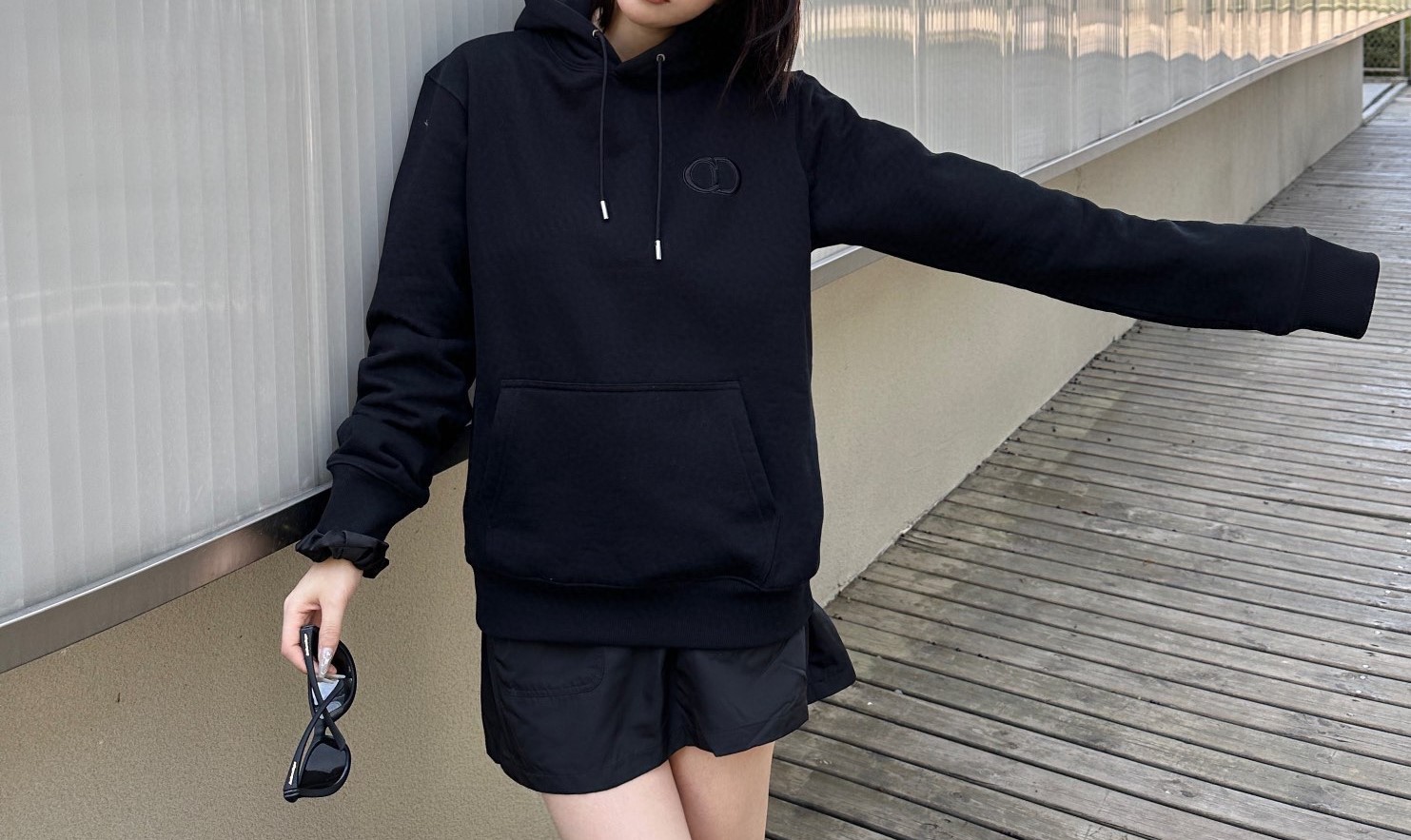 디올 아이콘 후디드 블랙 스웨트셔츠