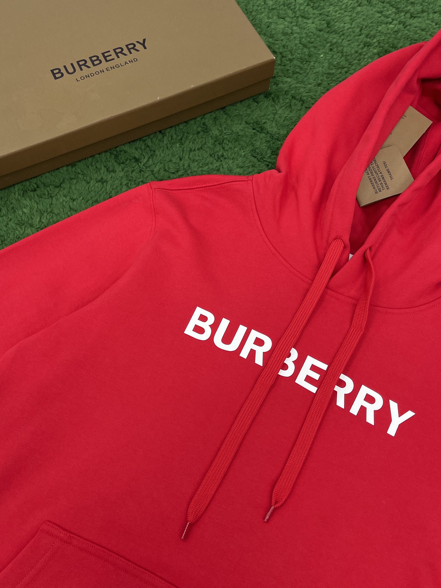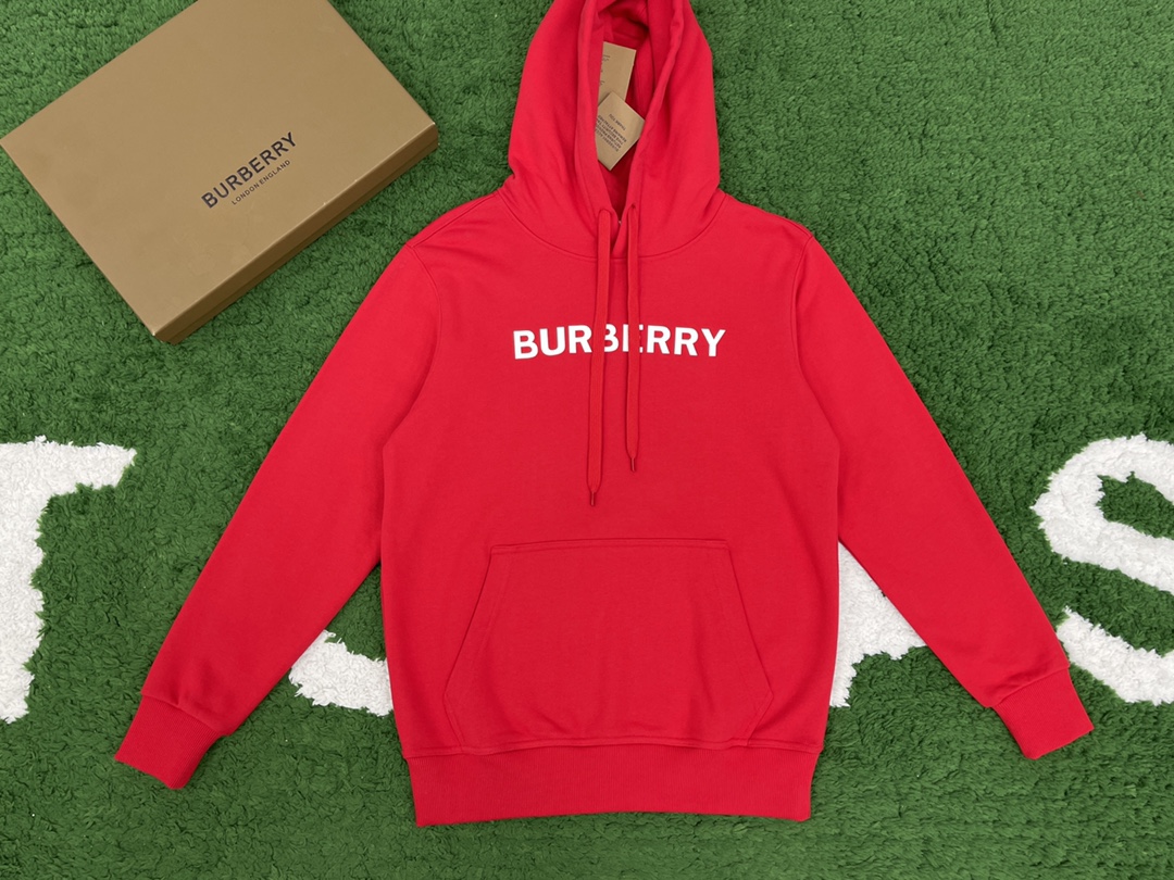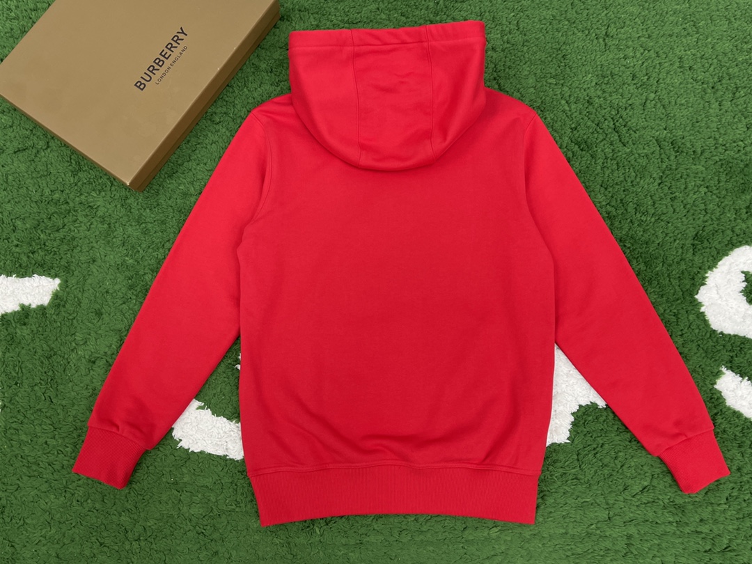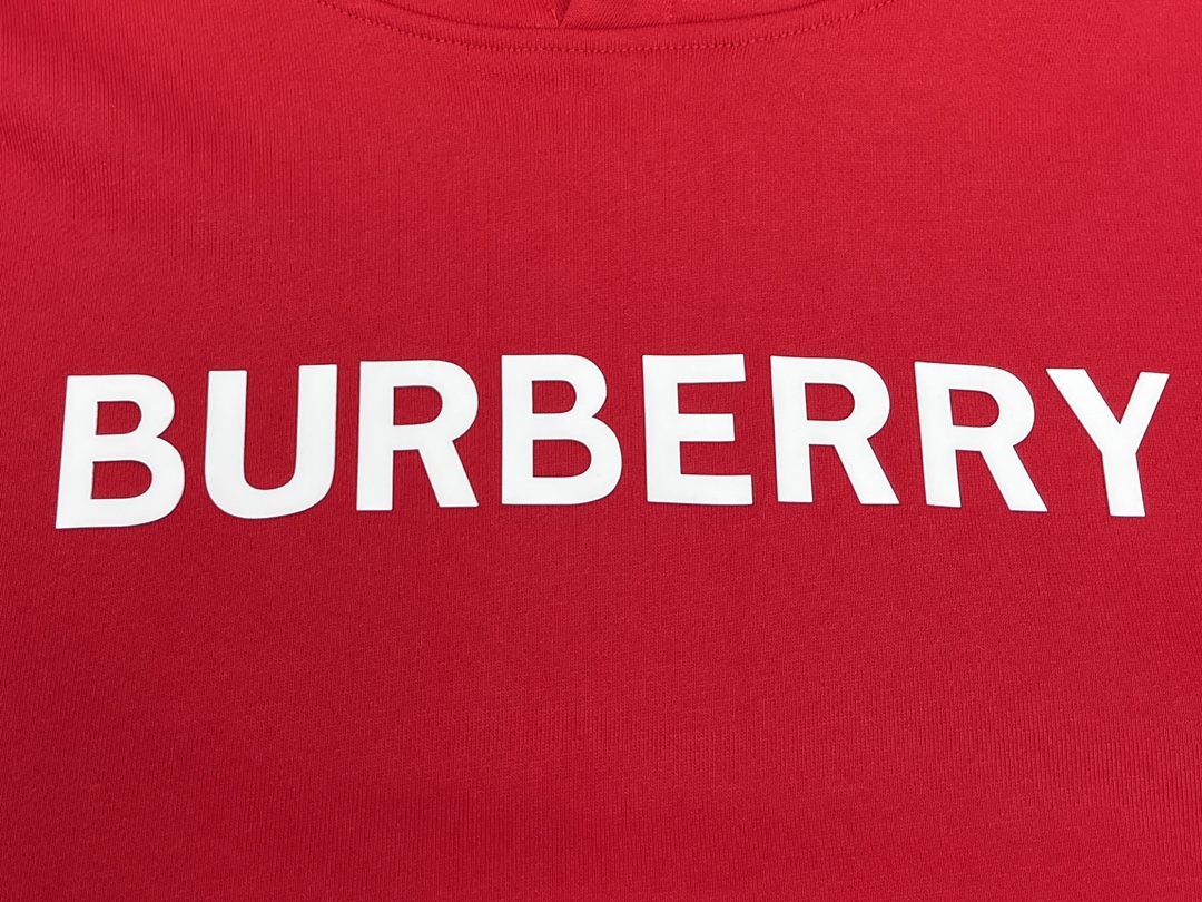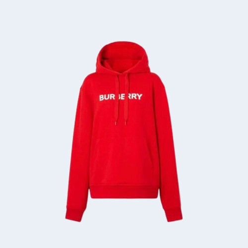 버버리 로고 프린트 코튼 후드 레드