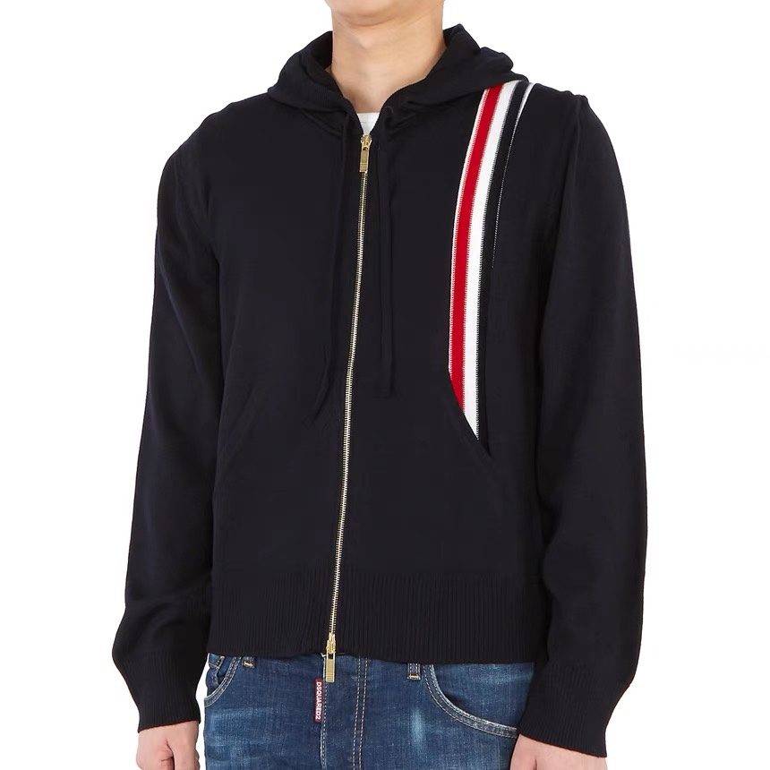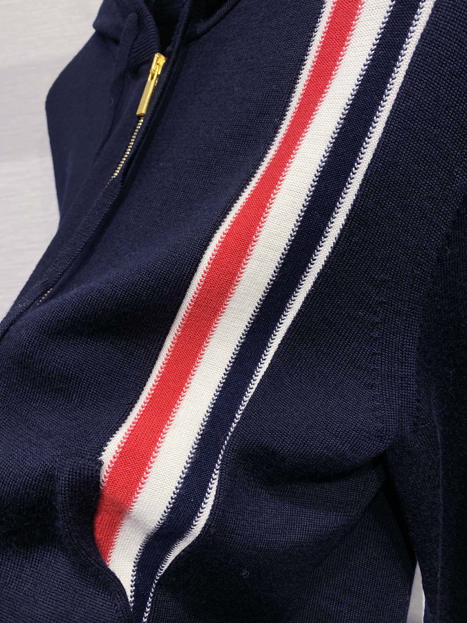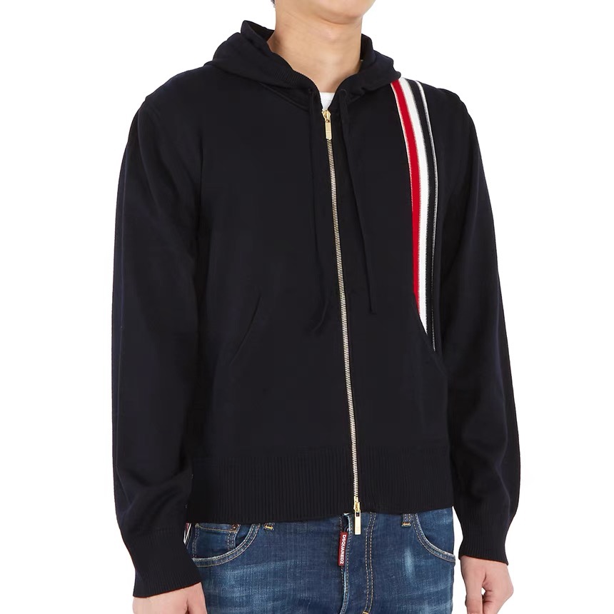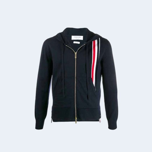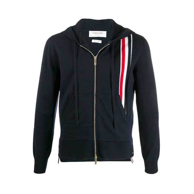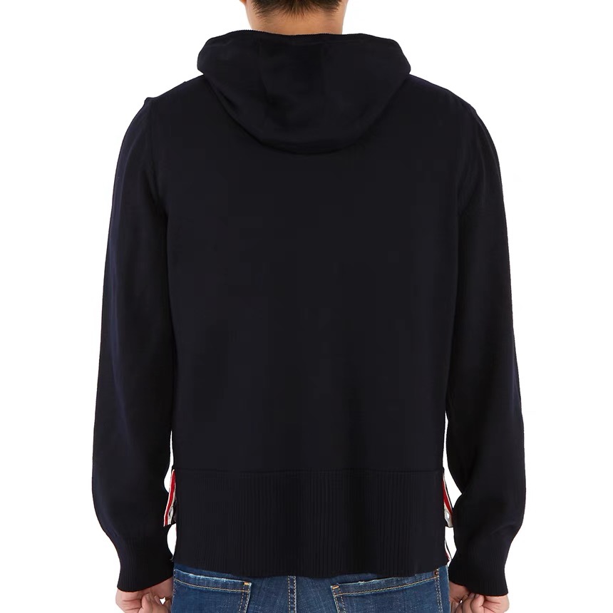톰브라운 스트라이프 메리노 울 후드 딥블루
