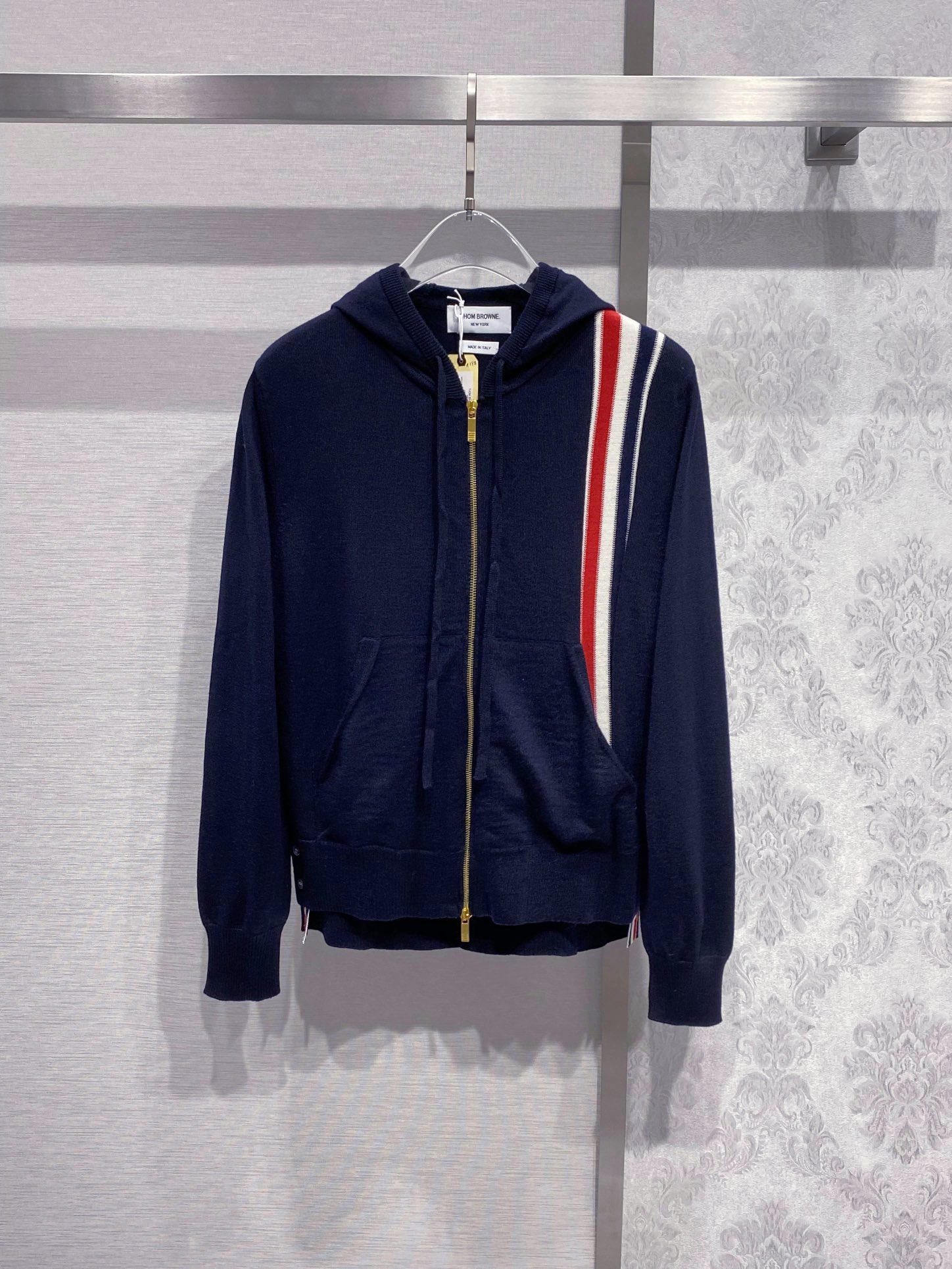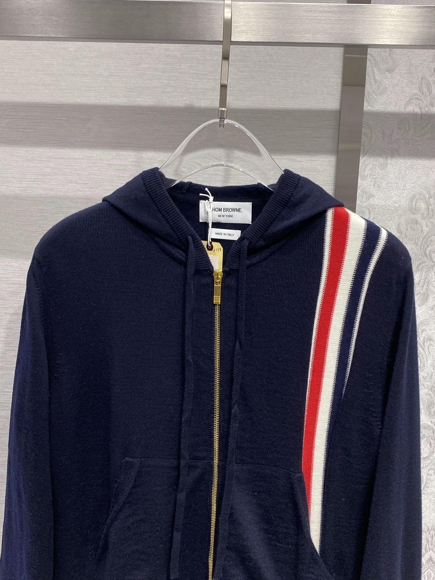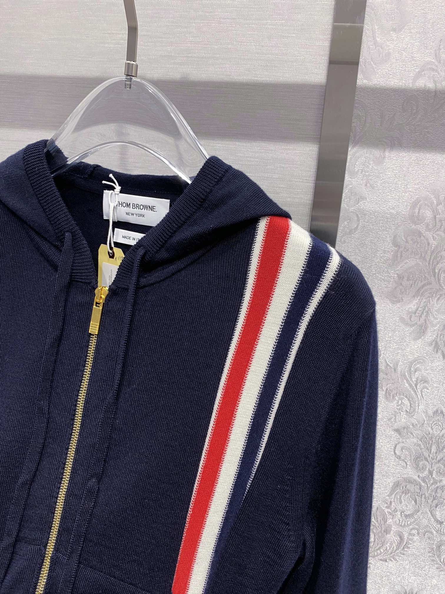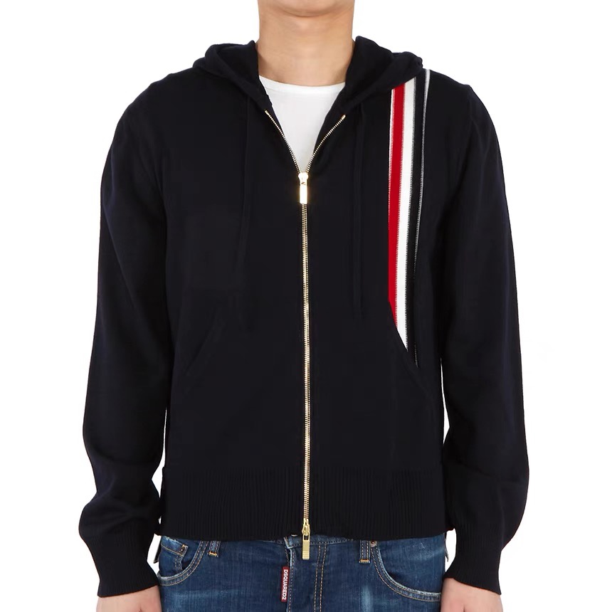톰브라운 스트라이프 메리노 울 후드 딥블루