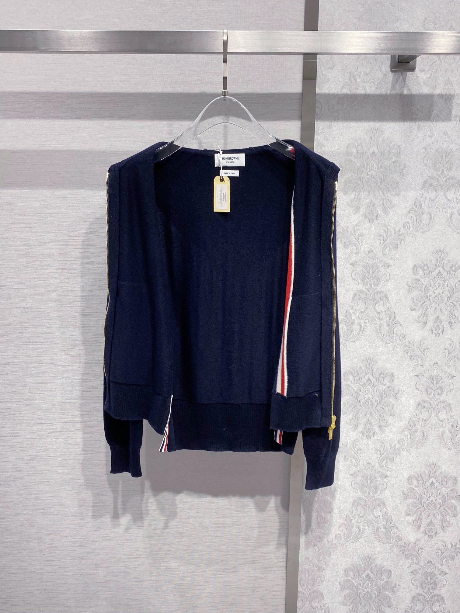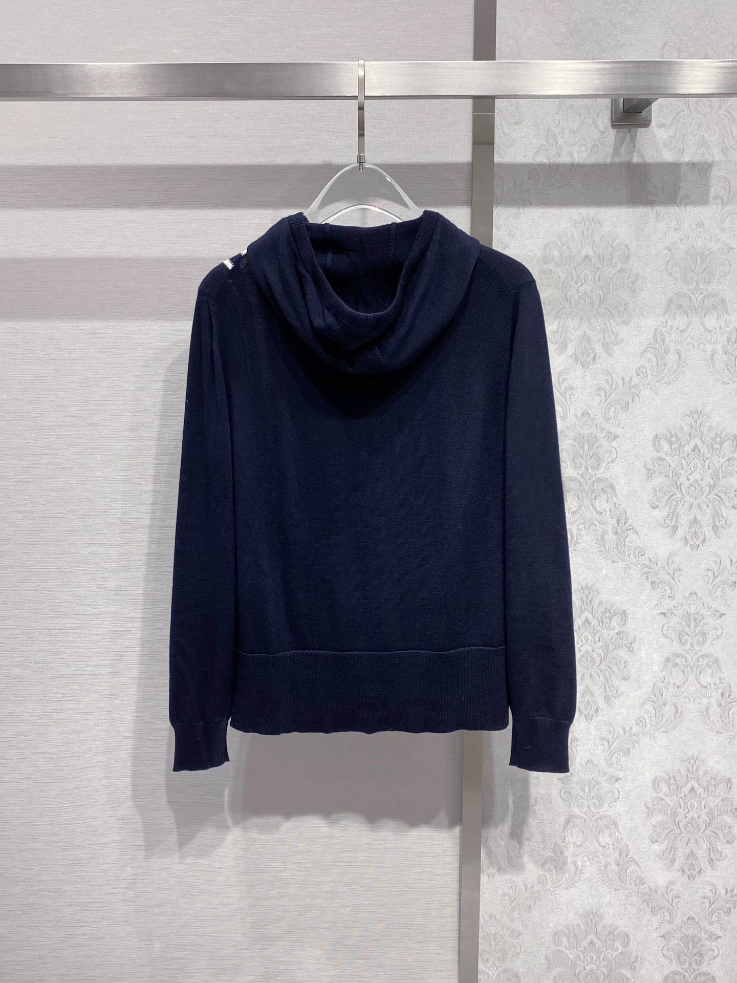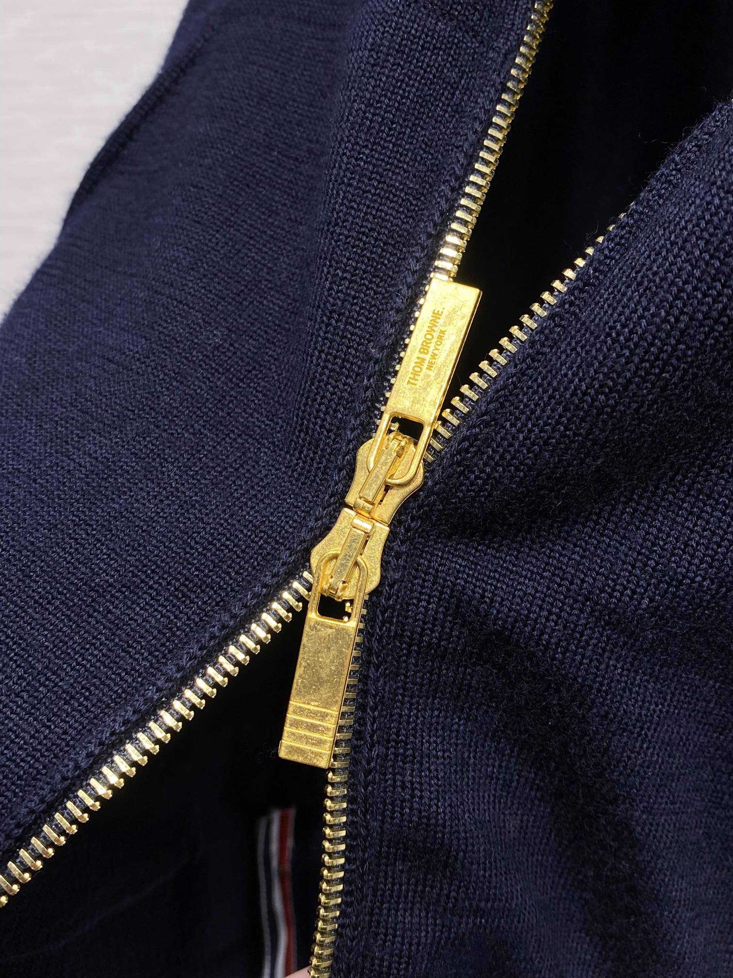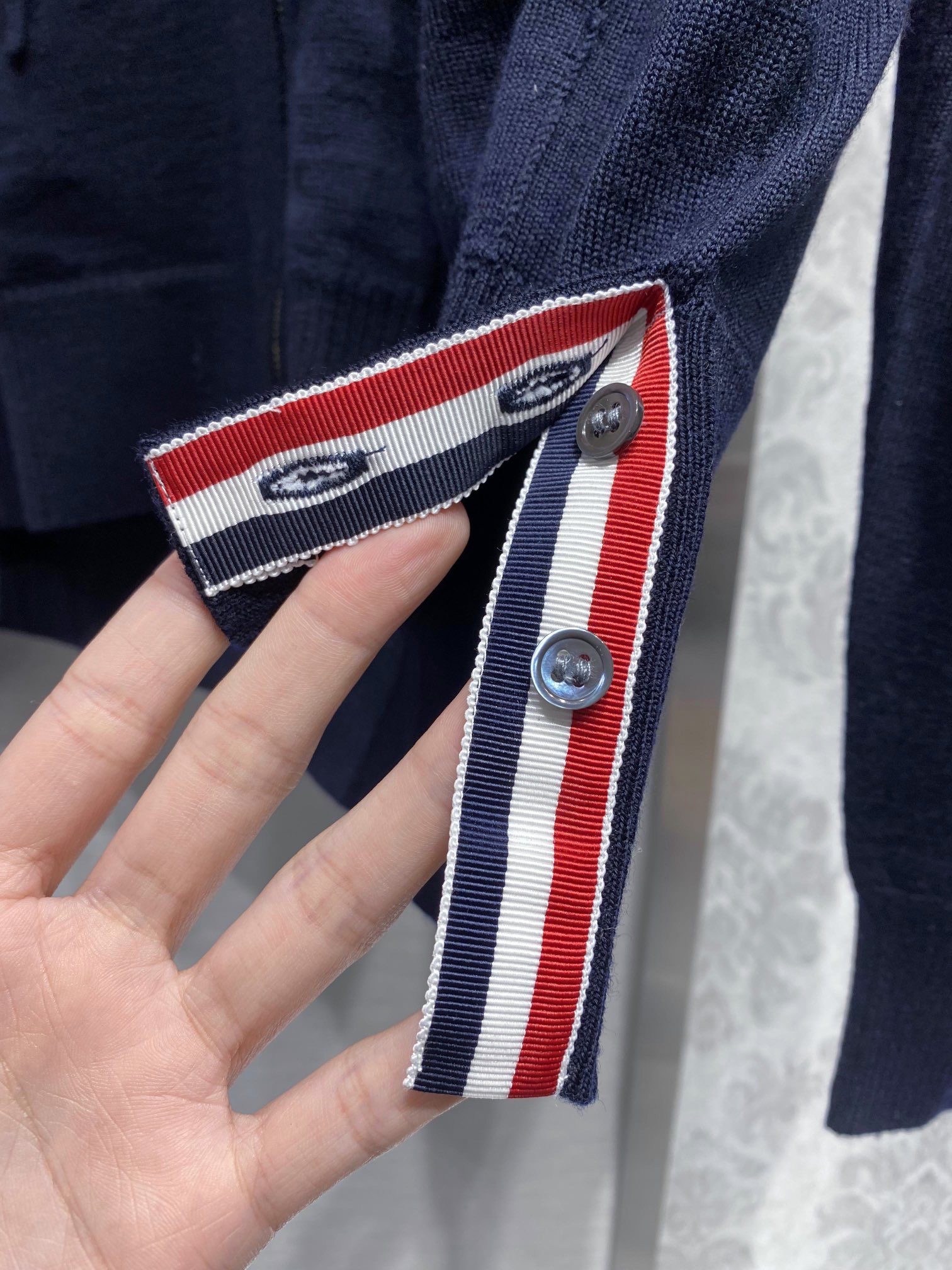 톰브라운 스트라이프 메리노 울 후드 딥블루