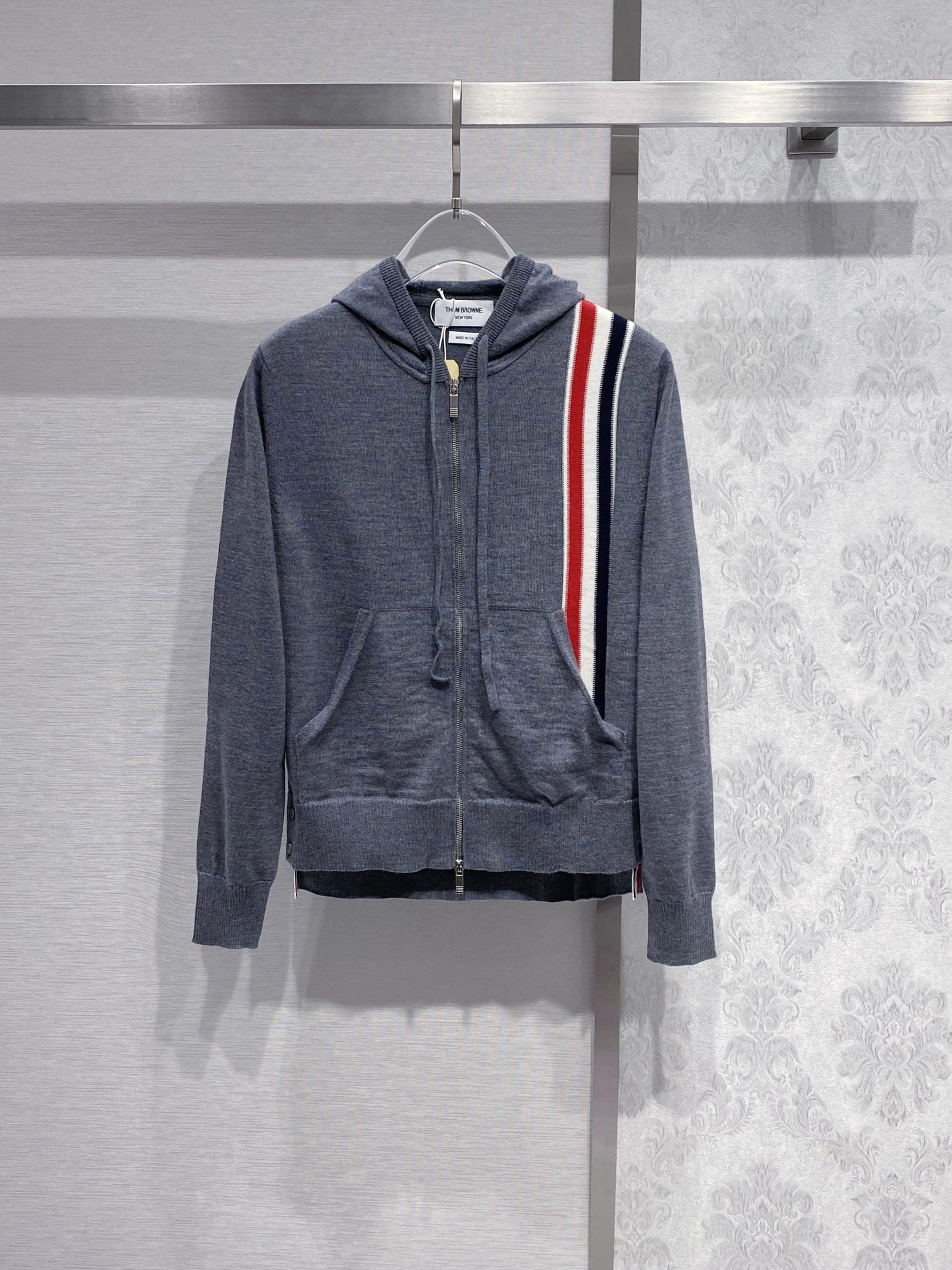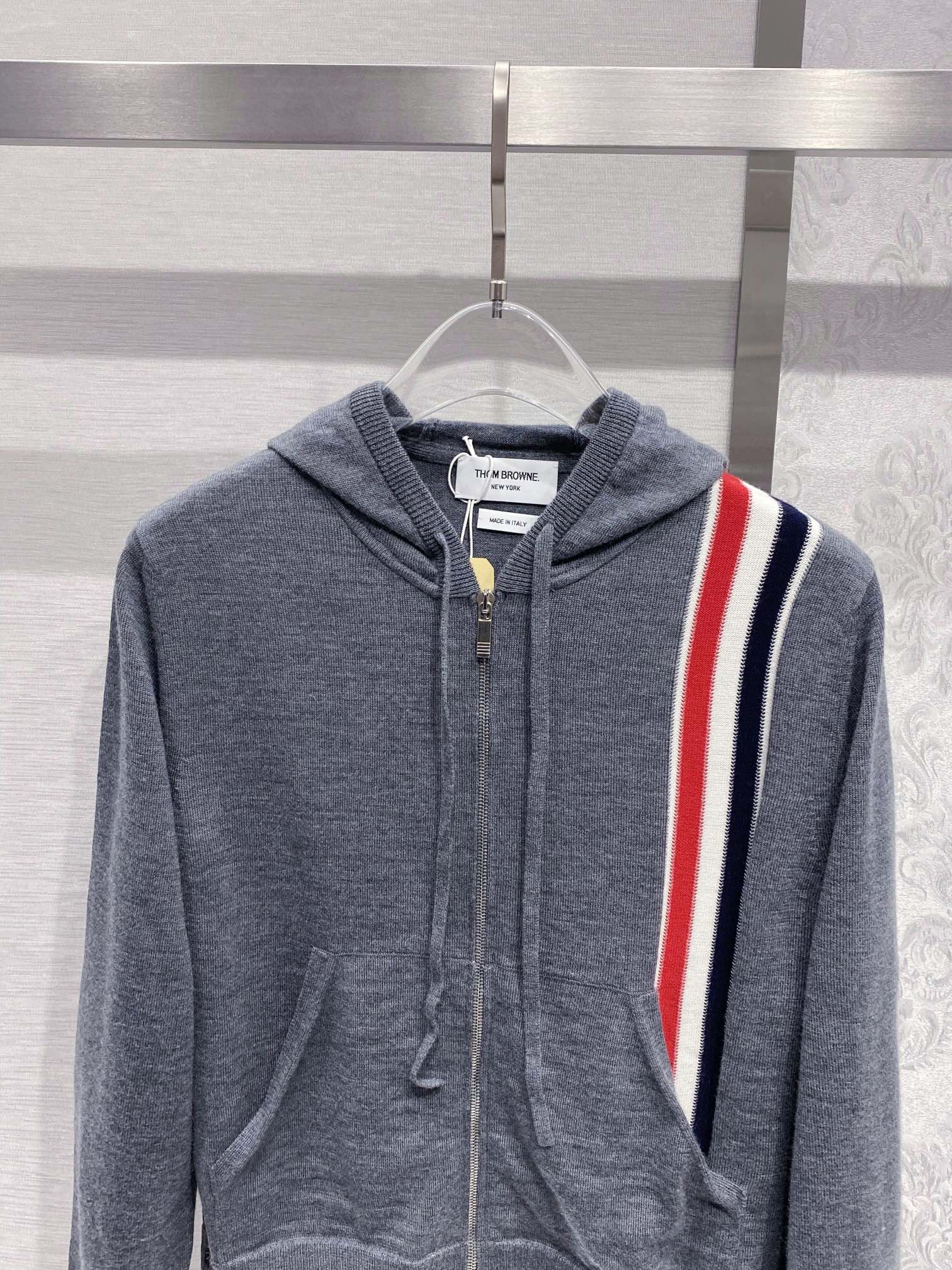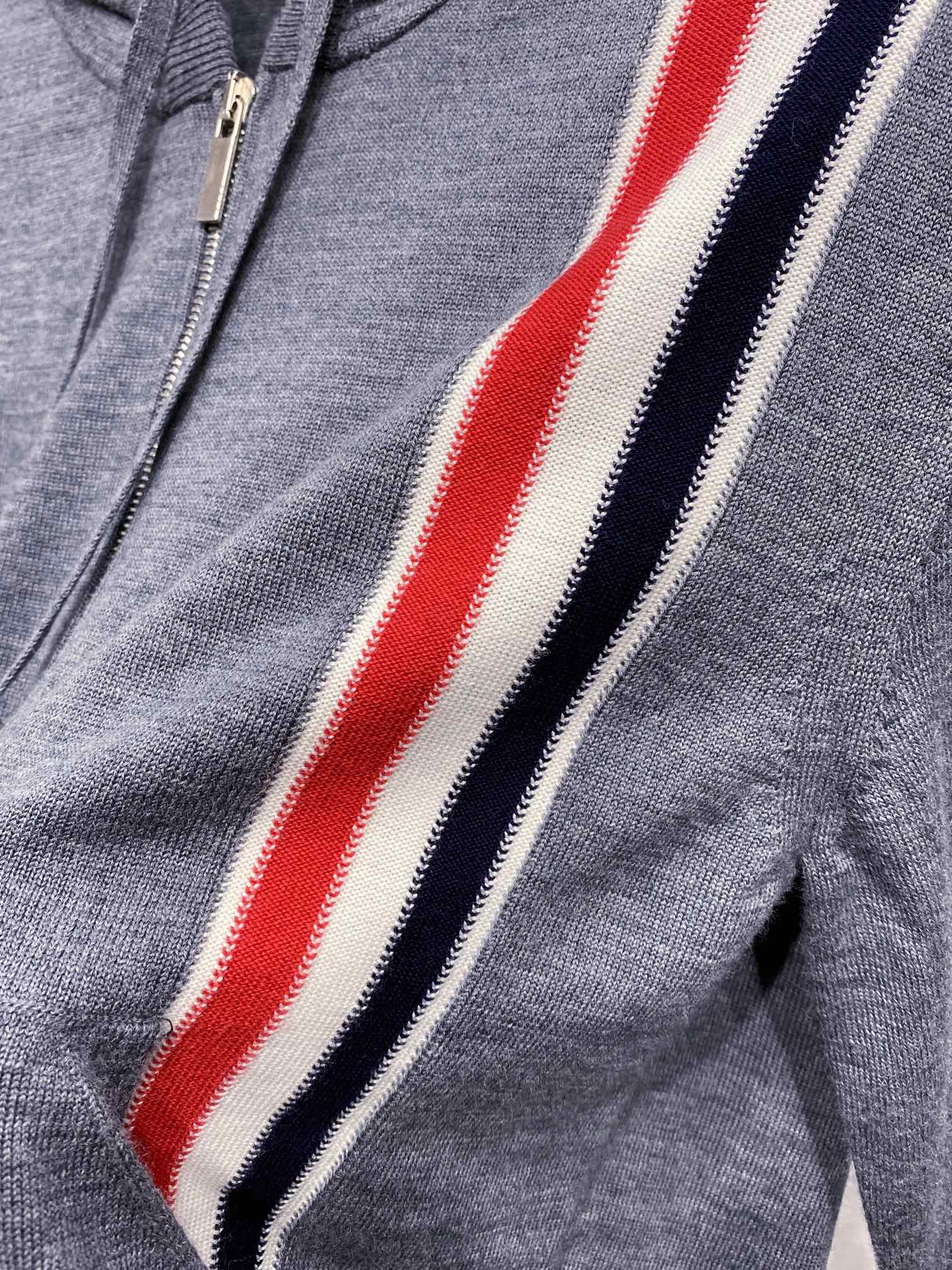 톰브라운 스트라이프 메리노 울 후드 그레이