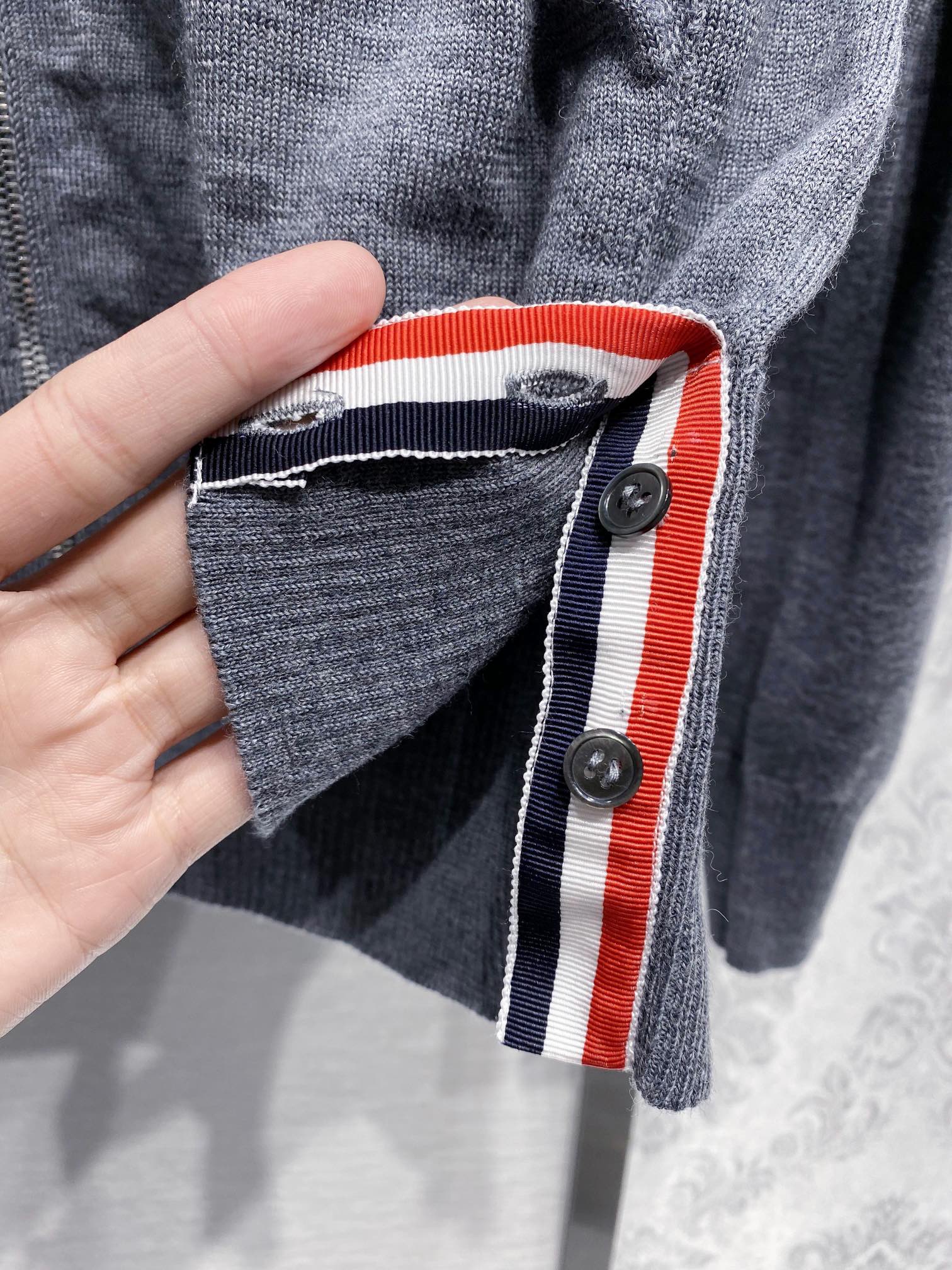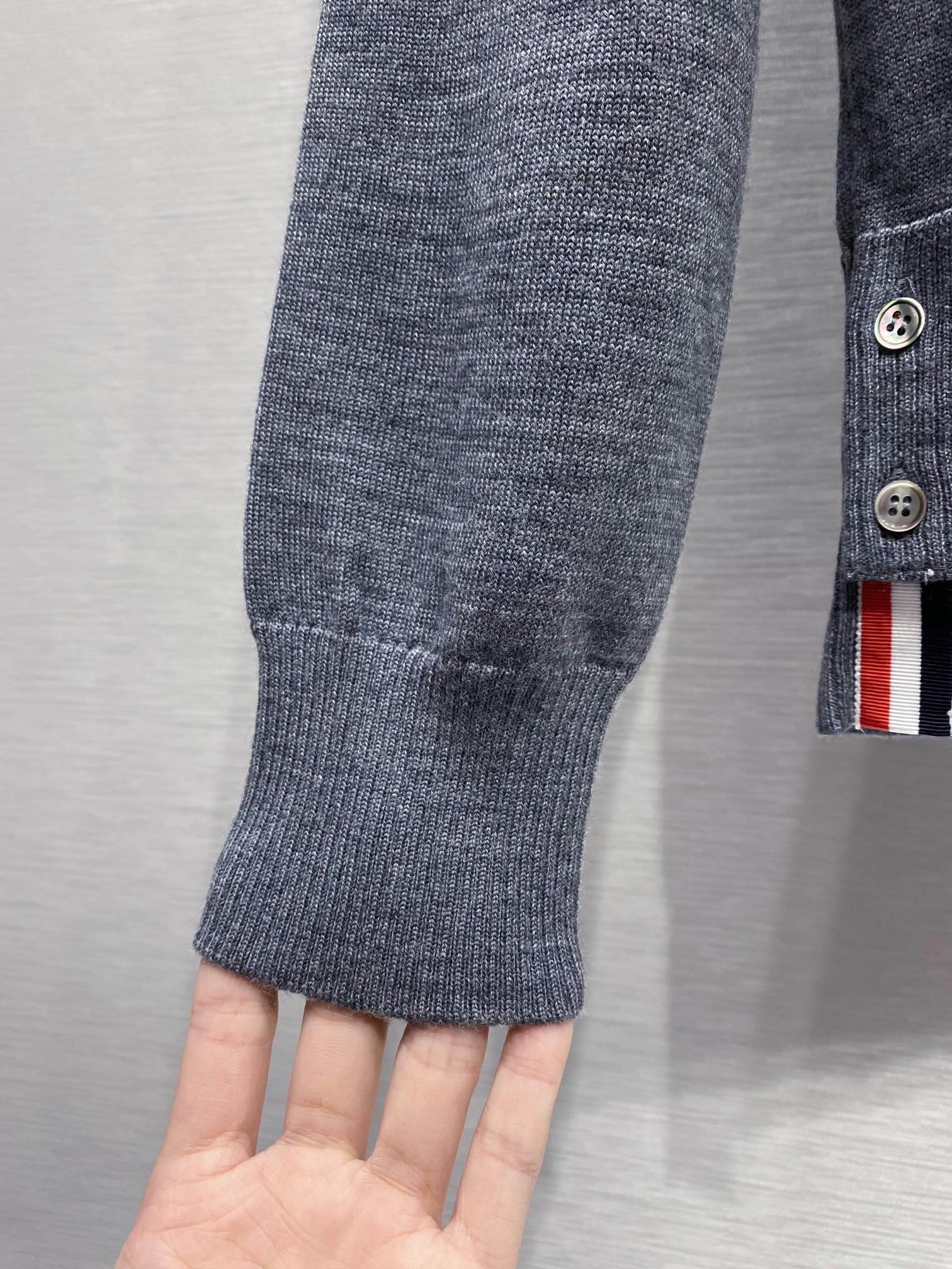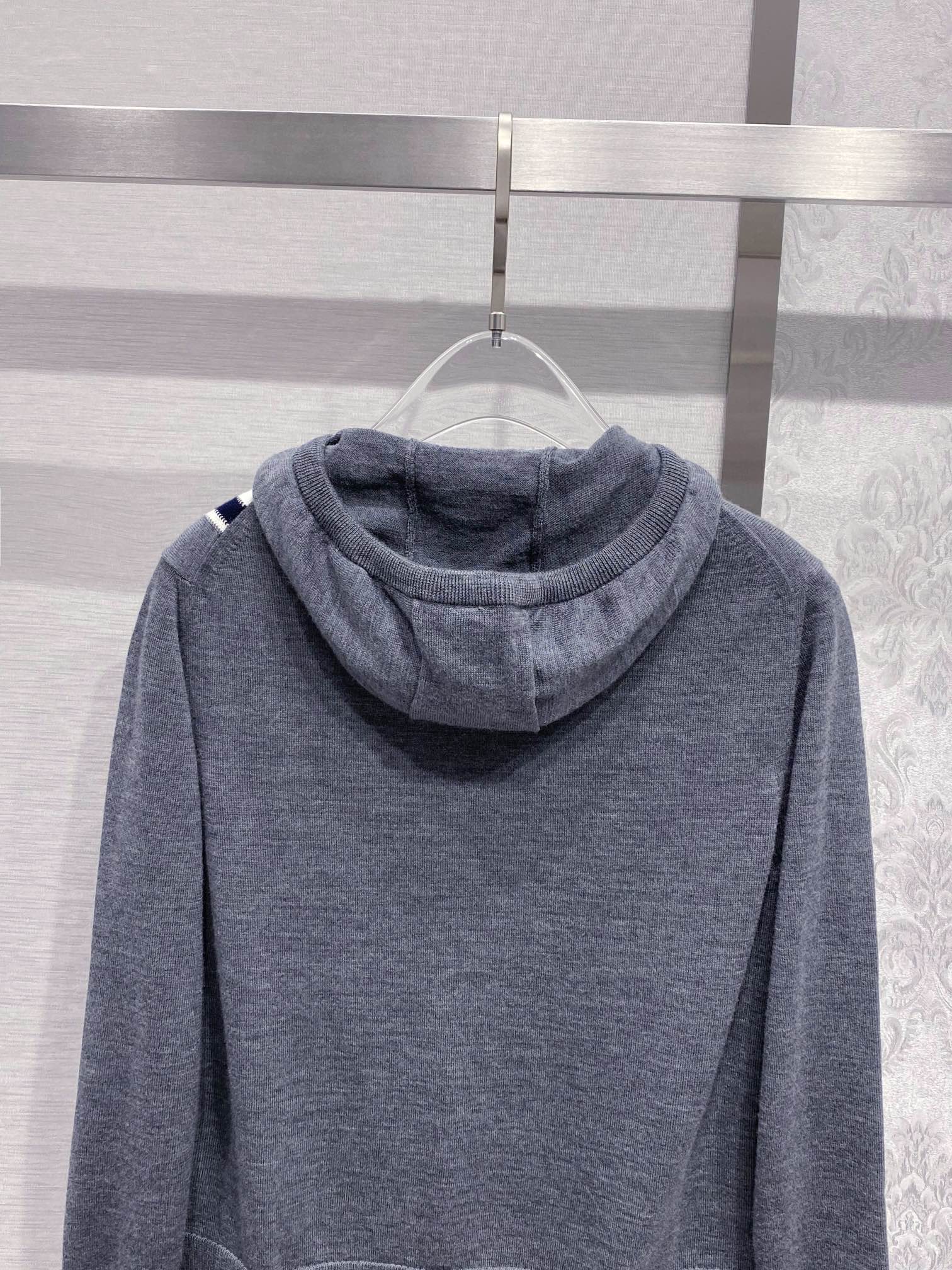 톰브라운 스트라이프 메리노 울 후드 그레이