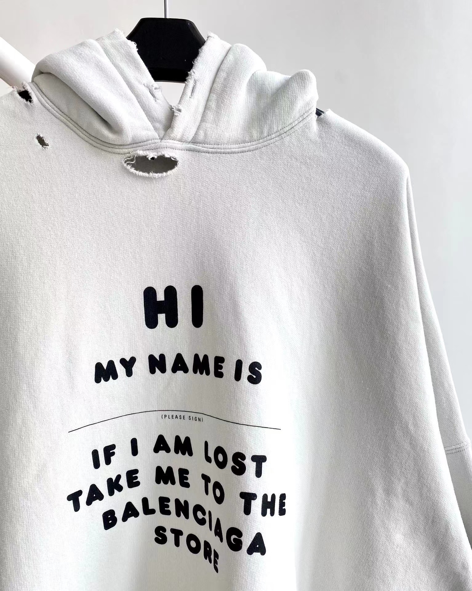 발렌시아가 하이 마이 네임 이즈 후디 화이트